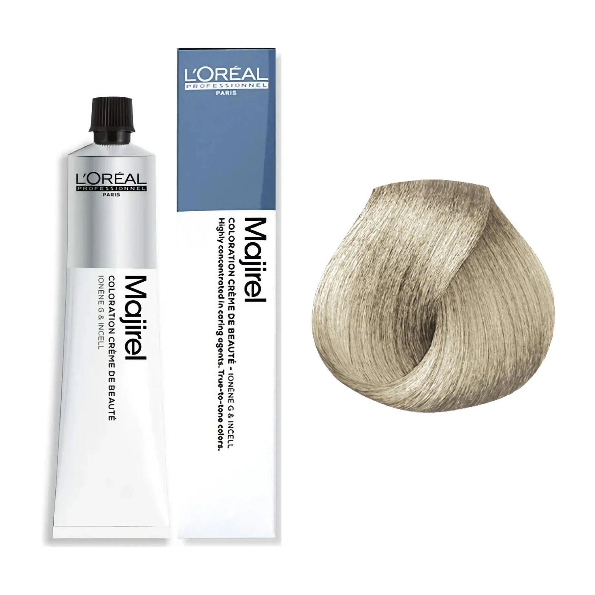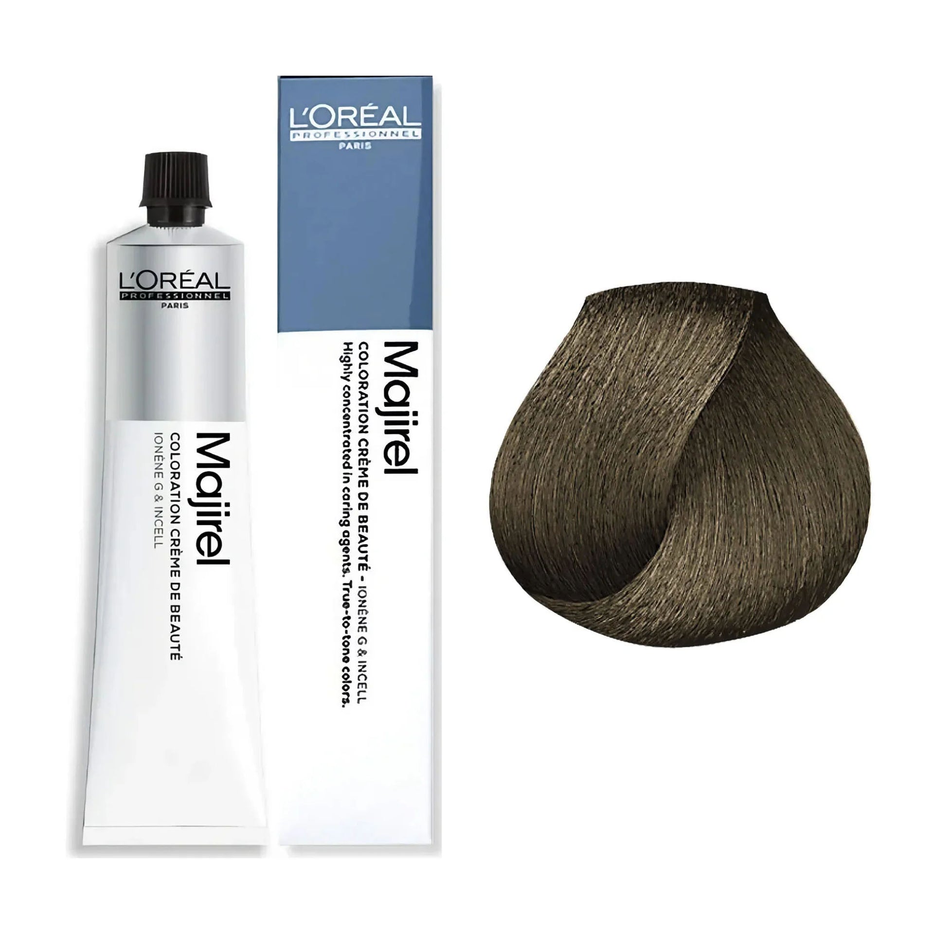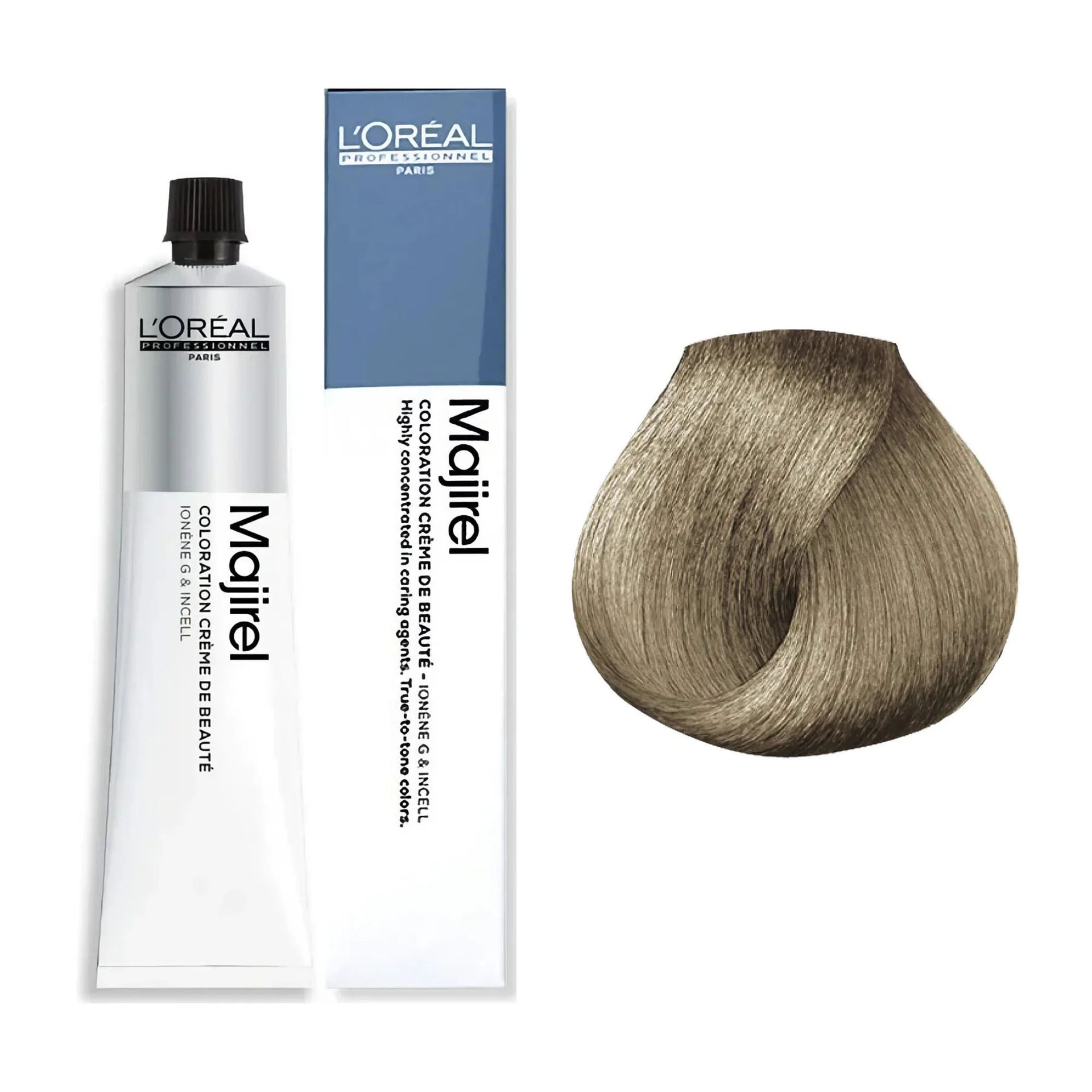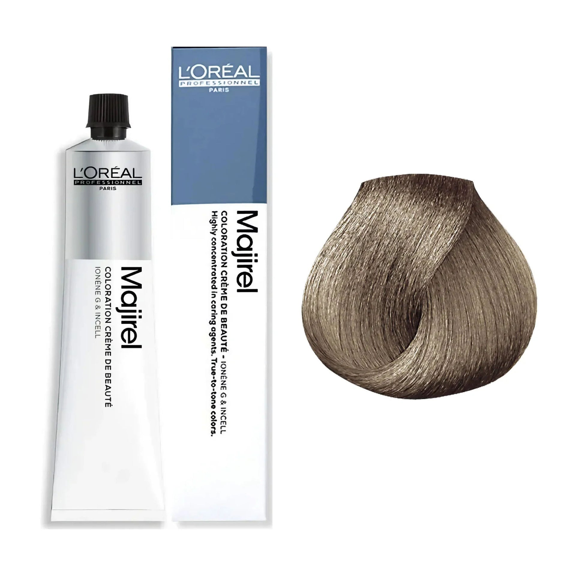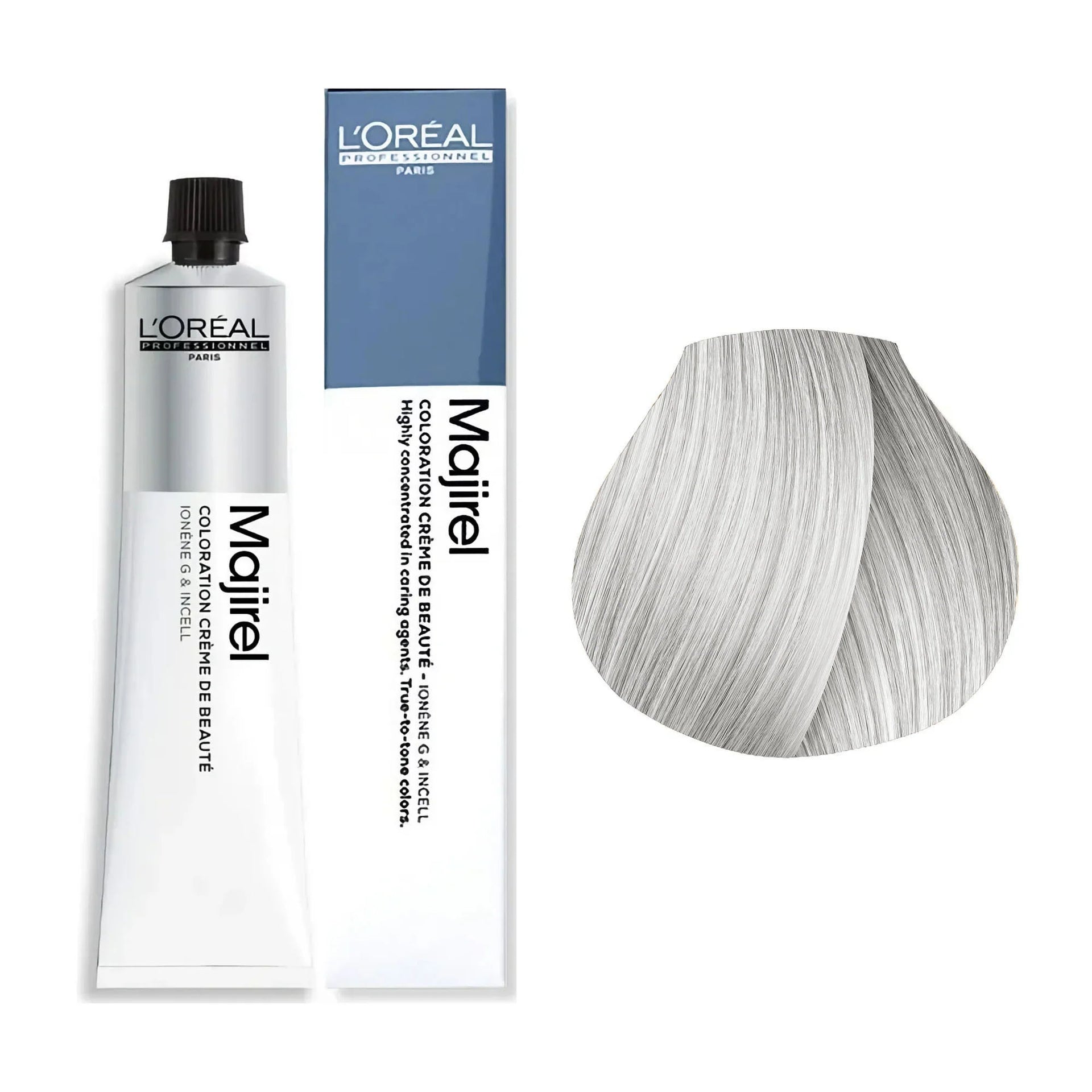 L'Oréal Professionnel Majirel Permanent Hair Colour Ash Series delivers vibrant, long-lasting colour with a comprehensive range of rich, natural shades. Specially designed to cover 100% grey hair, it leaves hair feeling silky, soft, and nourished. The advanced Ionène G™ and Incell™ technologies ensure superior hair care by treating all three levels of the hair fibre, from the core to the surface. This dual-action technology not only restores the natural structure of the hair but also fortifies it, leaving it protected, shiny, and healthy.