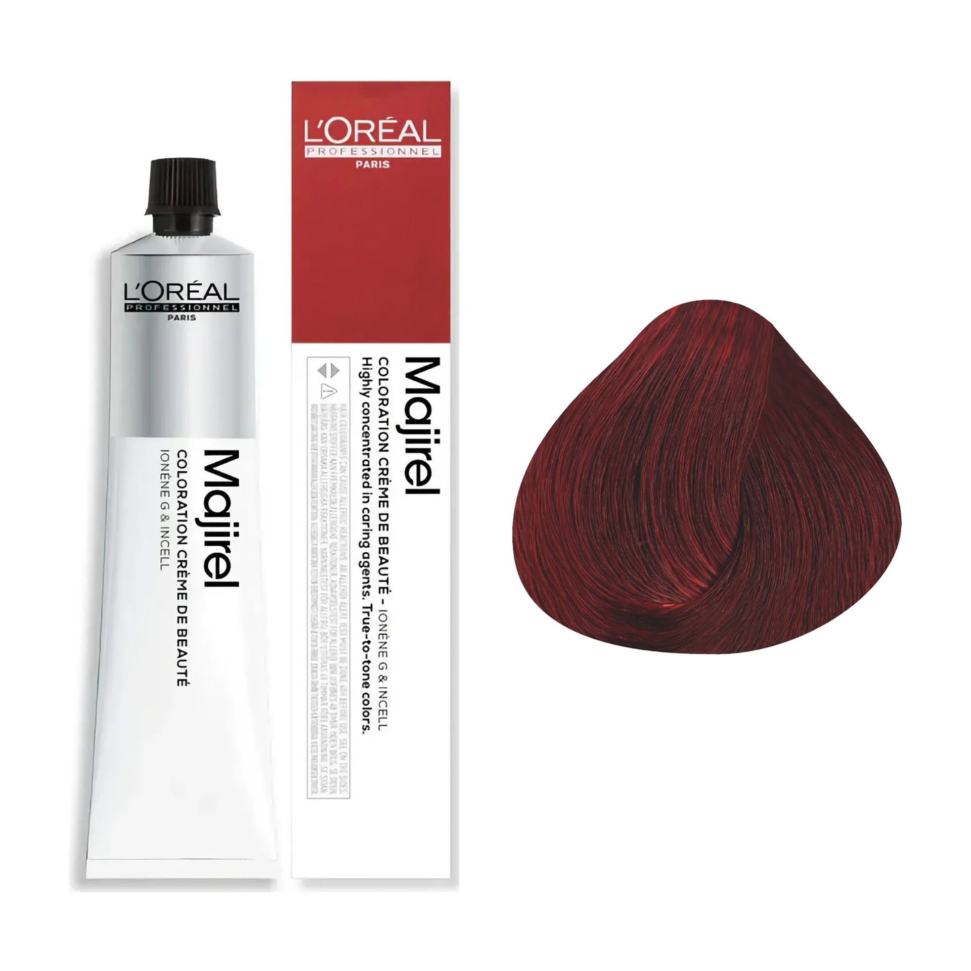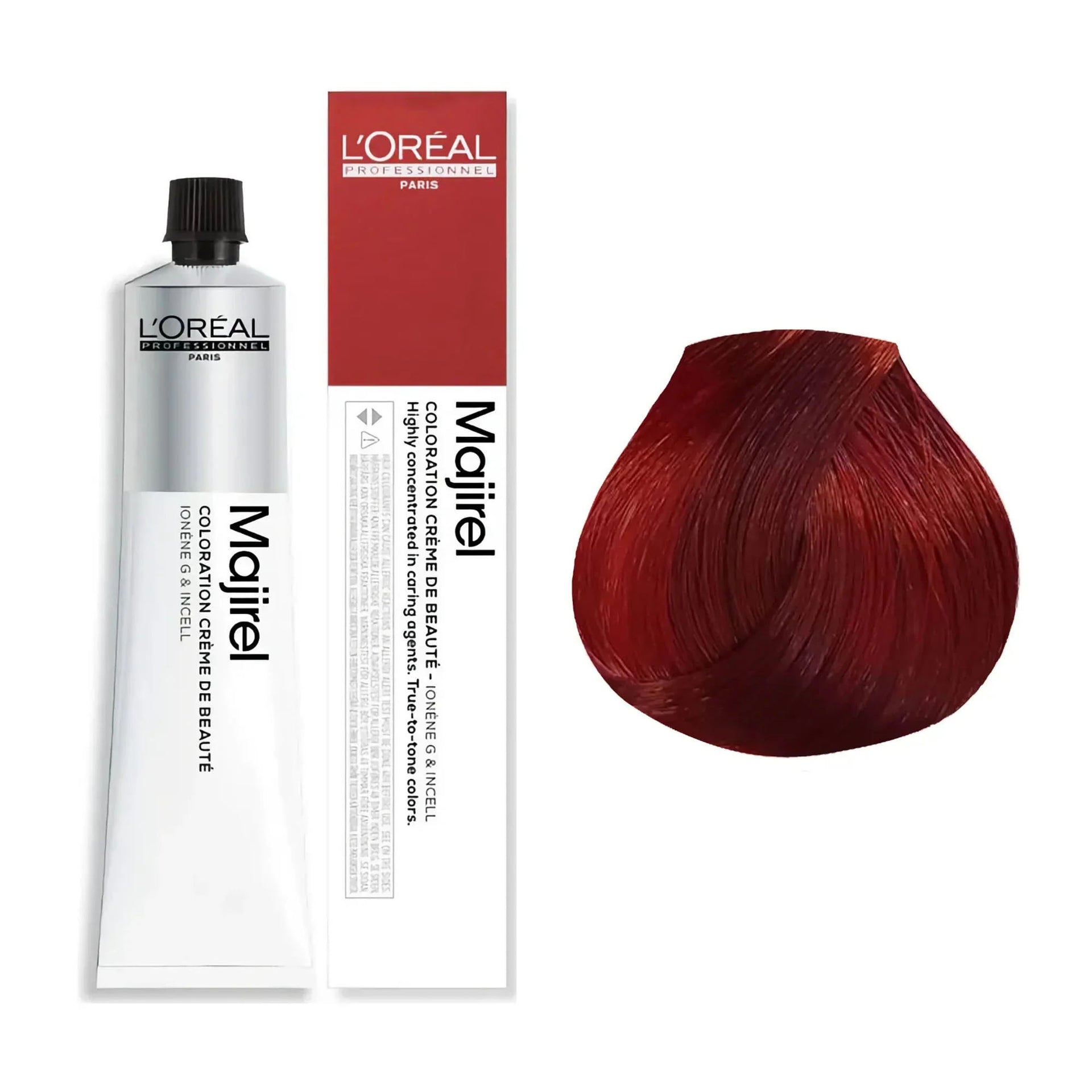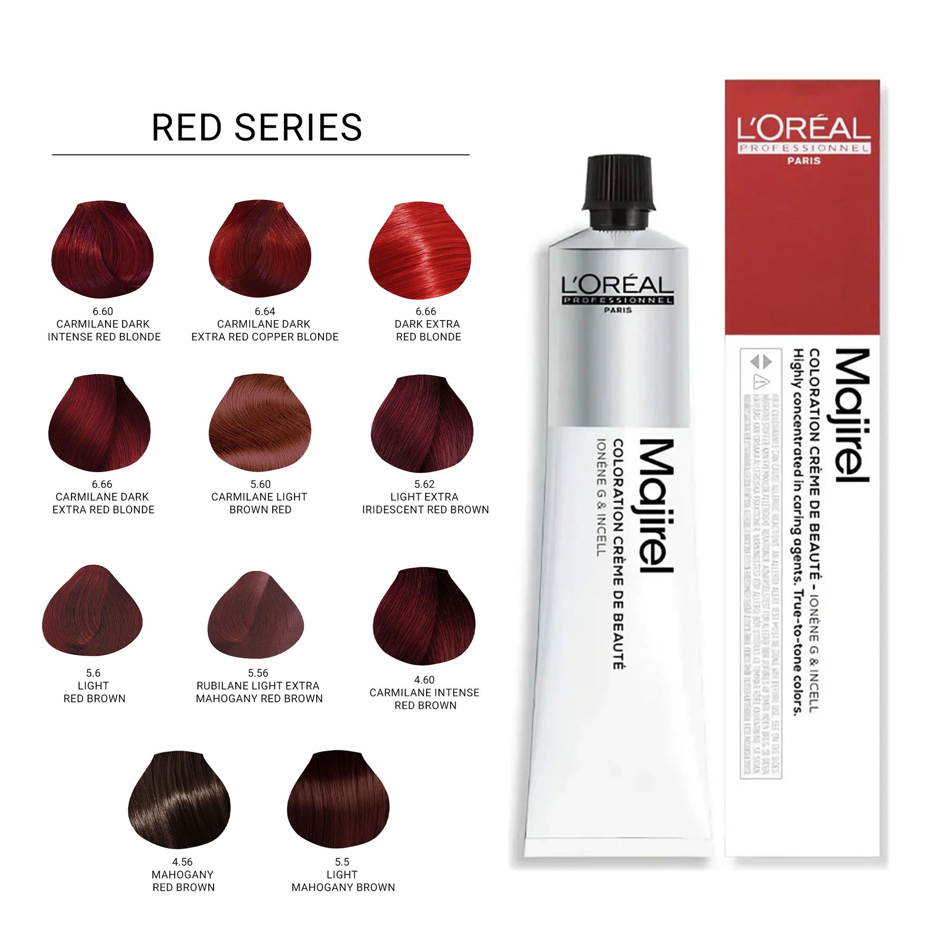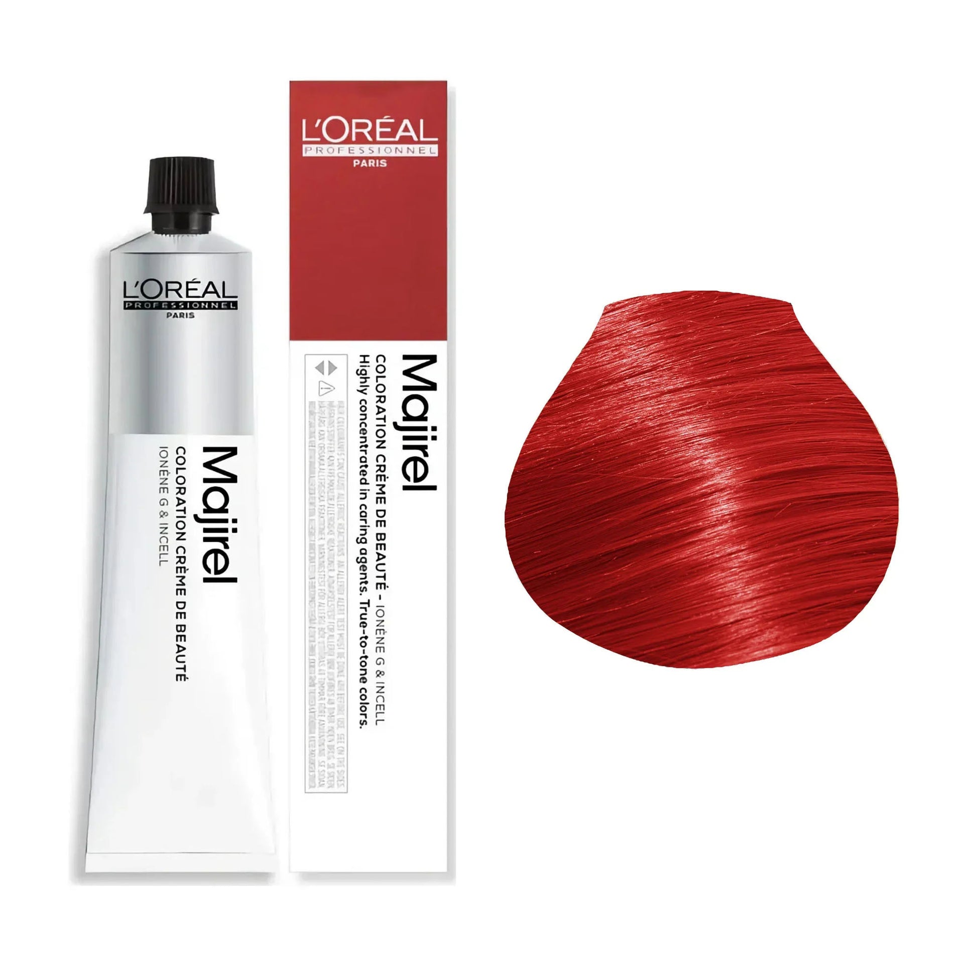 L'Oréal Professionnel Majirel Permanent Hair Colour Red Series delivers radiant, long-lasting colour with a wide variety of rich red tones. Designed to provide 100% grey coverage, it leaves hair feeling silky, smooth, and deeply nourished. With advanced Ionène G™ and Incell™ technologies, this colour treatment penetrates all three levels of the hair fibre, ensuring complete care from the core to the surface. This innovative system not only strengthens and restores the hair’s natural shine but also provides superior conditioning for a professional finish.