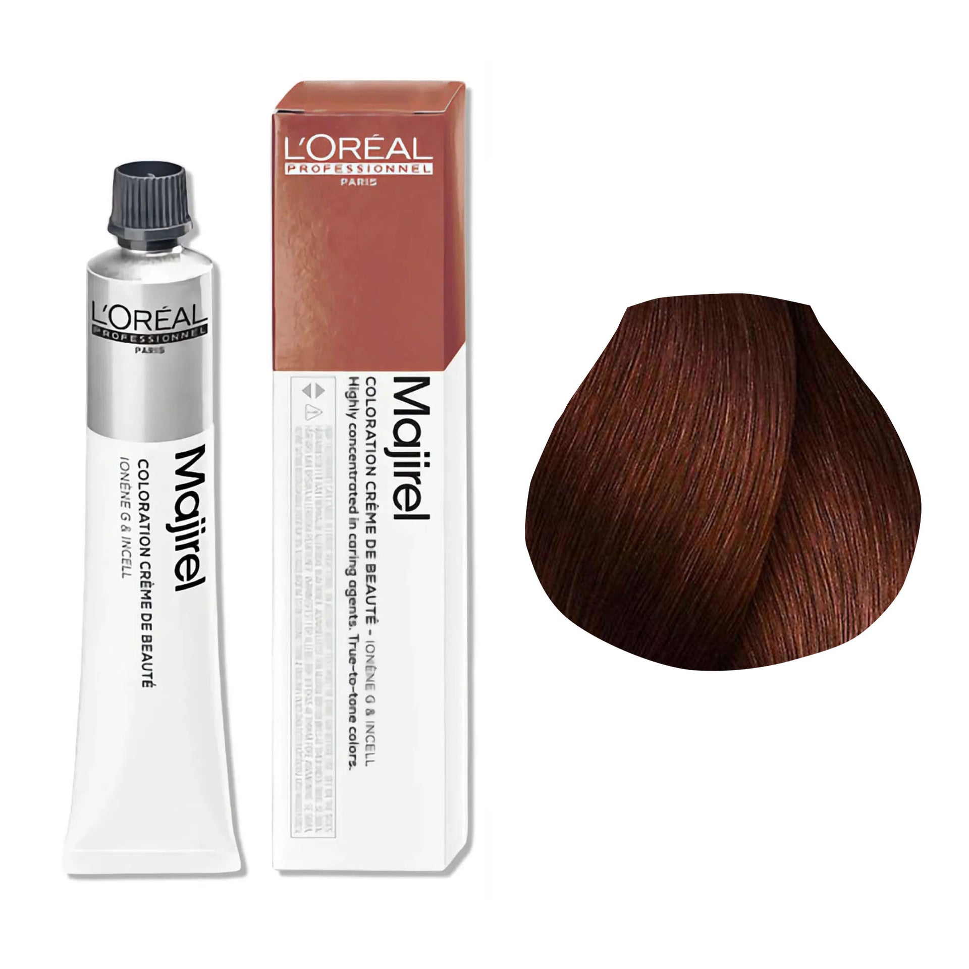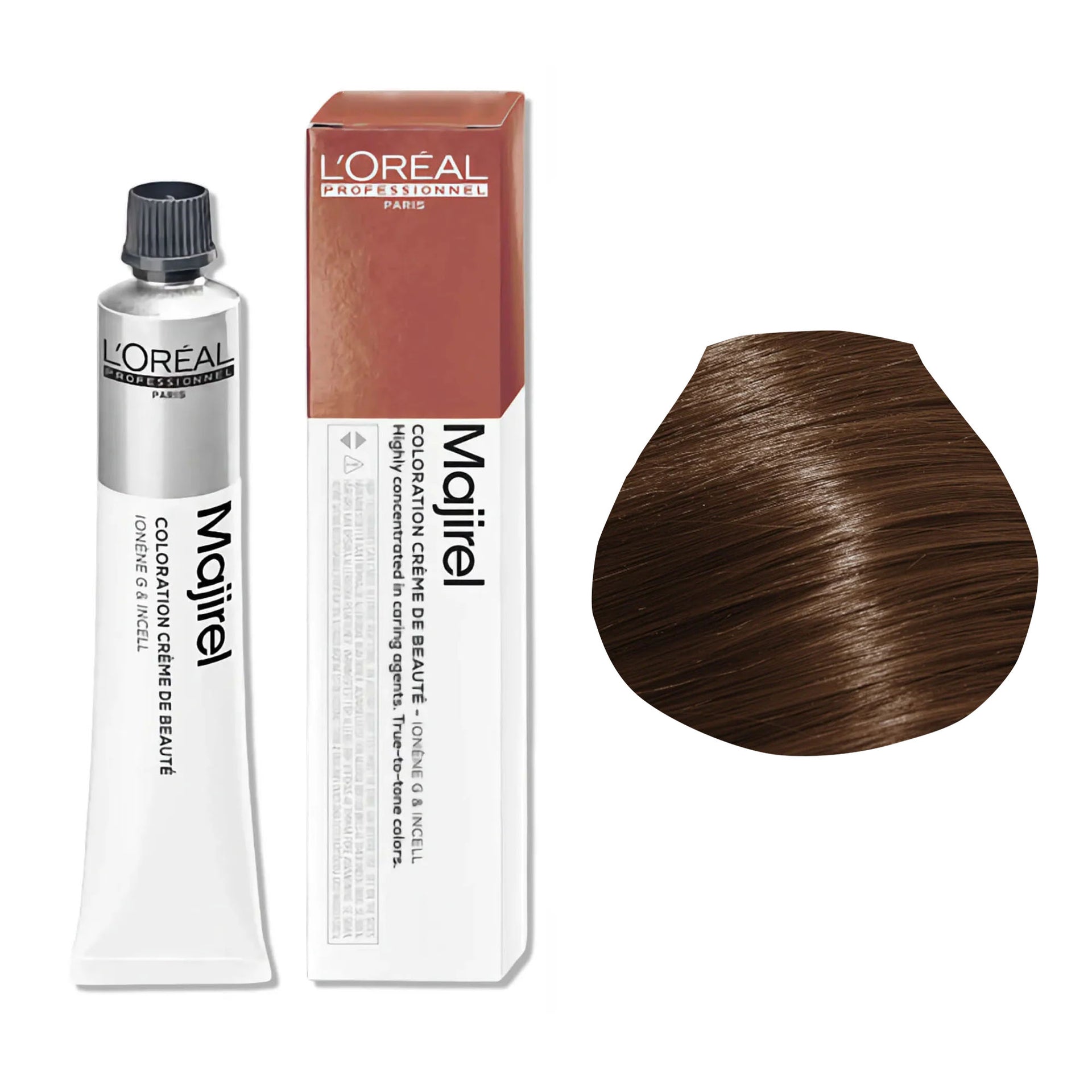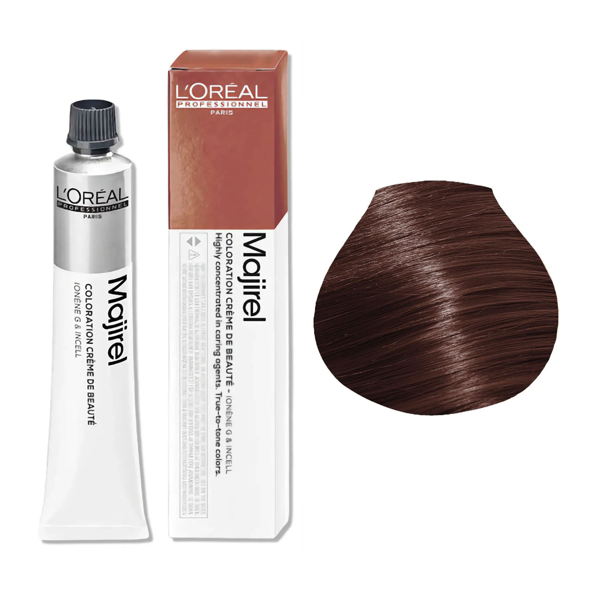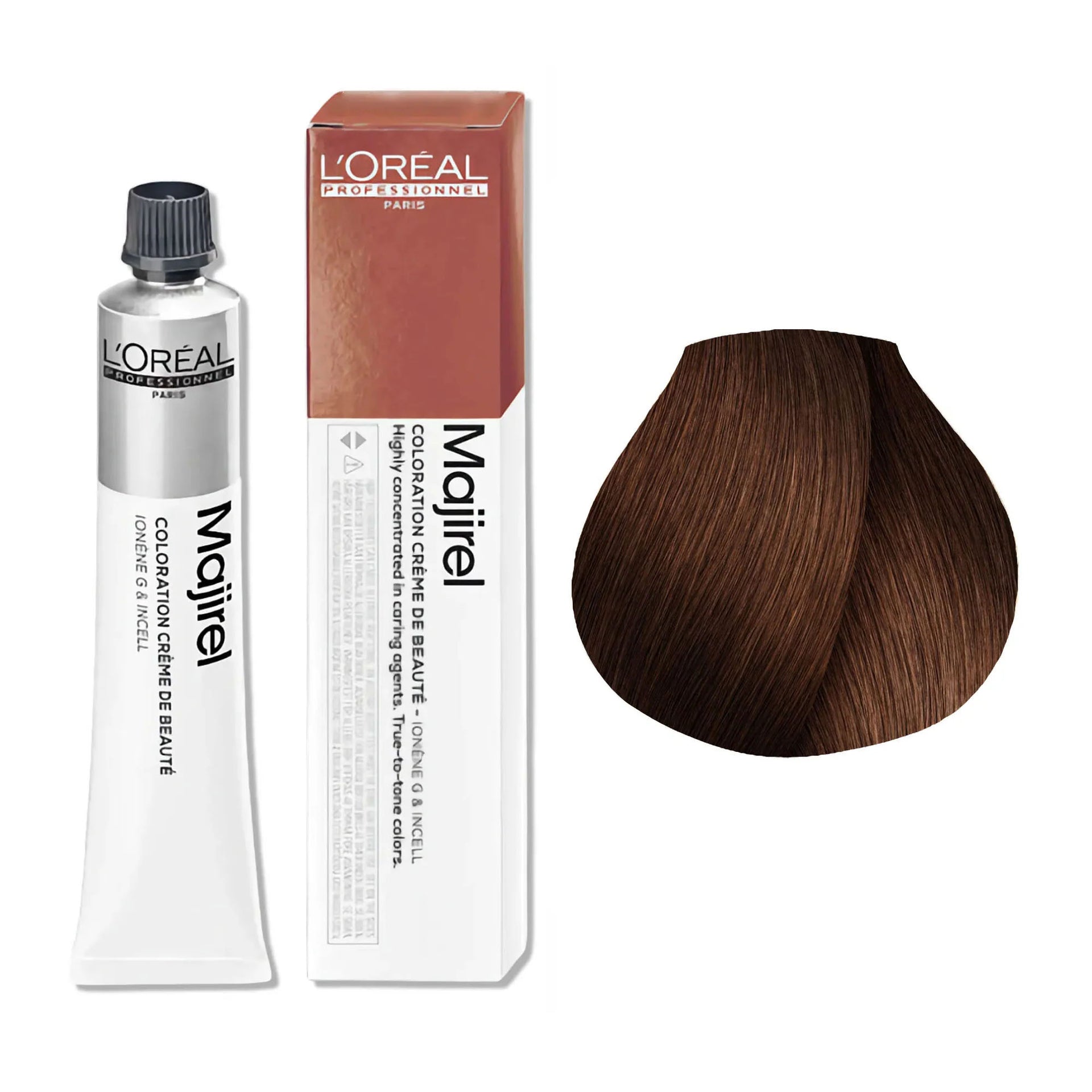 L'Oréal Professionnel Majirel Permanent Hair Colour Warm Brown Series delivers rich, long-lasting colour with a wide range of warm brown shades. Formulated to offer 100% grey coverage, it leaves hair feeling silky, smooth, and nourished from root to tip. The advanced Ionène G™ and Incell™ technologies work together to treat all three levels of the hair fibre, providing complete care and restoring the hair’s natural vitality. This cutting-edge technology strengthens the hair and enhances its shine, ensuring a professional finish every time.