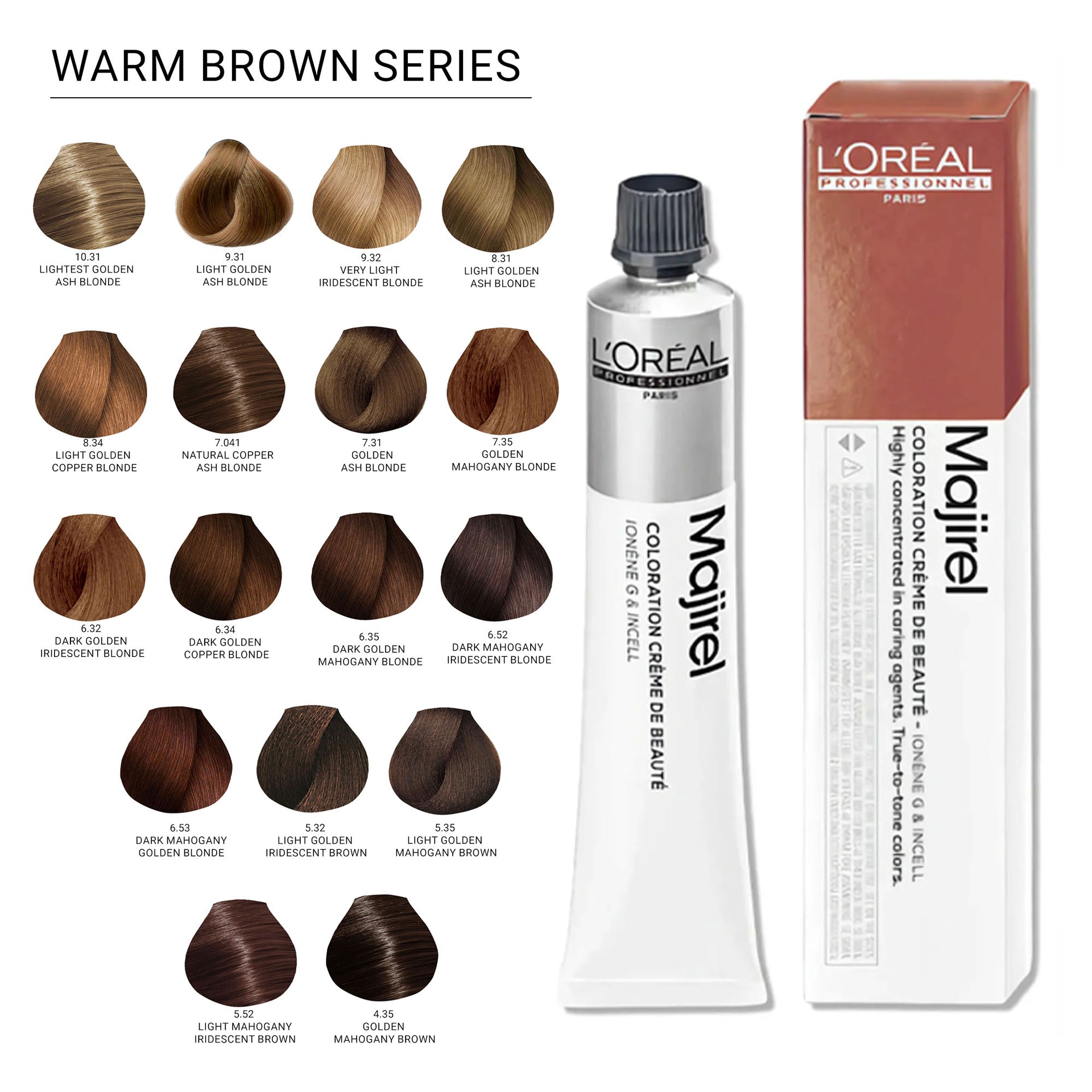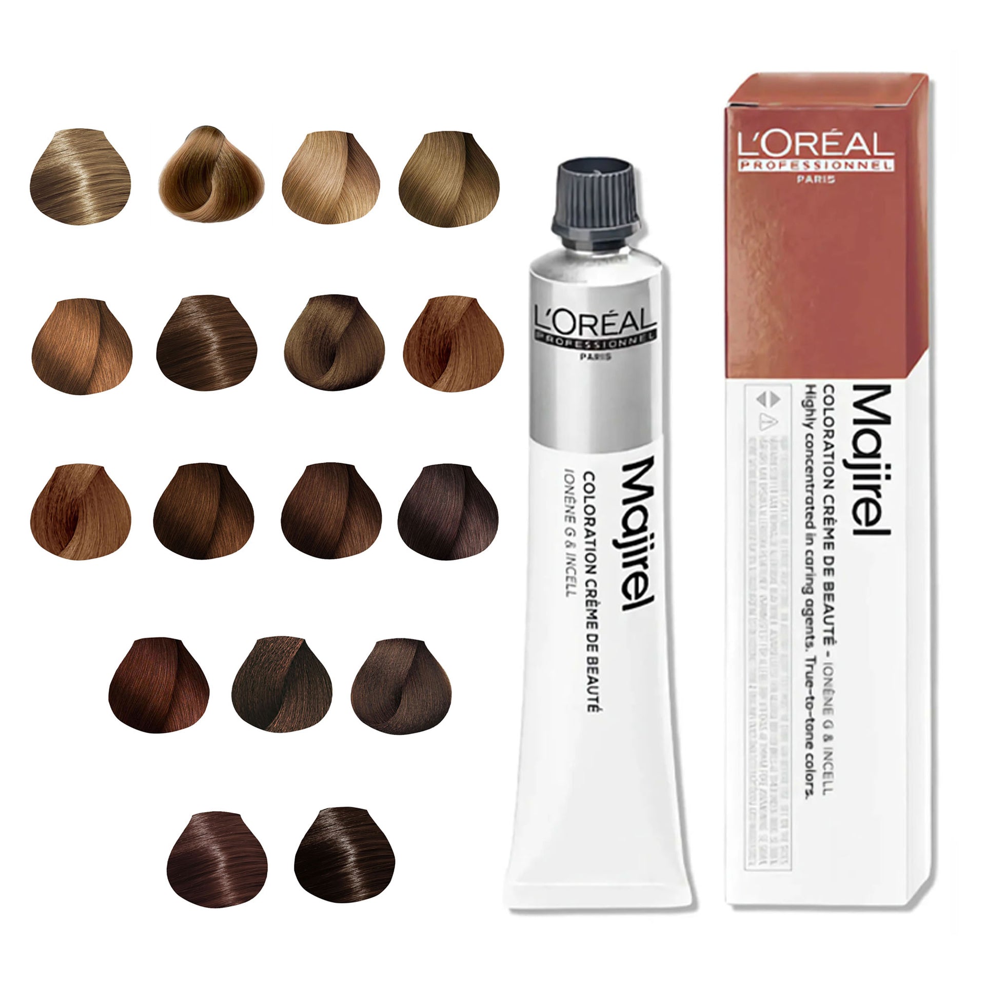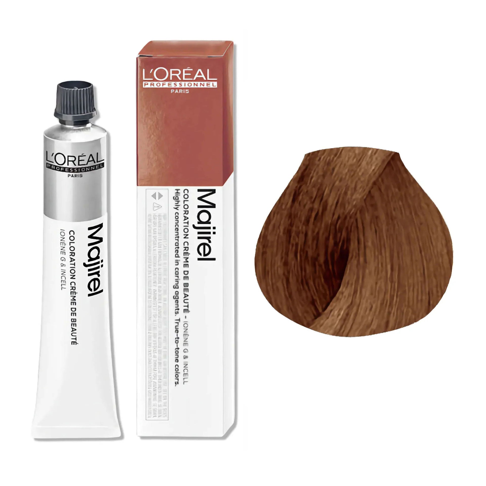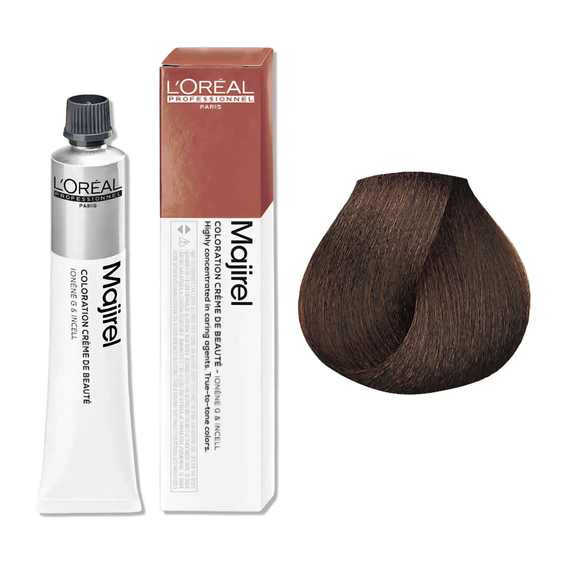 L'Oréal Professionnel Majirel Permanent Hair Colour Warm Brown Series delivers rich, long-lasting colour with a wide range of warm brown shades. Formulated to offer 100% grey coverage, it leaves hair feeling silky, smooth, and nourished from root to tip. The advanced Ionène G™ and Incell™ technologies work together to treat all three levels of the hair fibre, providing complete care and restoring the hair’s natural vitality. This cutting-edge technology strengthens the hair and enhances its shine, ensuring a professional finish every time.
