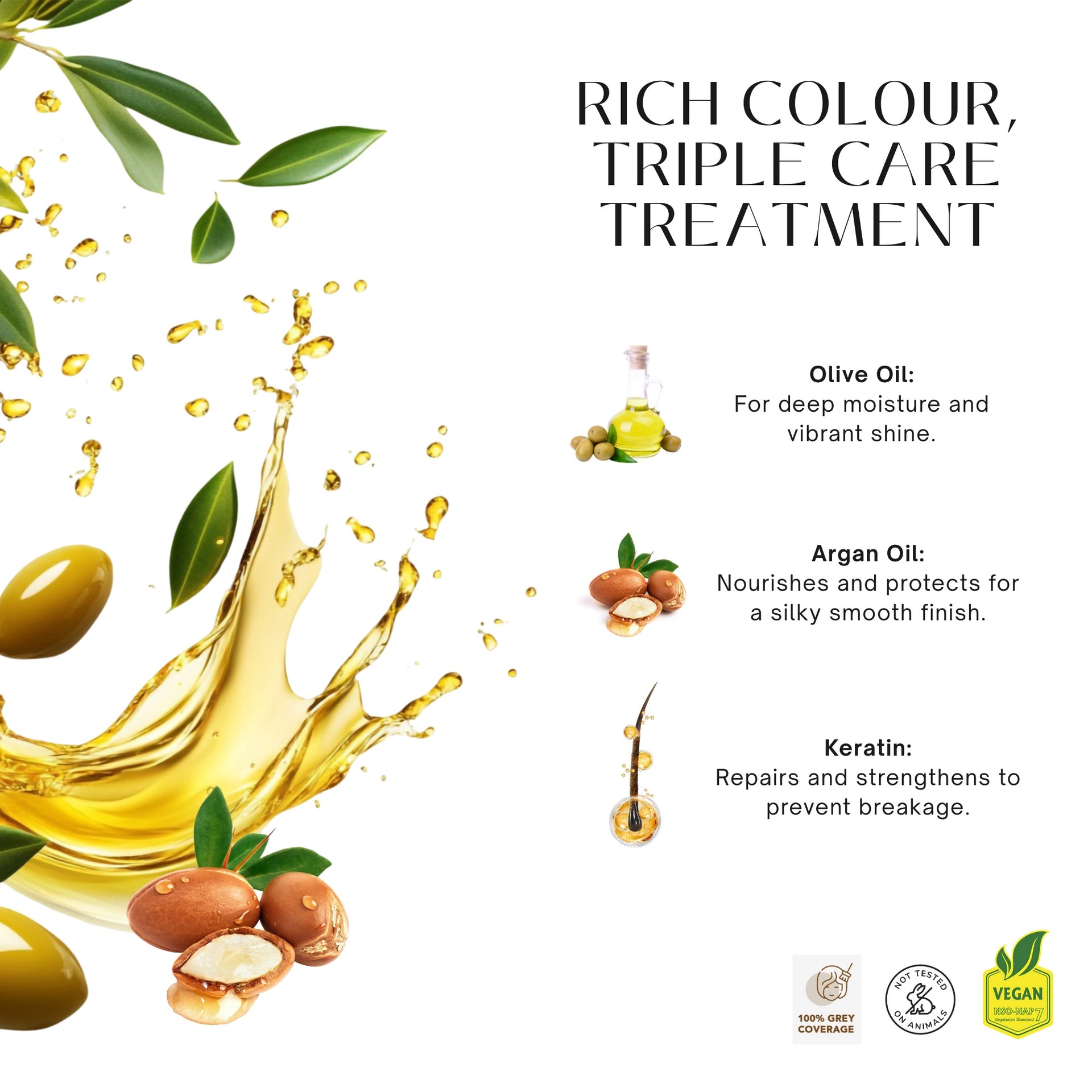 - A permanent hair colour kit featuring a triple care formula with Olive Oil, Keratin, and Argan Oil.