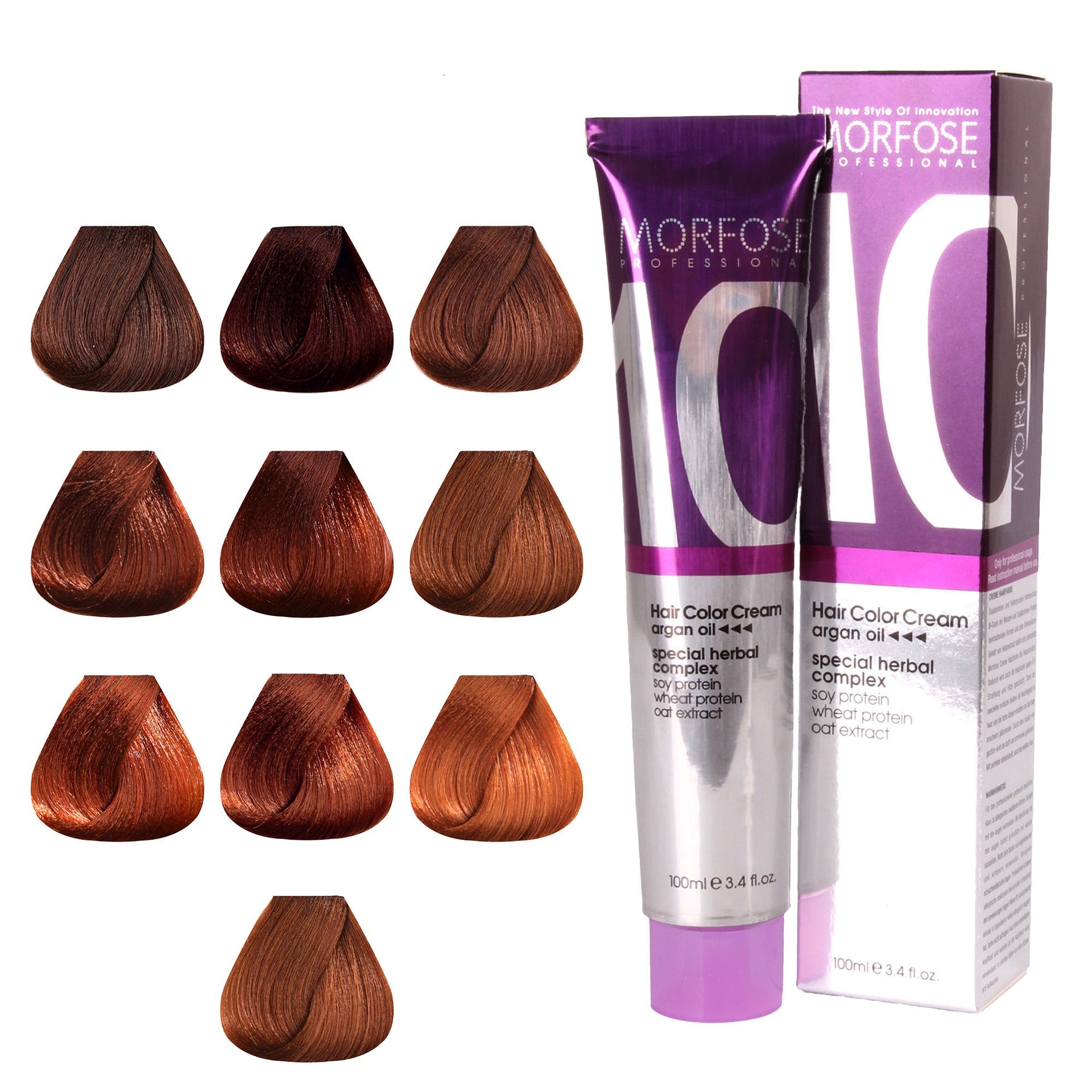 Ignite a spectrum of warmth with Morfose 10 Hair Colour Cream 100ml from the Copper Series, where each shade promises a vibrant transformation. From deep Dark Copper Brown to radiant Light Intense Copper, this collection offers fiery elegance to suit any skin tone or season. Infused with a unique blend of nine essential oils, including luxurious Japanese Camellia, nourishing Macadamia, and rejuvenating Argan, this colour cream saturates your hair with rich, long-lasting pigment while deeply conditioning it. Expect hair that not only gleams with vibrant colour but also feels incredibly soft, healthy, and full of life. Whether you're after a bold change or looking to enhance your natural warmth, the Copper Series guarantees a striking, sophisticated finish that lasts.