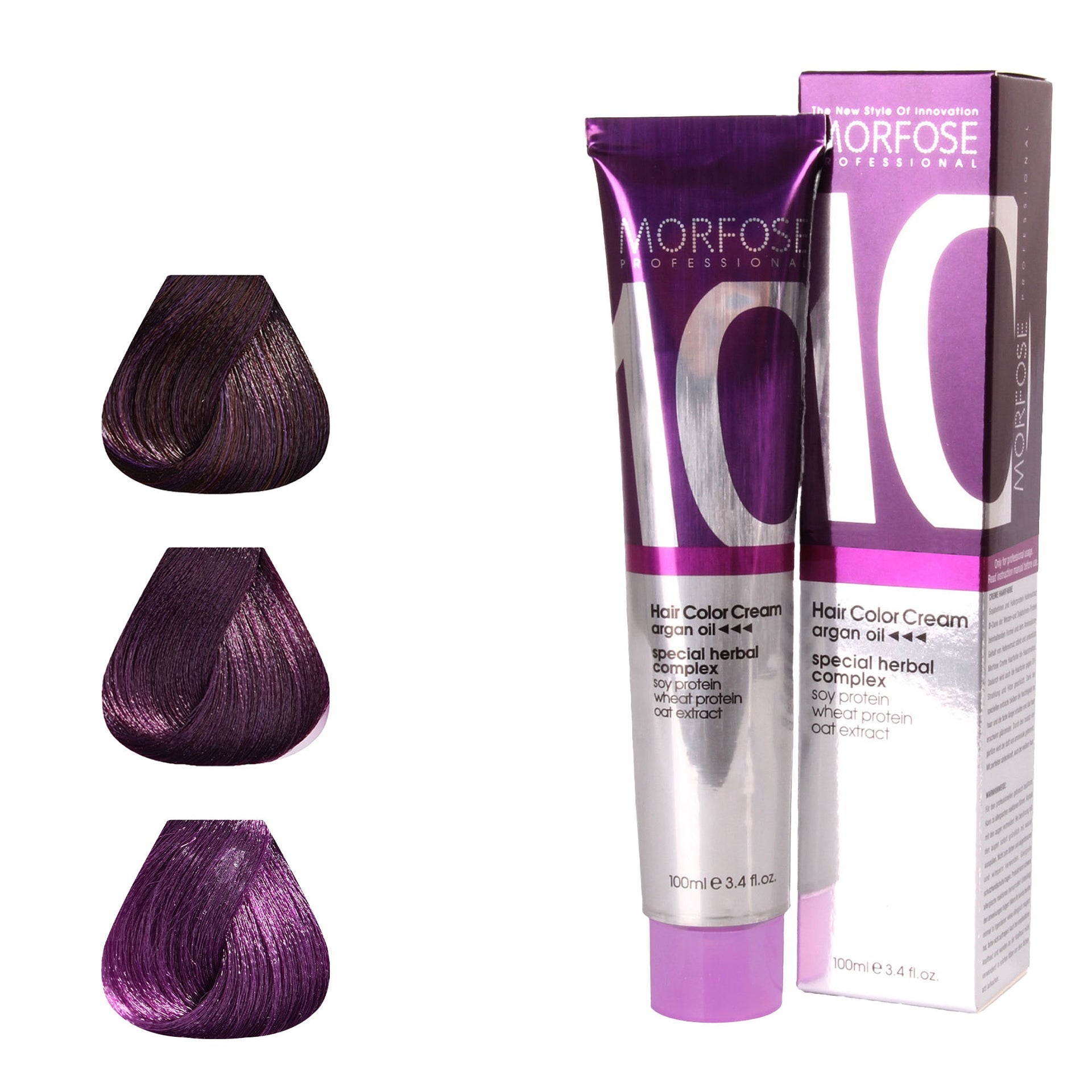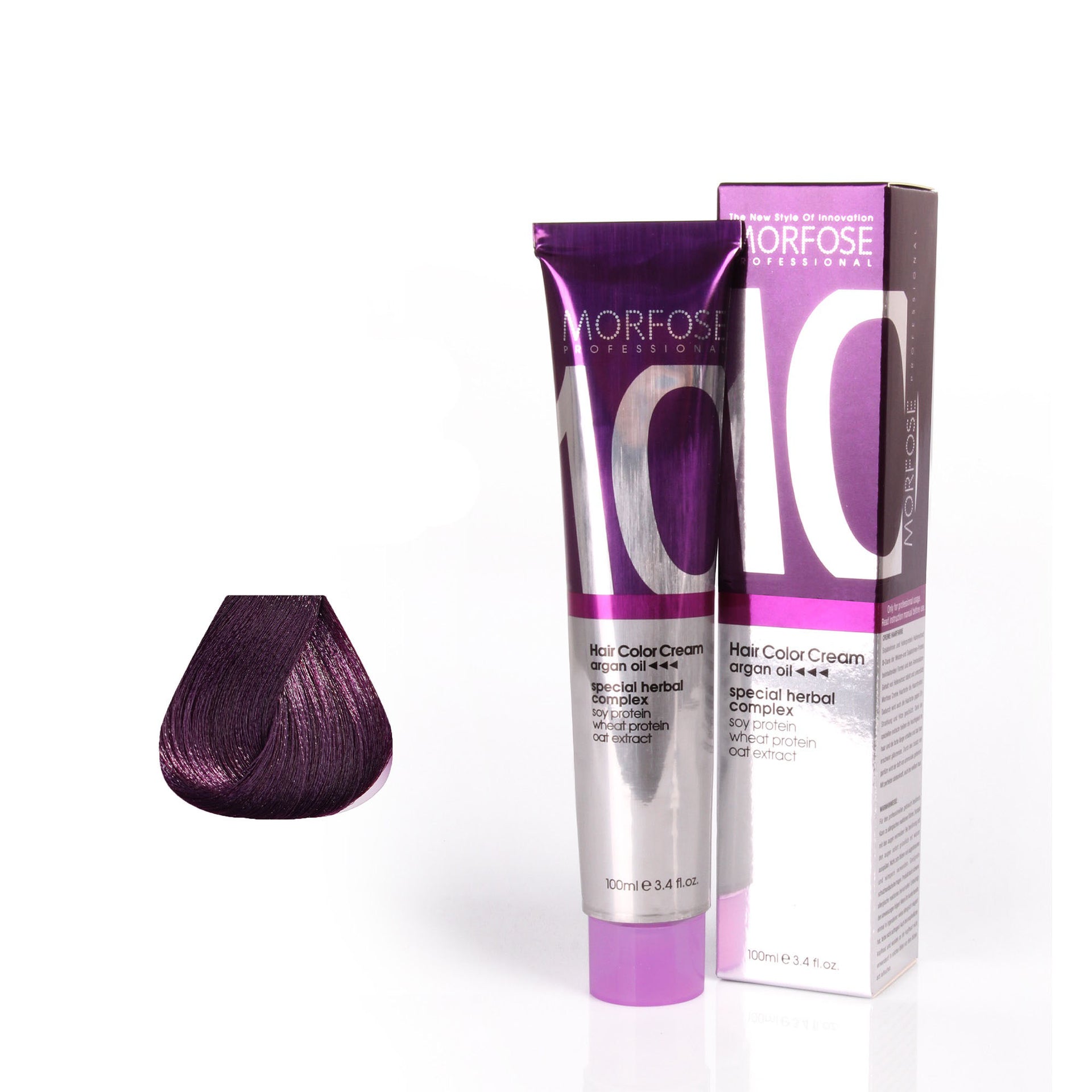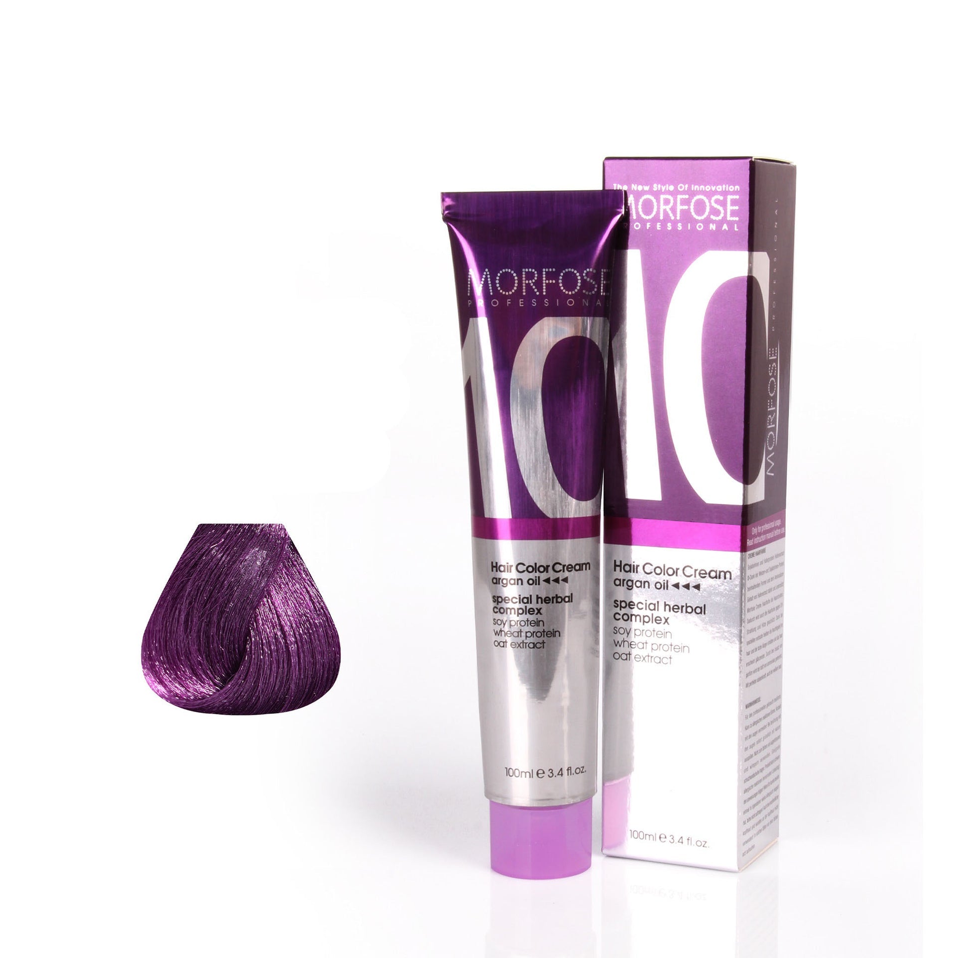 Unleash your creativity with Morfose 10 Hair Colour Cream 100ml from the Violet Series. This range boasts an exciting palette, from the deep, mysterious tones of Eggplant Purple to the lighter, whimsical hues of Periwinkle. Perfect for those looking to make a bold fashion statement, these vibrant shades not only enhance your look but also provide a nourishing treatment for your hair. Infused with a luxurious blend of nine essential oils, including Japanese Camellia, Macadamia, and Argan, the formula ensures your hair remains soft, healthy, and full of life. Every application revitalises your hair’s natural texture, giving it a radiant shine that complements the vivid new colour. Whether you're embracing a bold look or adding a splash of fun to your style, the Violet Series delivers stunning results with every use.