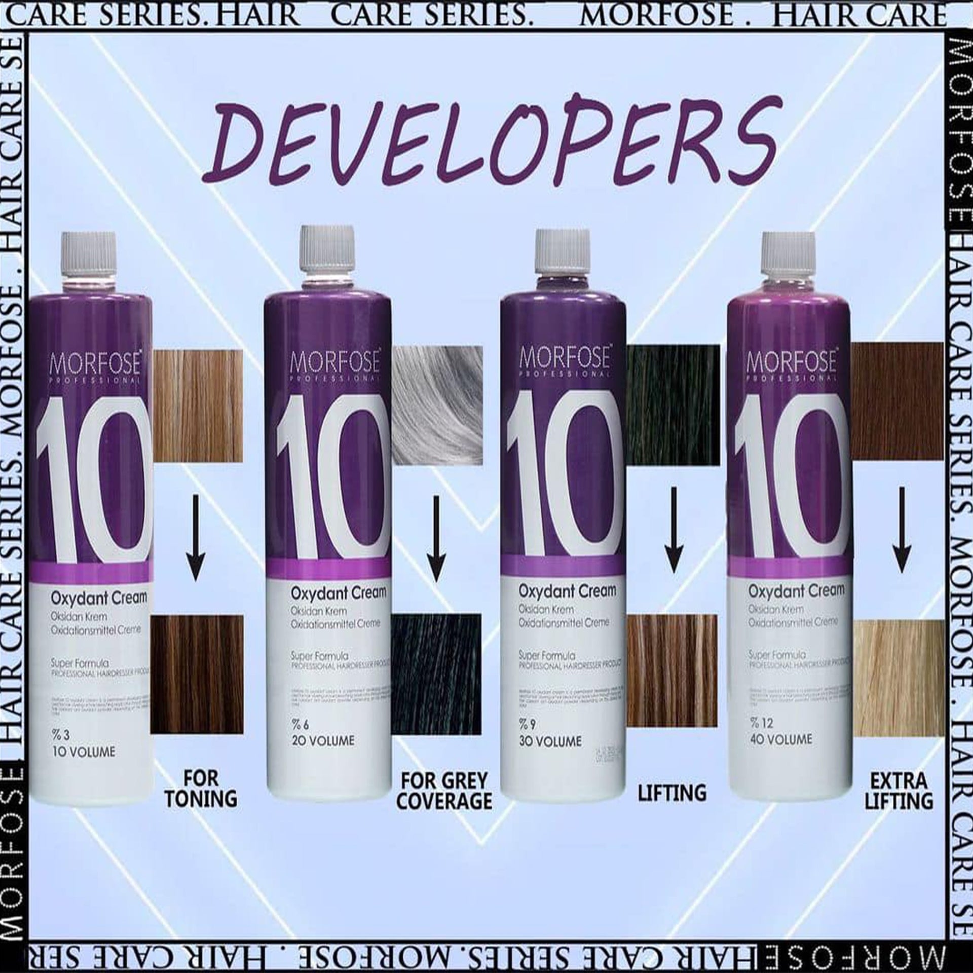 Mix the Morfose - 10 Oxidant Cream with the desired hair colour in the recommended ratio until smooth. Apply evenly to hair as directed and rinse thoroughly after processing.