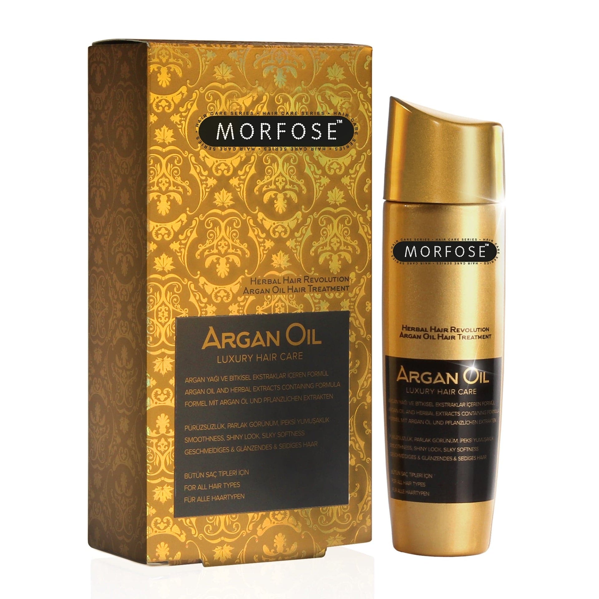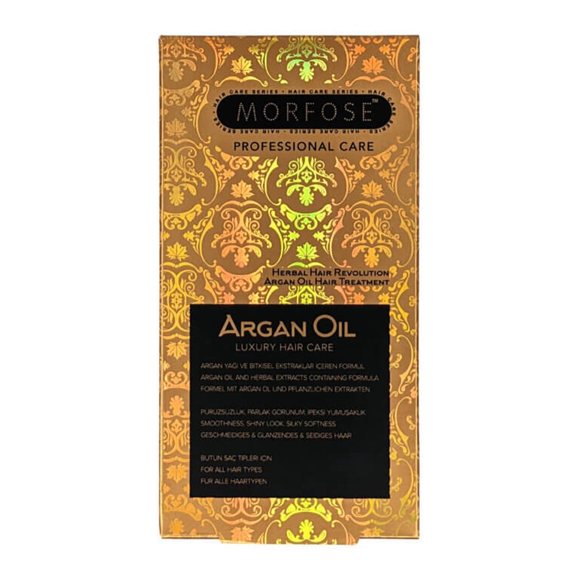 Transform your hair with Morfose - Argan Oil Luxury Hair Care 100ml, a premium treatment enriched with pure, cold-pressed argan oil, renowned as 'nature's liquid gold'. Rich in essential fatty acids and vitamin E, this luxurious formula penetrates deeply into the hair fibres, nourishing and repairing damage from within. It revitalises dull, lifeless hair, leaving it soft, smooth, and imbued with a radiant, healthy shine. Designed to tackle dryness and frizz, it promotes manageability and ensures your hair looks and feels its absolute best. Whether you’re dealing with brittle strands or simply looking to enhance your hair's natural beauty, this product delivers exceptional results with every use.