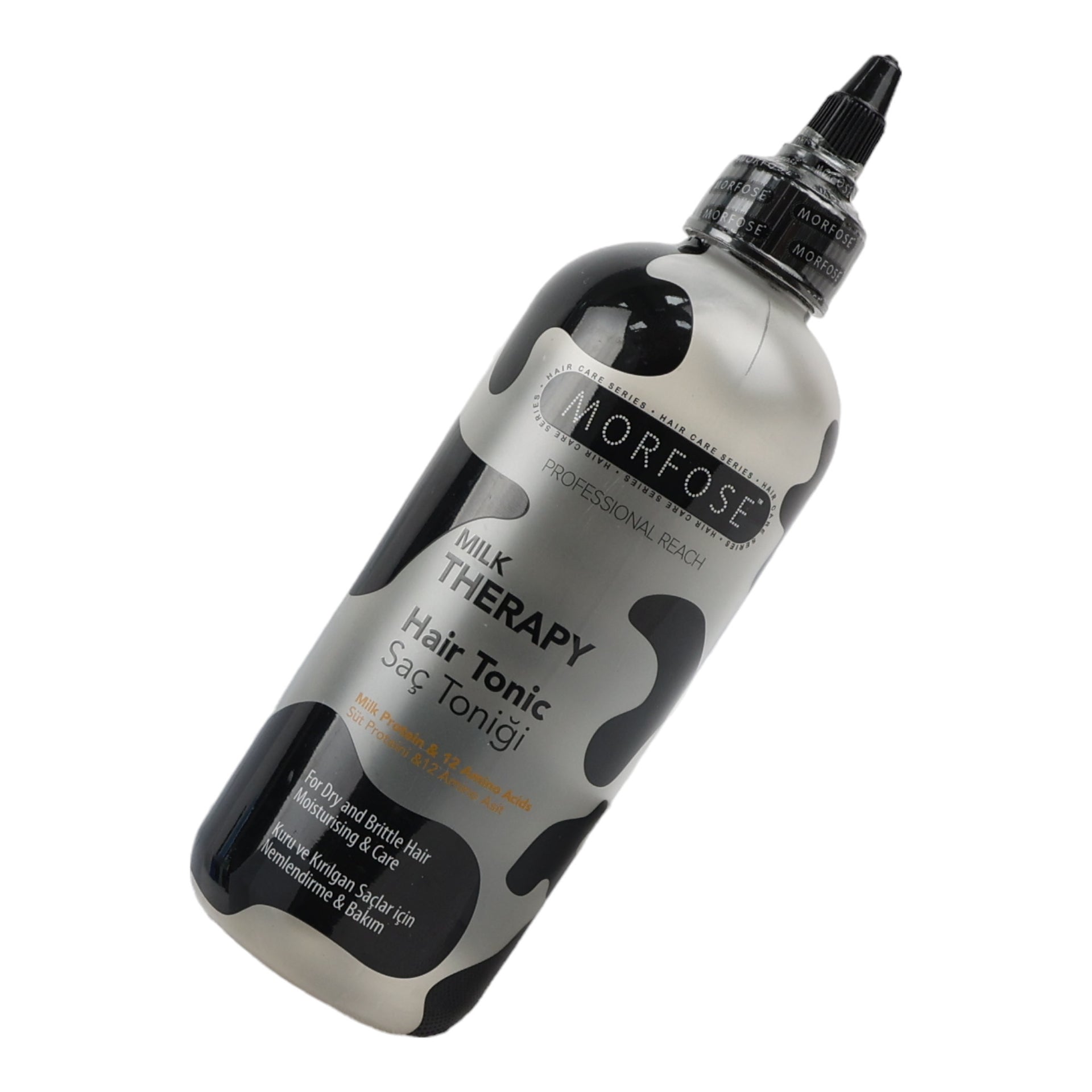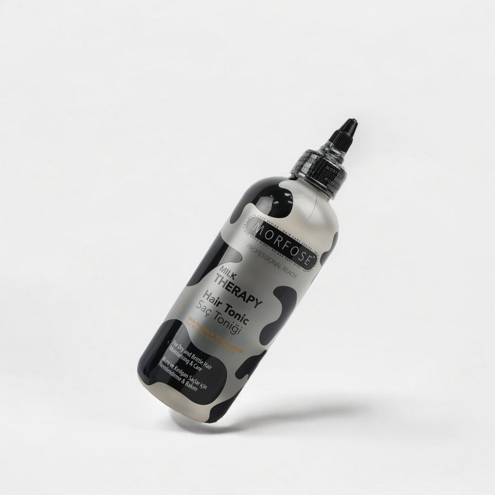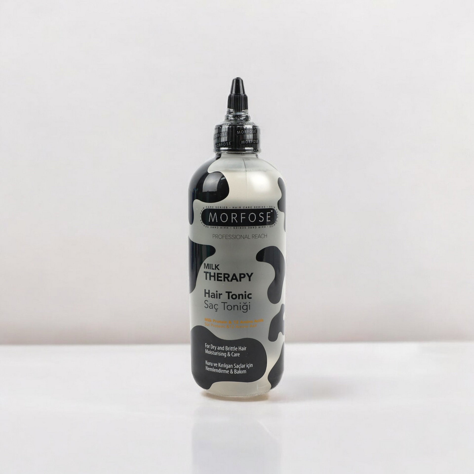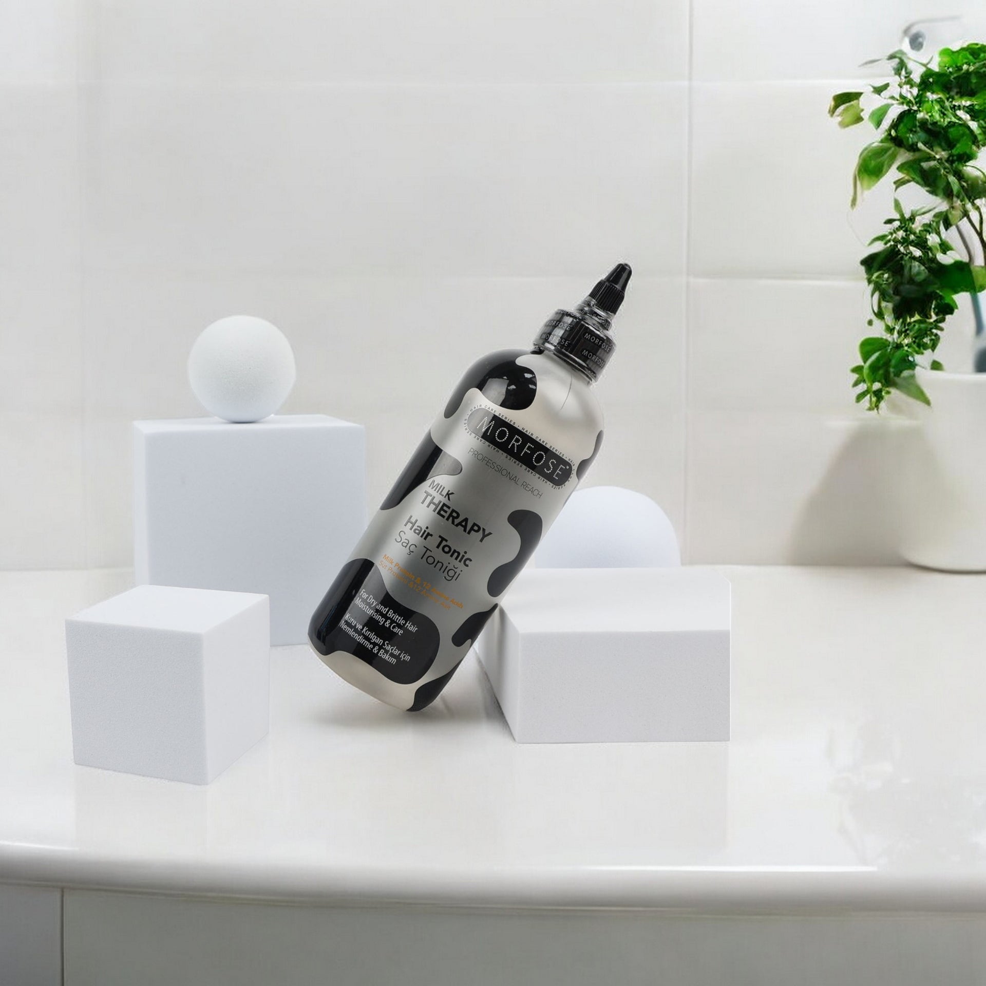 Morfose Milk Therapy Hair Tonic is expertly crafted to deliver intense hydration and nourishment to your hair and scalp. Formulated with 12 essential amino acids and milk protein, this tonic soothes dry, irritated scalps while fortifying brittle hair from root to tip. The potent blend of Niacinamide, Caffeine, Prebiotics, and Ceramide works synergistically to promote healthy hair growth, improve scalp circulation, and support a balanced scalp microbiome. This results in hair that is not only stronger and more resilient but also visibly shinier and softer.