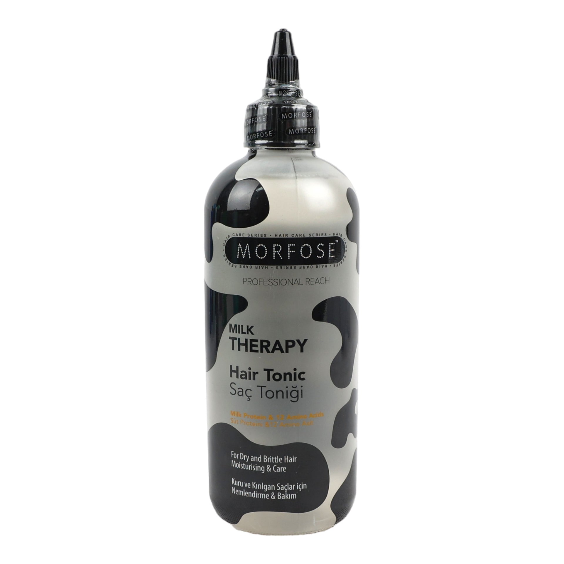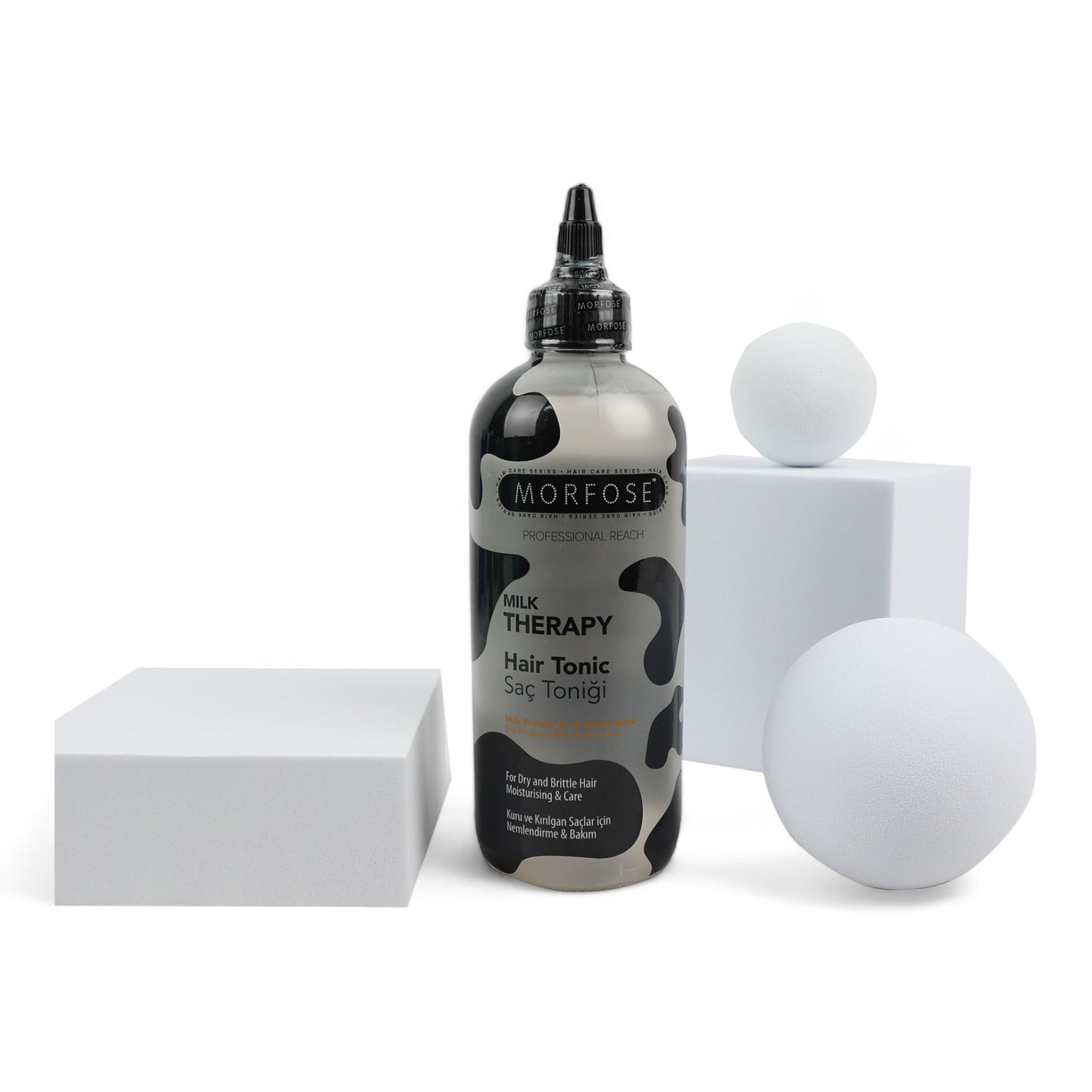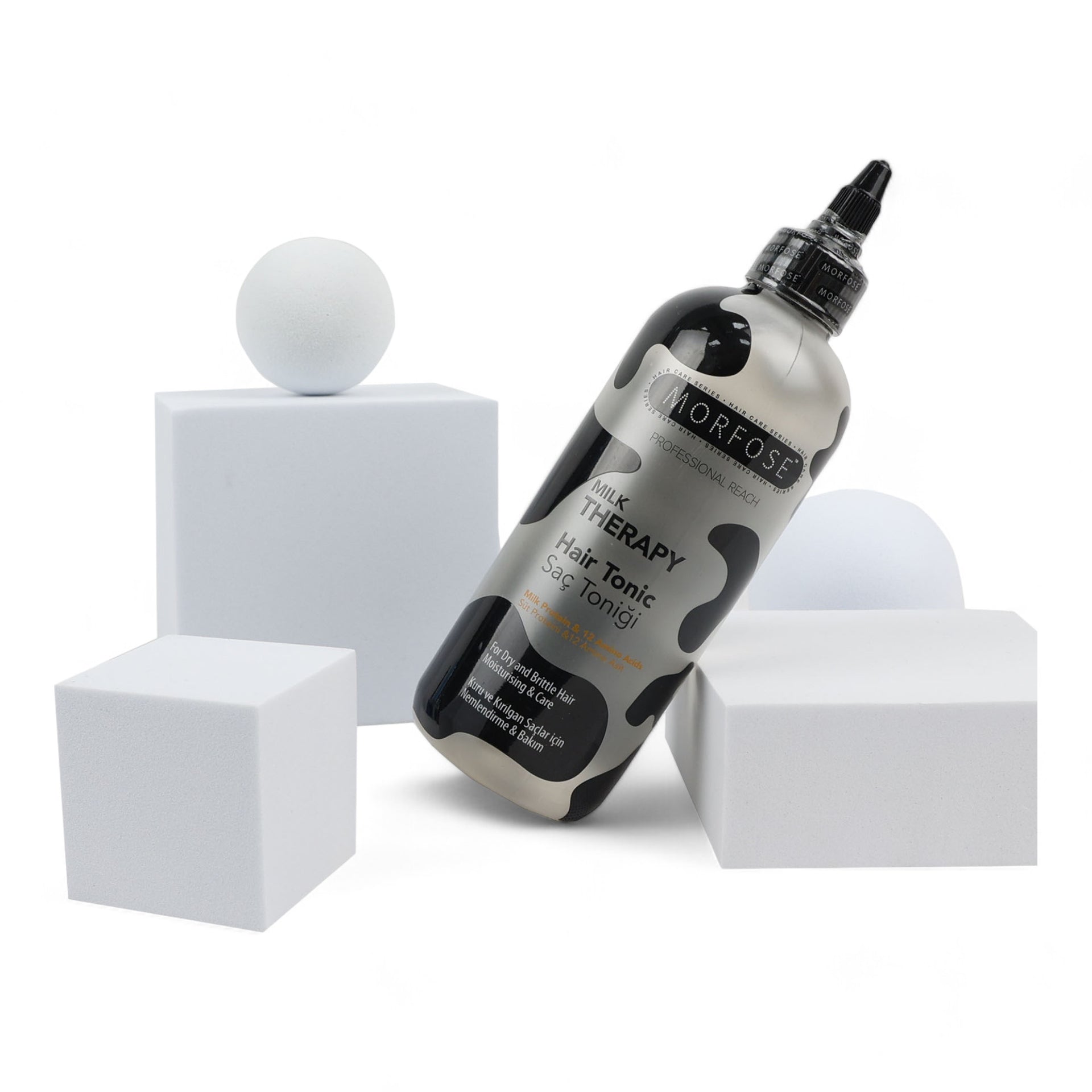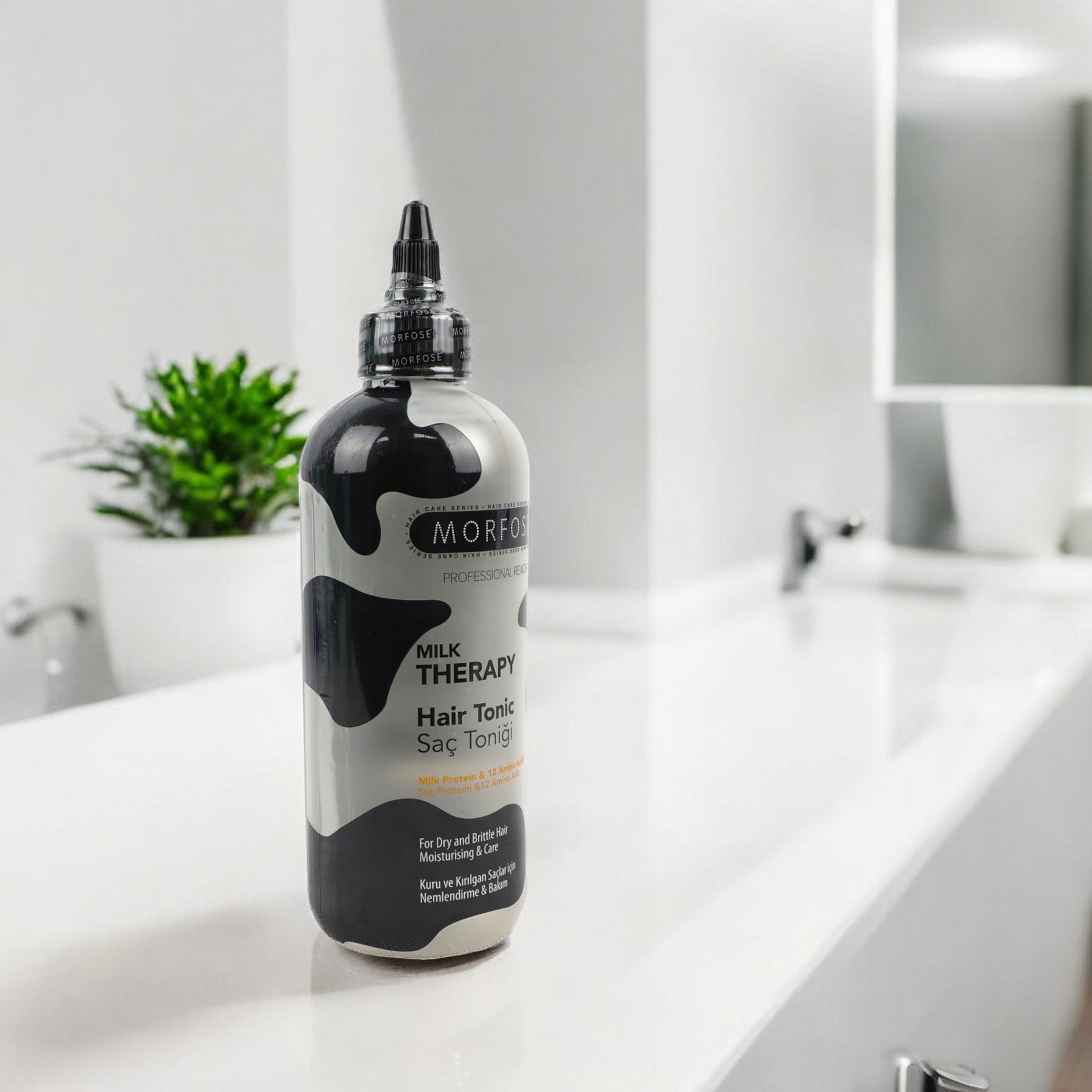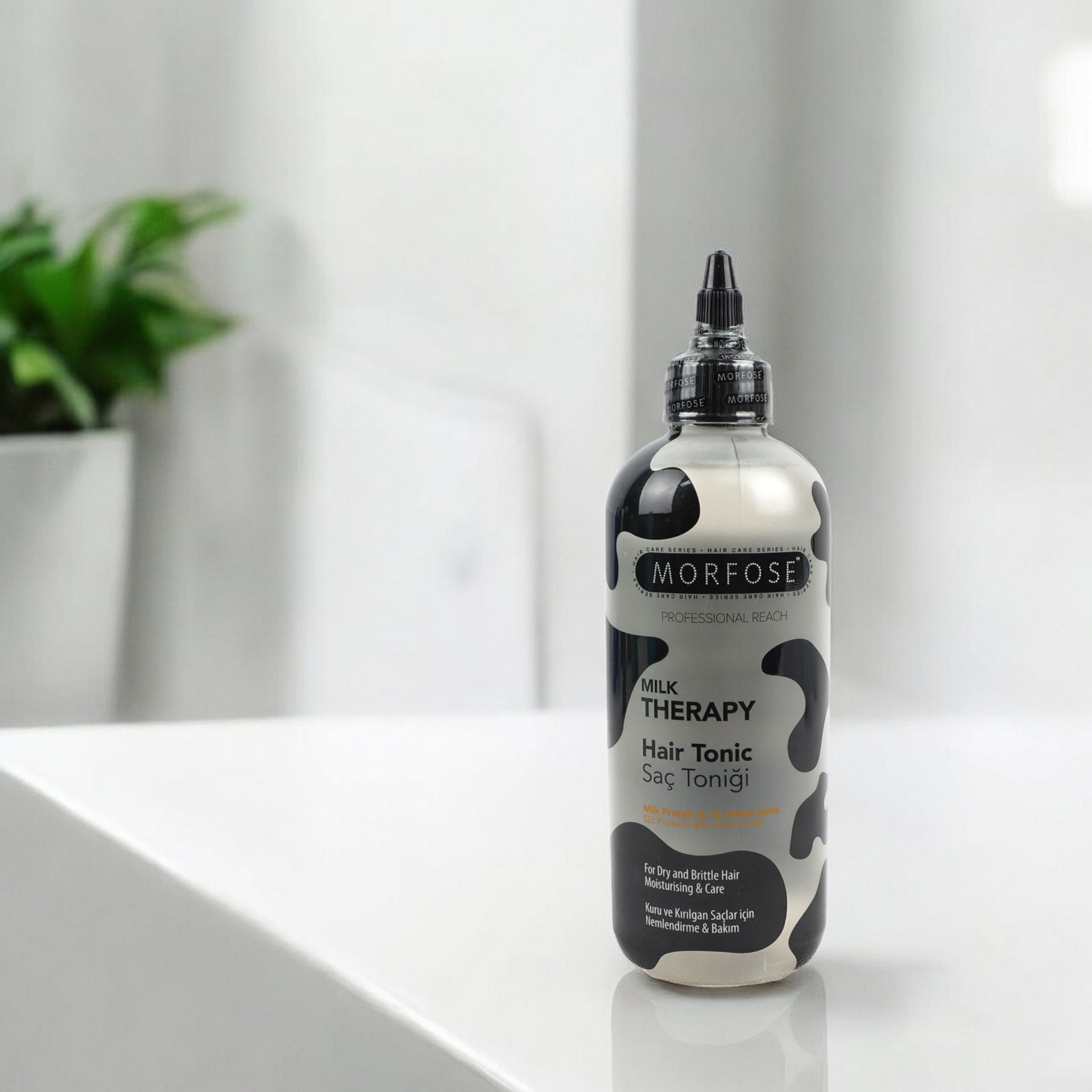 Morfose Milk Therapy Hair Tonic is expertly crafted to deliver intense hydration and nourishment to your hair and scalp. Formulated with 12 essential amino acids and milk protein, this tonic soothes dry, irritated scalps while fortifying brittle hair from root to tip. The potent blend of Niacinamide, Caffeine, Prebiotics, and Ceramide works synergistically to promote healthy hair growth, improve scalp circulation, and support a balanced scalp microbiome. This results in hair that is not only stronger and more resilient but also visibly shinier and softer.