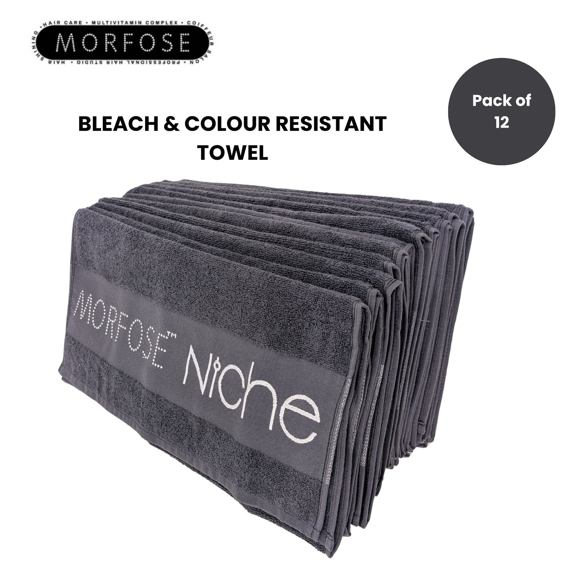 Elevate the professionalism and efficiency of your salon with the Morfose - Professional Bleach-Proof Salon Towels (Pack Of 12). Expertly crafted to withstand the demanding environment of a busy salon, these towels are specially treated to resist stains from bleach and hair colour, ensuring they maintain their sophisticated dark grey appearance wash after wash. Made from premium 100% cotton, they offer superior absorbency and an ultra-soft feel, providing maximum comfort for your clients. Their durable construction guarantees a long-lasting quality that will not disappoint. These towels are a smart investment, helping you to maintain a polished and pristine look in your workspace.