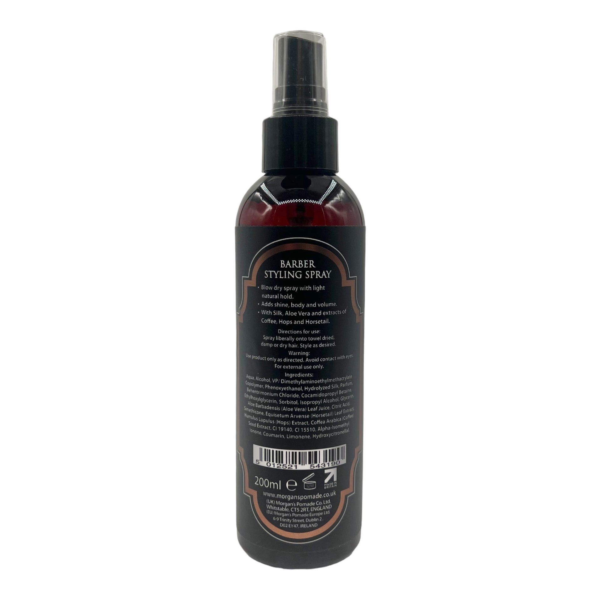 Unlock the secret to a professional finish with Morgan's Barber Styling Spray Light Natural Hold 200ml, a versatile pre-styling treatment designed to enhance the natural body of your hair. This expert formulation provides a light, flexible hold that creates the perfect foundation for any style, allowing you to shape and mould your look effortlessly without stiffness or crunch. Enriched with a unique blend of Hydrolyzed Silk, Aloe Vera, and botanical extracts of Coffee, Hops, and Horsetail, it adds significant volume and a healthy shine to dull or flat hair. Ideal for use before blow-drying, it helps to thicken the hair shaft while offering essential conditioning benefits.