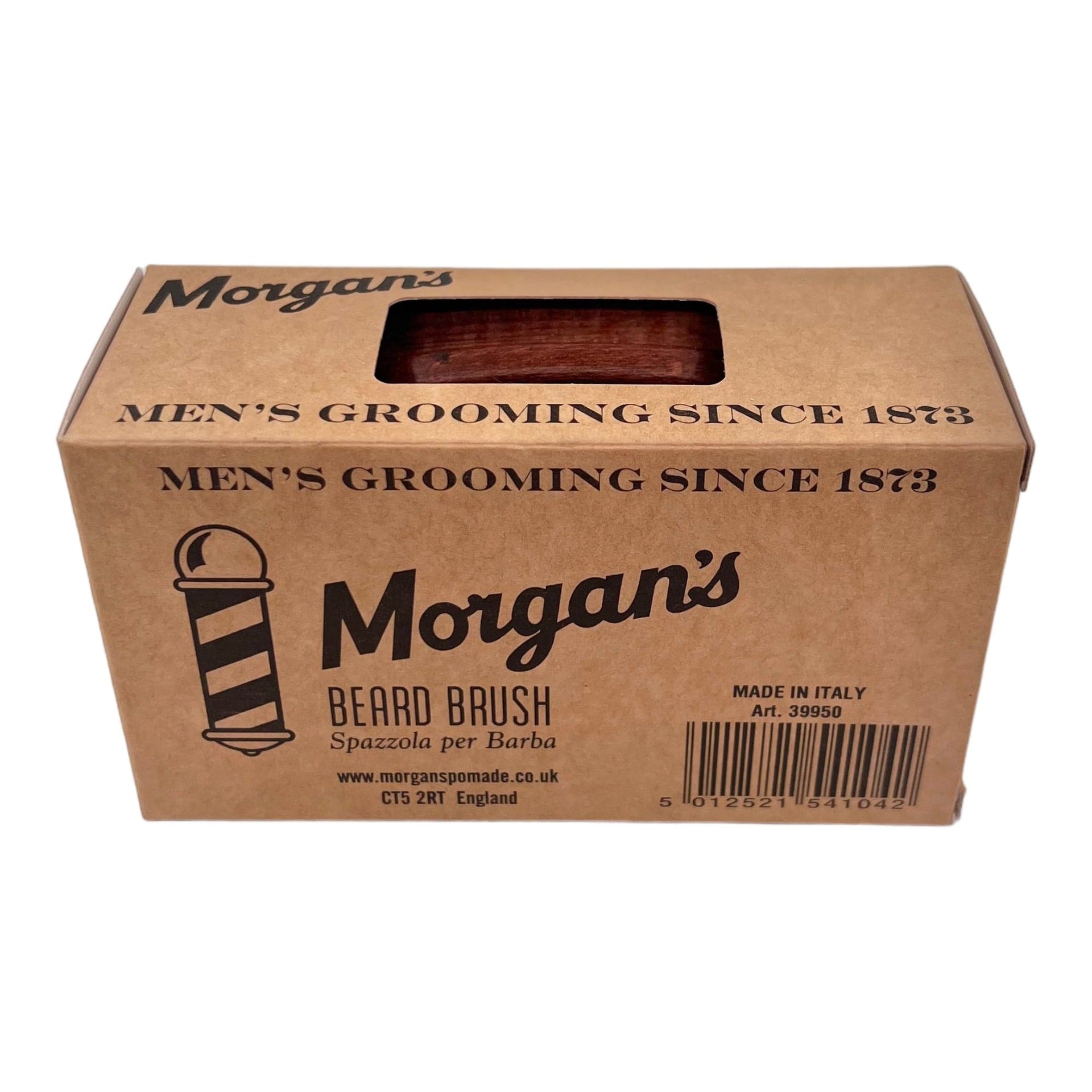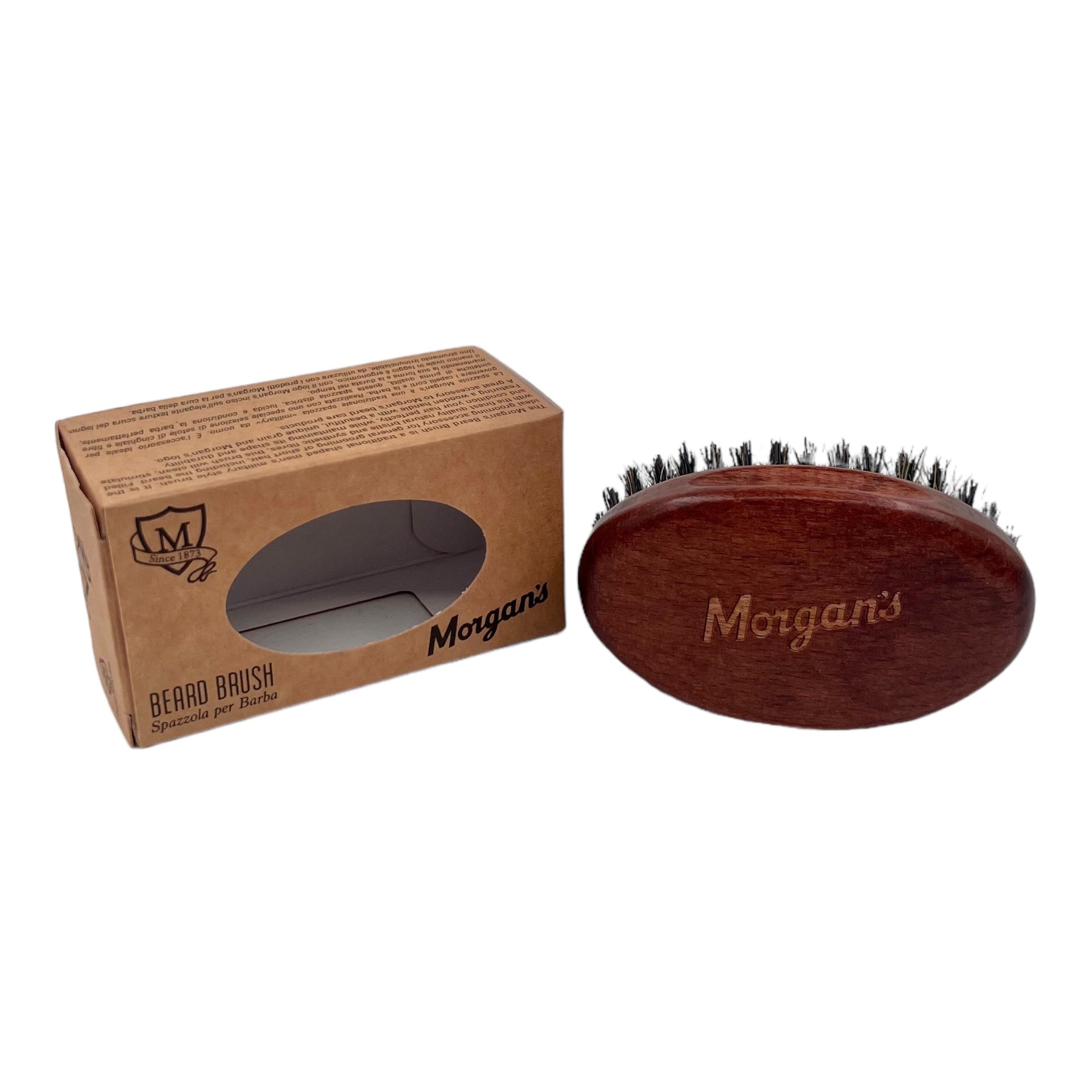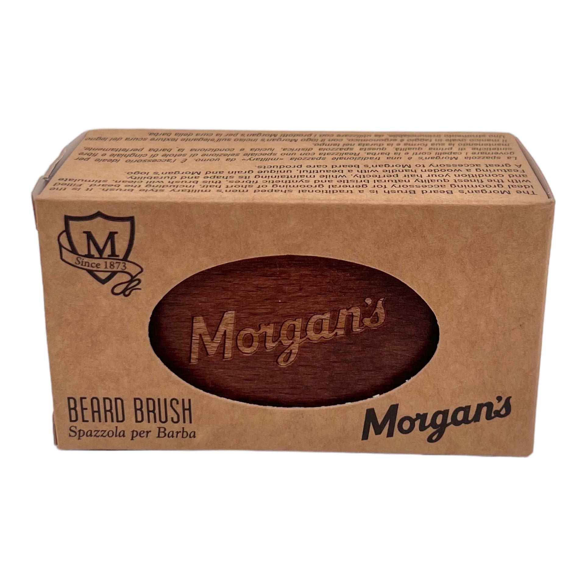 Enhance your daily grooming ritual with this stylish, functional brush. Engraved with the iconic Morgan's logo, the brush's handle adds a sophisticated touch to your grooming toolkit, making it not just a tool but part of your decor. Regular use helps to spread beard oils and balms evenly, ensuring that every hair is nourished and the skin underneath remains healthy and itch-free. It's an essential accessory for anyone who takes their beard care seriously, promoting not only style but also the well-being of your beard.