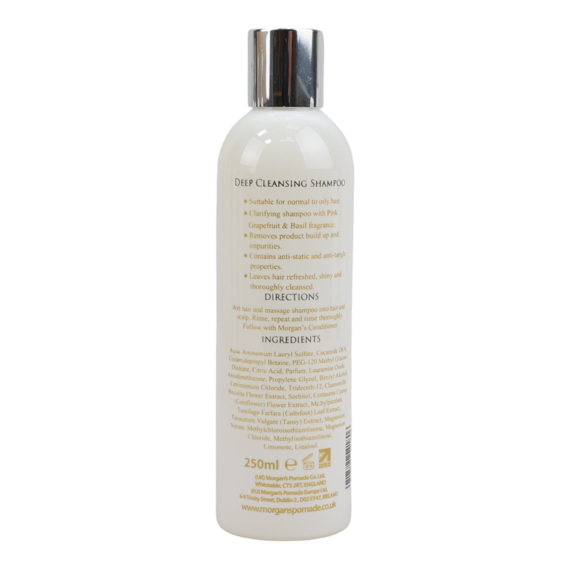 Refresh and revitalise your hair with Morgan's Deep Cleansing Shampoo, specially formulated to remove product build-up, impurities, and excess oils. Ideal for those with greasy or oily hair, this shampoo restores your hair's natural pH balance, leaving it thoroughly cleansed and revitalised. Enriched with anti-static and anti-tangle properties, it ensures your hair remains smooth and manageable after every wash. The invigorating fragrance of Pink Grapefruit and Basil adds a refreshing touch, making your hair not only look clean but smell delightful.