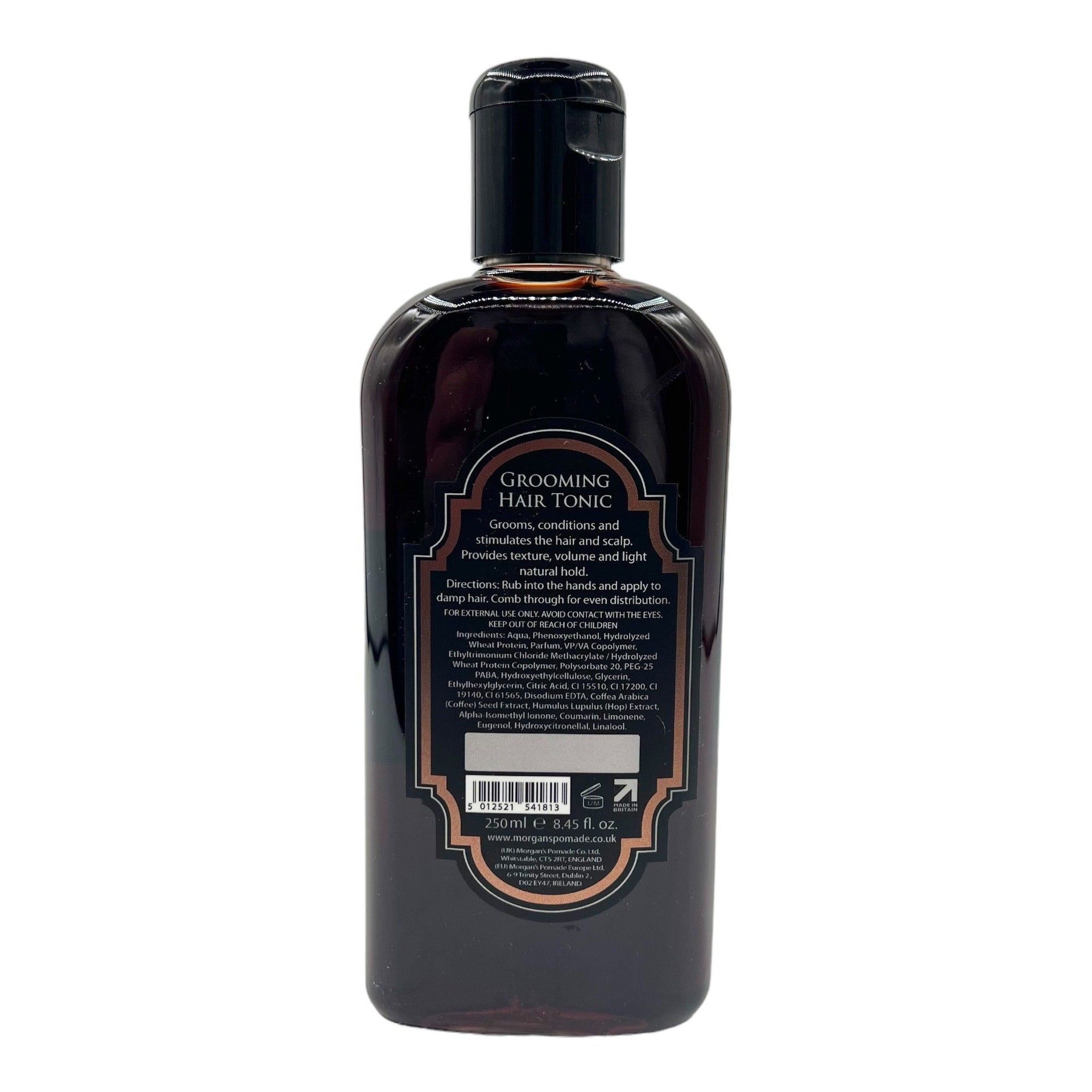 Immerse yourself in the classic world of barbering with Morgan's Grooming Hair Tonic Bay Rum 250ml, a traditional grooming essential revitalised for the modern man. This exquisite tonic blends the nostalgic, spicy aroma of Bay Rum with advanced hair care technology to stimulate the scalp and invigorate the senses. Enhanced with Wheat Protein, Coffee, and Hop extracts, it actively promotes healthy hair growth whilst conditioning the scalp to relieve dryness or irritation. The formula is designed to groom and style *effortlessly*, providing texture and volume that transforms lifeless hair into a refined, manageable look.