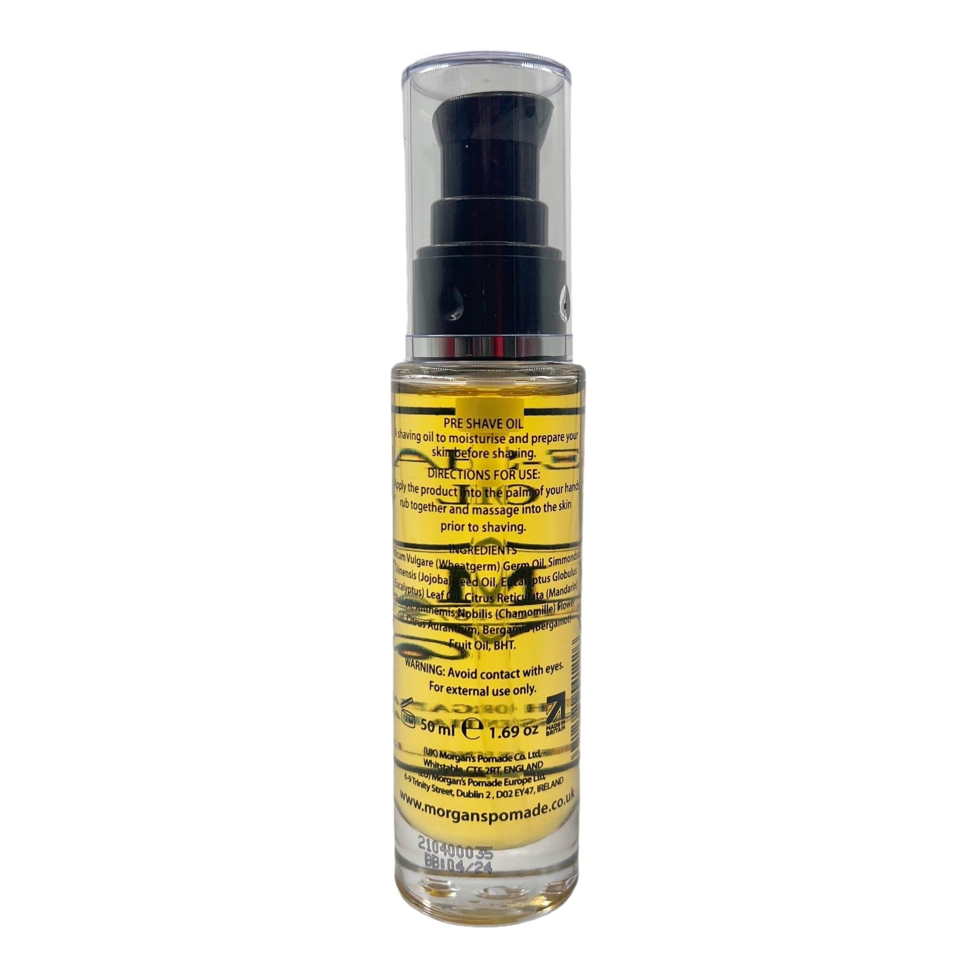 Apply a small amount of oil to moistened skin and massage over the shaving area before applying your usual shaving cream or soap. Shave as normal. Use with Morgan's shaving products for best results.