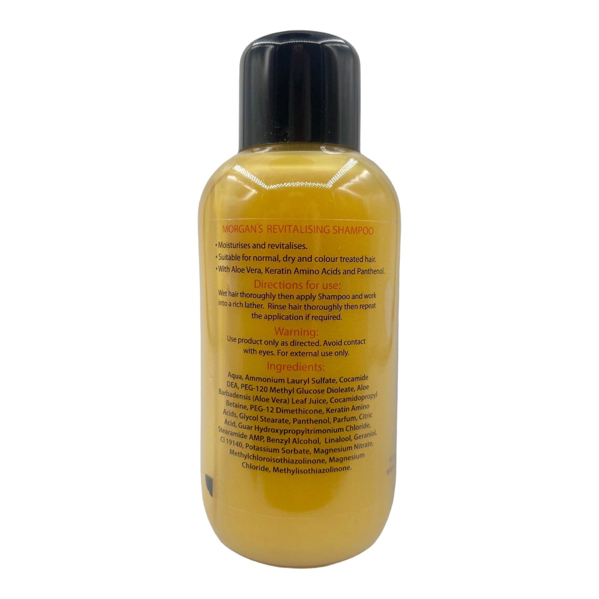 Discover the secret to healthy, lustrous hair with Morgan's Revitalizing Shampoo. This luxurious formula transcends traditional cleansing to deliver deep nourishment and repair, transforming dry, damaged, or color-treated hair into a vision of strength, vitality, and radiant shine. Experience the transformative power of this salon-quality treatment and embrace the confidence that comes with beautifully revitalized hair. Infused with the potent combination of nourishing Aloe Vera and Keratin Amino Acids, this revitalizing shampoo goes beyond surface-level cleansing. Aloe Vera delivers a surge of hydration, while Keratin Amino Acids penetrate the hair shaft to rebuild its damaged structure, promoting strength, resilience, and a healthy sheen.