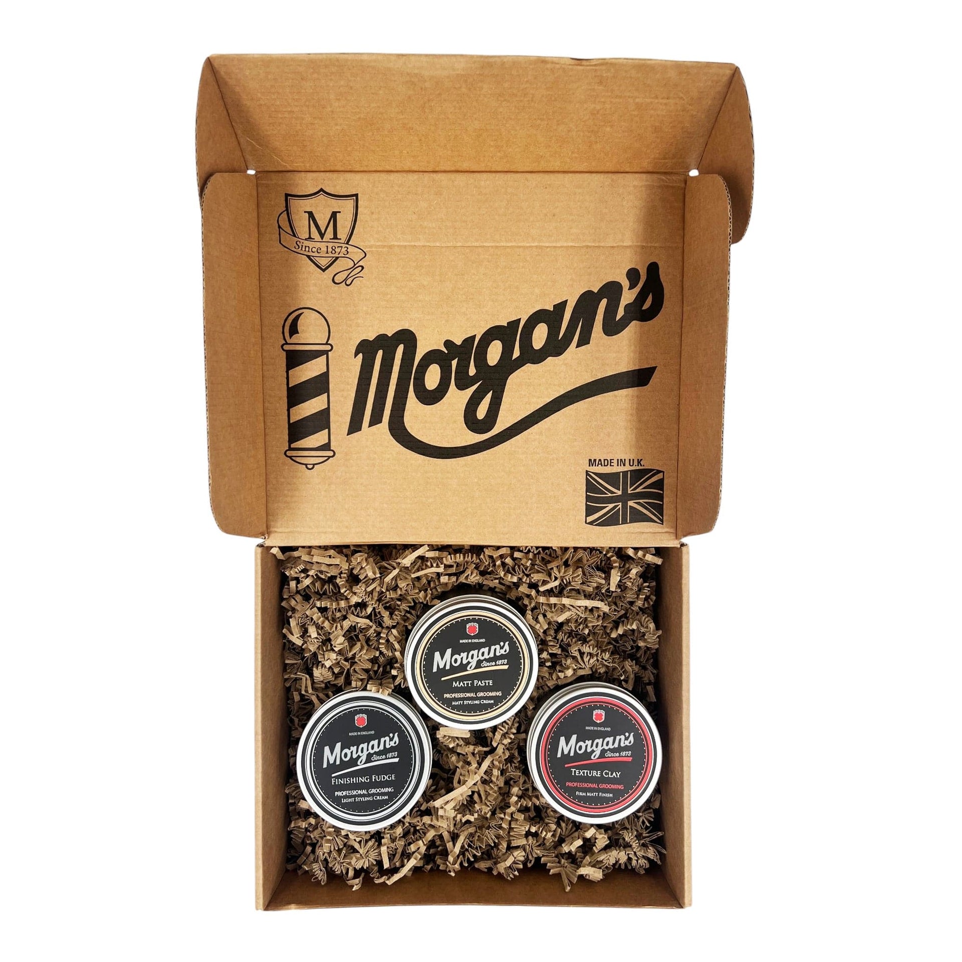 Discover the secret to impeccable grooming with Morgan's Styling Gift Set. This trio of styling essentials is your ticket to versatile, modern hairstyles that speak of sophistication and care. Made in the UK, our Texture Clay, Matt Paste and Finishing Fudge offer customisable hold and texture without compromising hair health. With formulations perfect for every hair type, embrace the confidence that comes with professionally styled locks.
