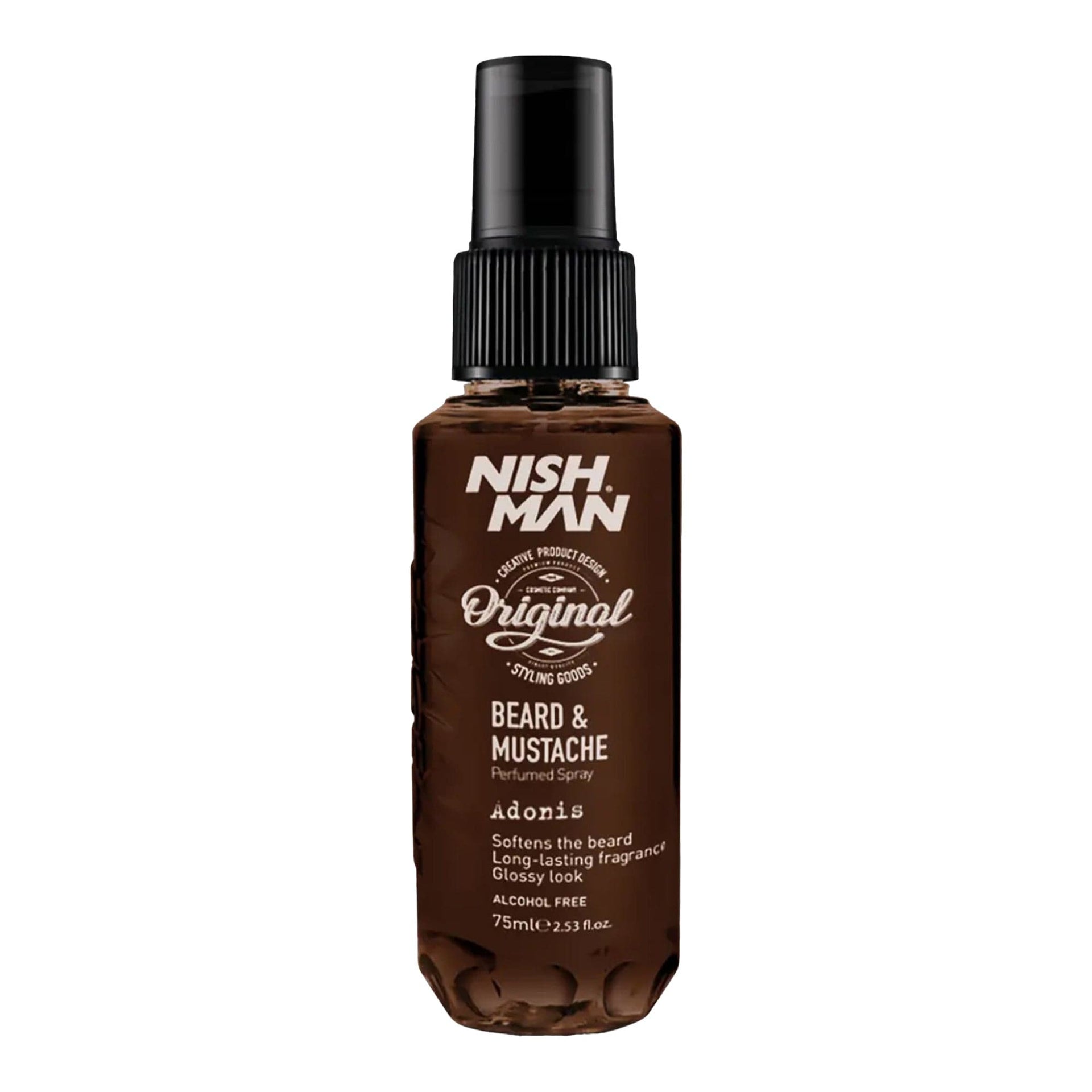 Enhance your beard grooming routine with Nishman Beard & Mustache Perfumed Spray Adonis 75ml. This premium beard perfume is designed to leave your beard smelling and shining perfectly, effectively eliminating chemical and cigarette odours. Its unique formula, specifically designed for beard structure, contains extra complex vitamins to nourish your beard for a more impressive appearance. The alcohol-free formula ensures that your beard and moustache are moisturised and softened, leaving them shiny, healthy and silky.