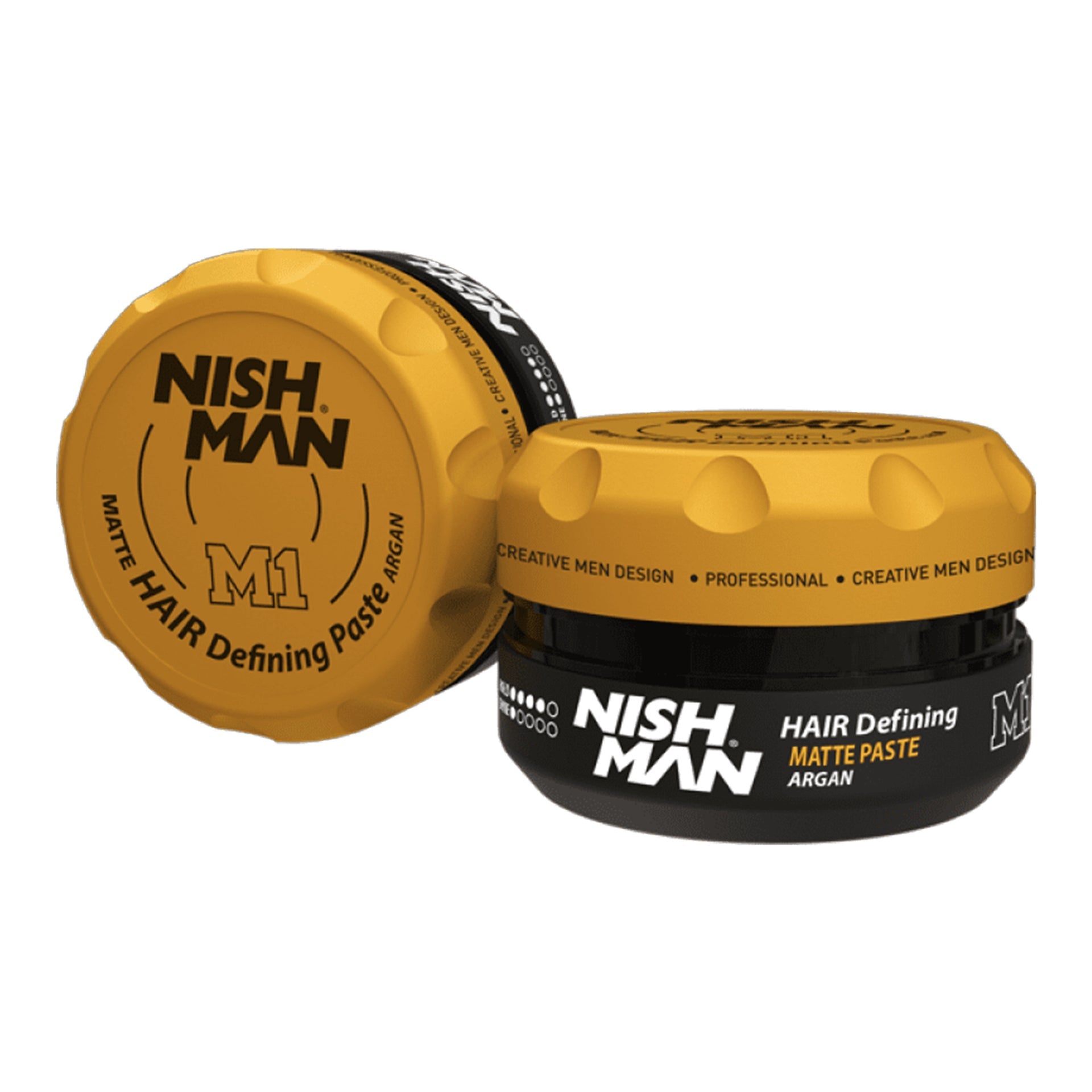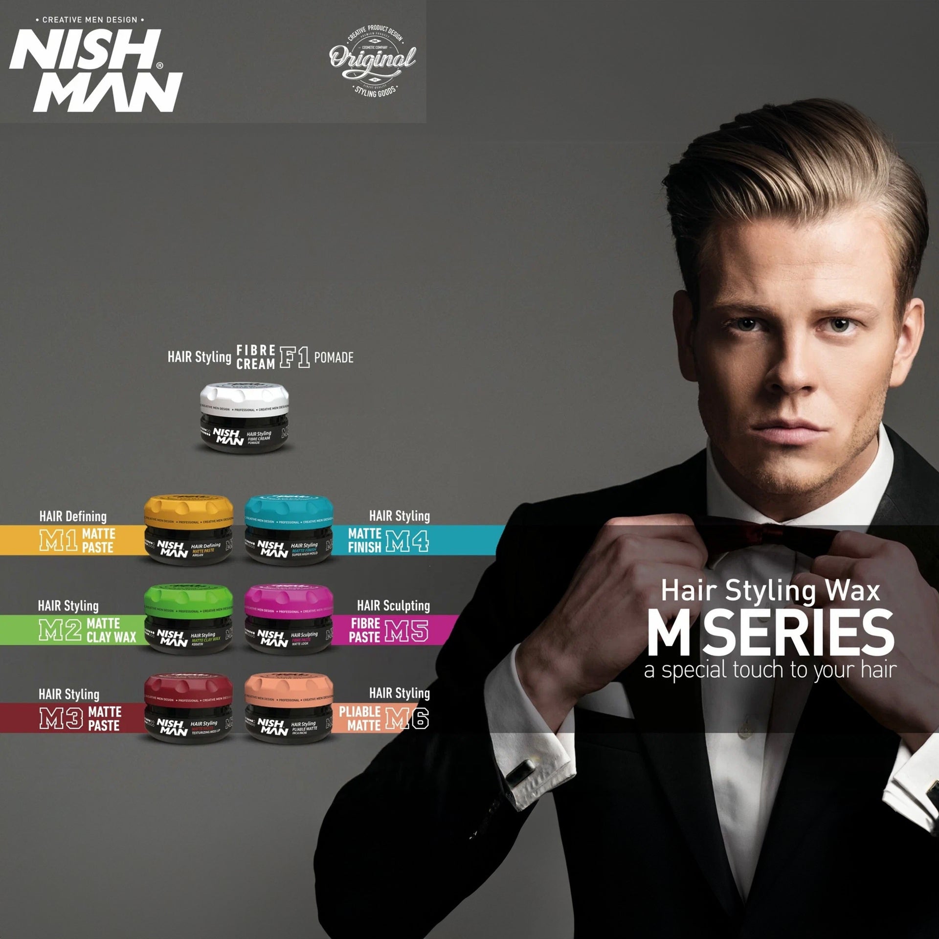 Nishman Hair Styling Wax M4 Matte Finish Super High Hold 100ml provides exceptional volume and strong hold, perfect for creating modern hairstyles that last all day. This ultra hard matte wax ensures your hair stays styled with a completely matte finish for a clean, natural look. Suitable for all hair types, it allows you to create different styles with ease, while maintaining the desired shape and volume throughout the day.