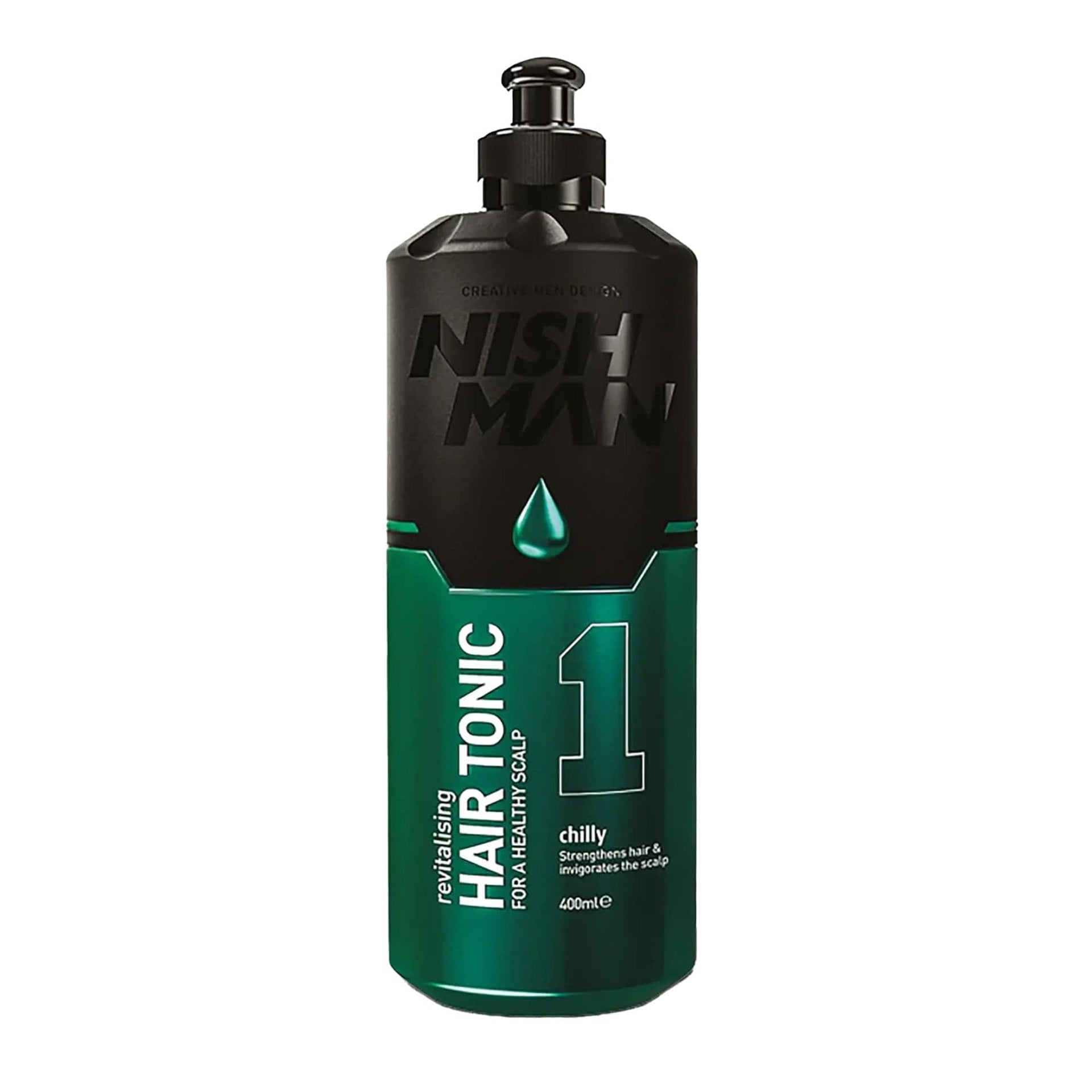 Nishman Hair Tonic No.1 Chilly is a revitalising hair tonic designed to refresh and invigorate your hair. Formulated with a unique blend of ingredients, it helps to slow down hair loss in men while preventing dandruff. When massaged into the scalp, this tonic effectively eliminates the negative effects of fatigue and stress by increasing blood circulation. The result is vibrant, healthy-looking hair with a noticeable increase in vitality.