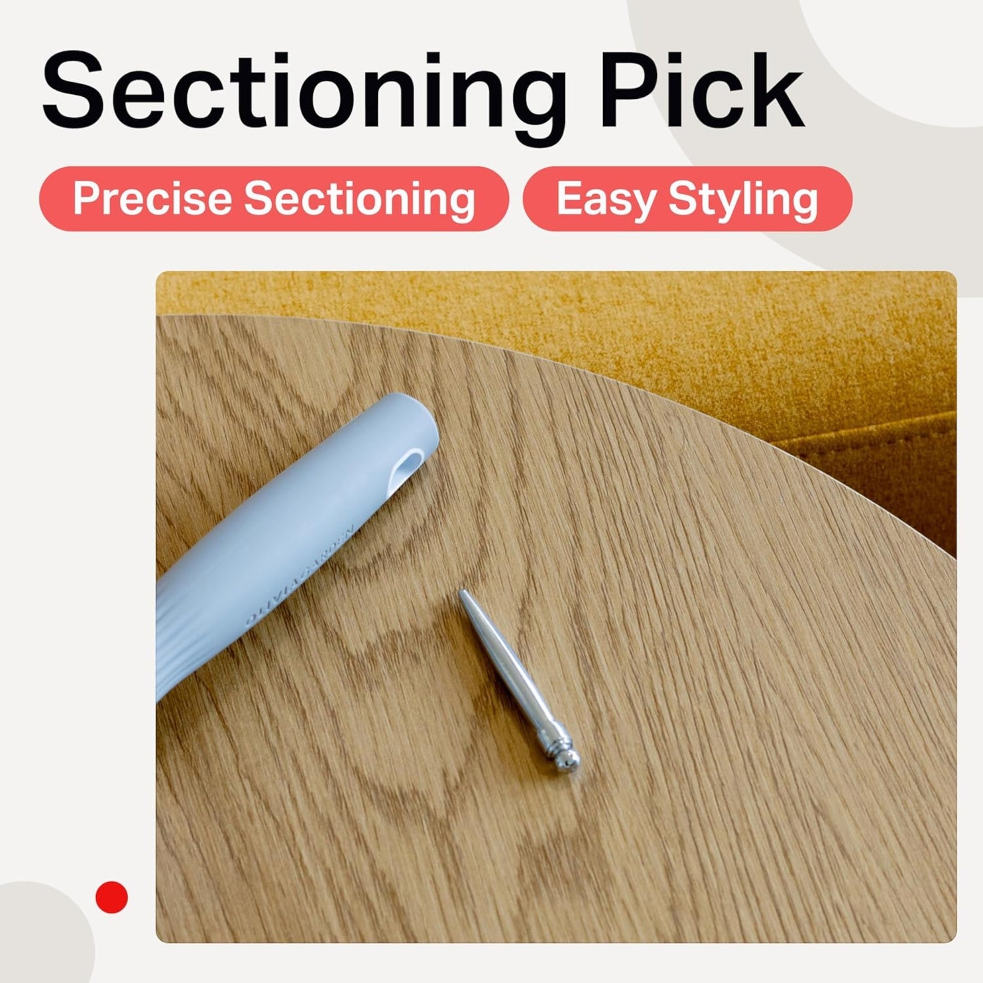 - Includes a retractable sectioning pick in the handle for easy and precise hair parting.