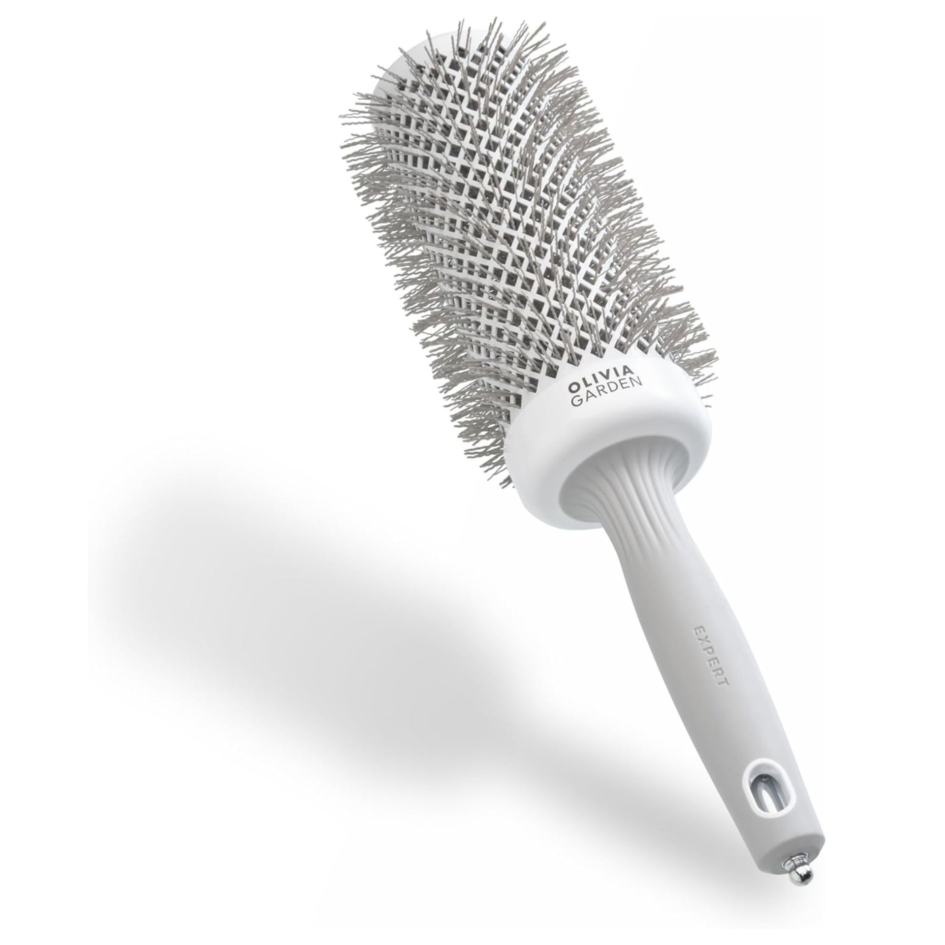 Dramatically cut down styling time for long or thick hair with the Olivia Garden - Expert Blowout Speed Wavy Bristles White & Grey 55mm brush. This professional tool boasts an innovative extra-long barrel, significantly longer than standard brushes, enabling you to work with much larger sections of hair at once. This design can speed up your blow-drying process by up to 25%, making it incredibly efficient for tackling substantial amounts of hair. The large, 55mm ceramic-coated barrel ensures fast, even heating, while tourmaline-ion technology smooths the cuticle, reduces frizz, and imparts a beautiful natural shine.
