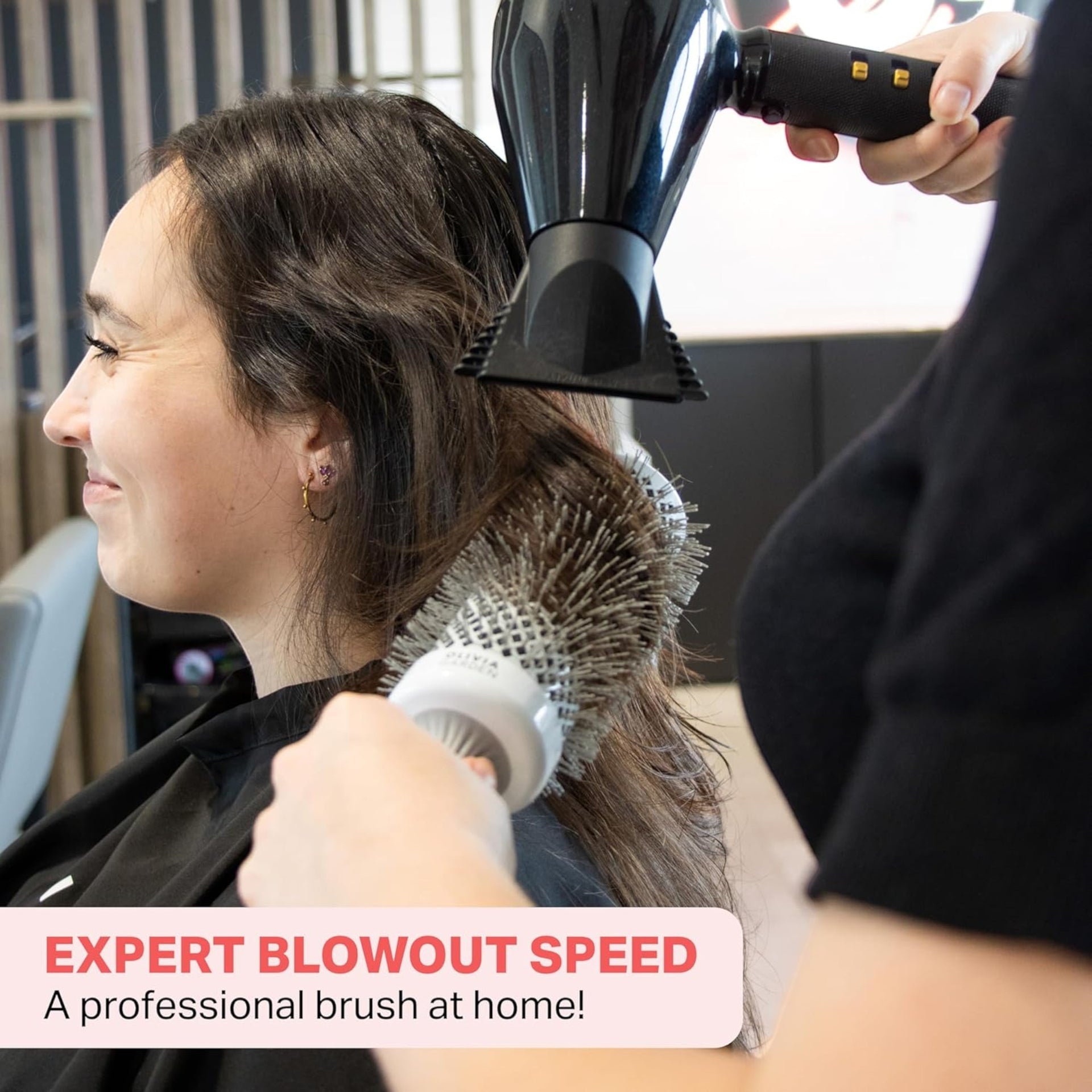 This 55mm brush is ideal for professional stylists and home users with long or thick hair looking to significantly reduce blow-drying time while achieving voluminous, smooth, and shiny styles.