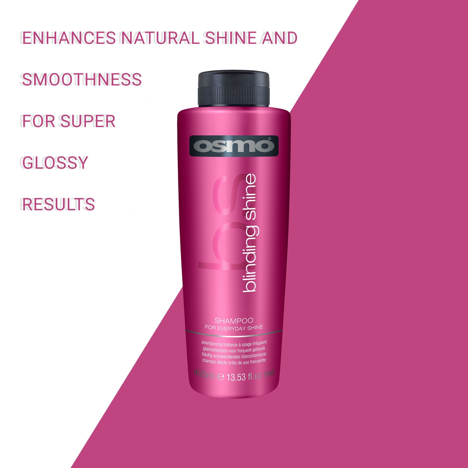 Osmo Blinding Shine Shampoo is the ultimate solution for achieving super smooth, glossy hair with a vibrant finish. Infused with the nourishing properties of Moringa Oil and Silk Protein, this gentle yet effective shampoo purifies and revitalises hair, leaving it soft, manageable, and full of bounce. It’s designed to enhance your hair’s natural shine and vibrancy, making it ideal for those looking to boost dull or tired locks. The lightweight formula ensures that hair is left feeling light and refreshed, without any greasy residue. Completely cruelty-free, this salon-quality shampoo is perfect for those who value both performance and ethical integrity in their haircare products. Available in 400ml and 1000ml sizes, it’s a versatile option for both home and professional salon use. Suitable for all hair types, this shampoo is your go-to for glossy, healthy-looking hair.