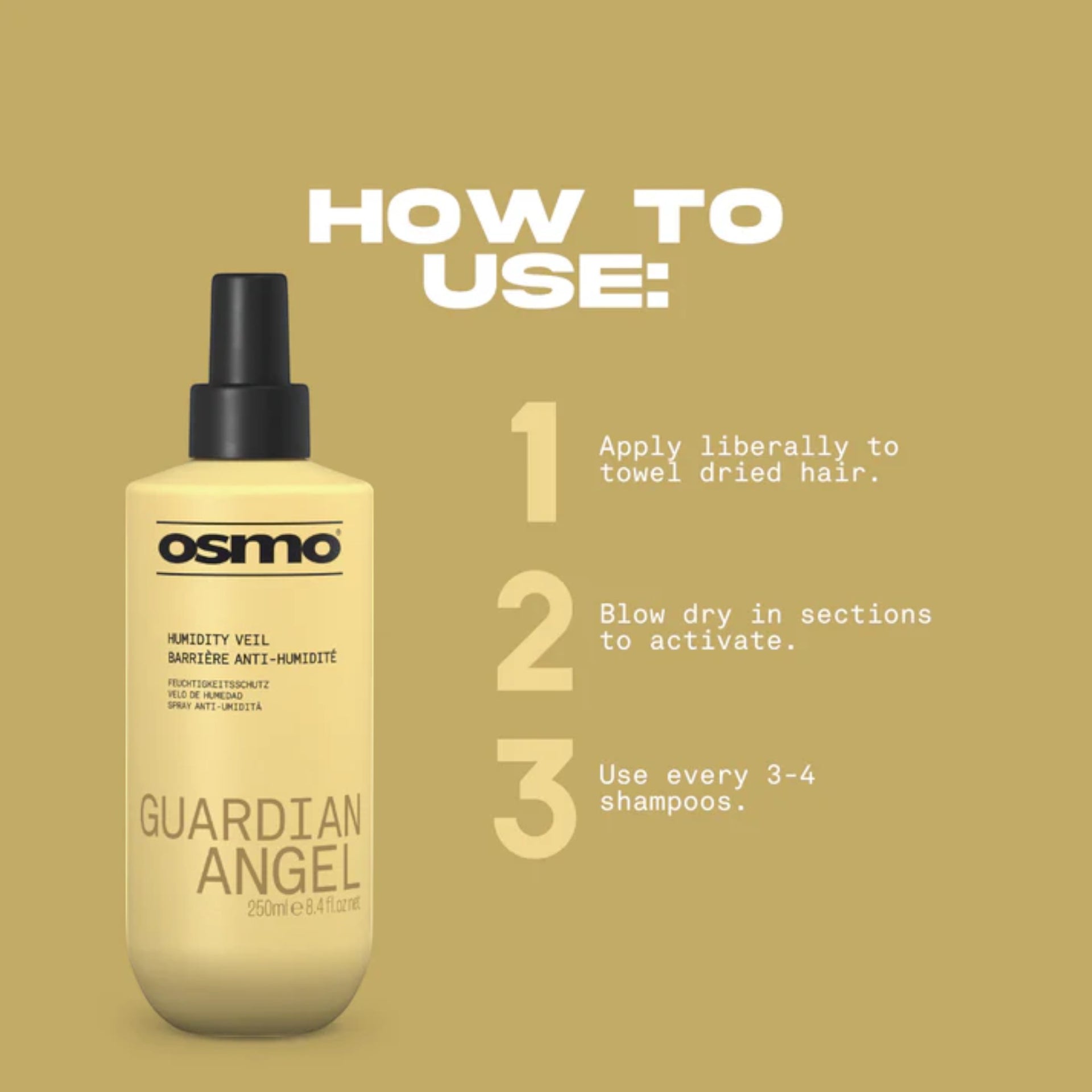 Apply the spray liberally to towel-dried hair from roots to ends. For the best results, blow-dry the hair in sections to activate the formula.