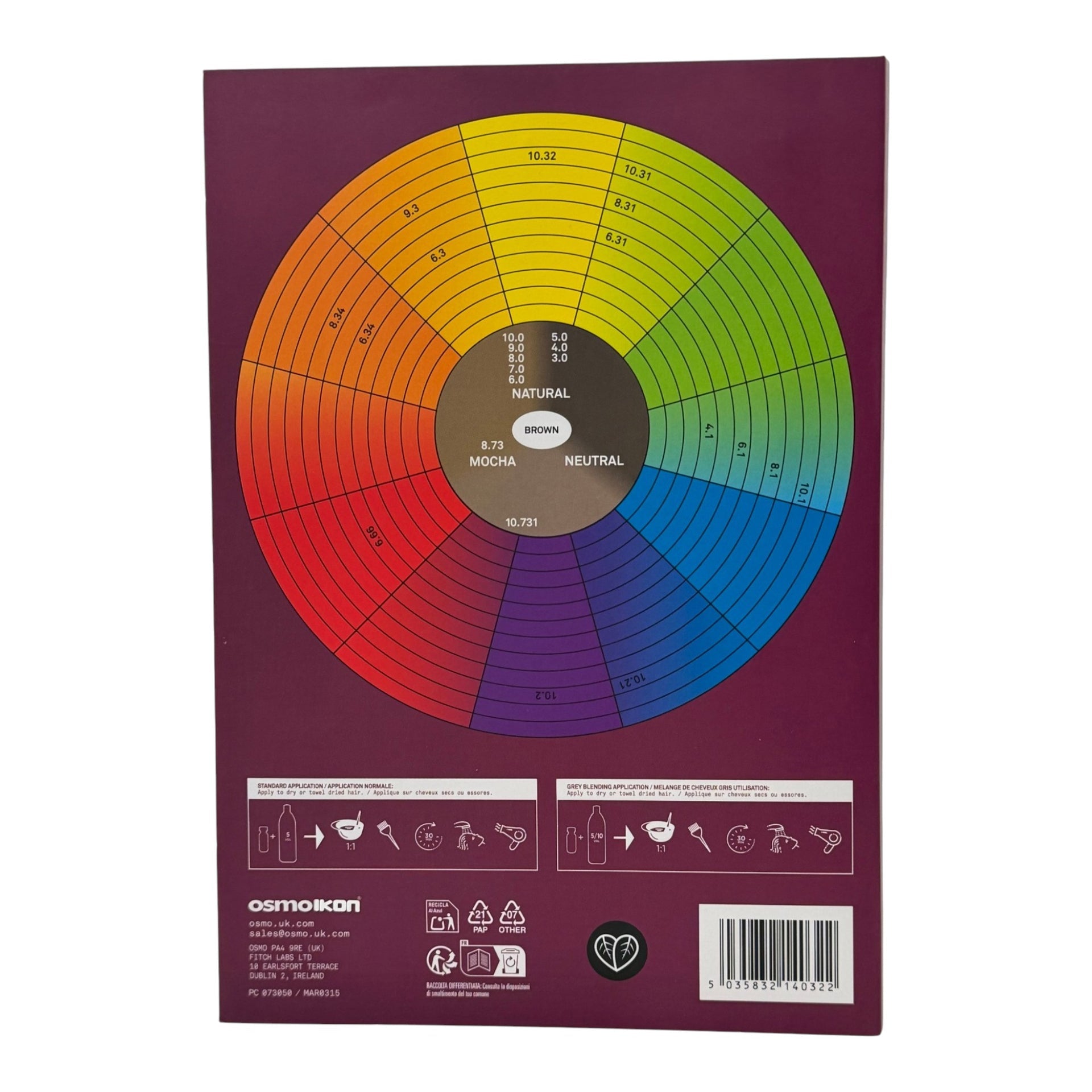 An invaluable asset for any professional colourist, the Osmo Ikon Glossy Gloss Shade Chart streamlines the colour selection process and helps to eliminate guesswork, ensuring clients leave the salon with exactly the result they envisioned. The inclusion of a comprehensive colour wheel on the back cover enables colourists to quickly identify complementary and contrasting tones, supporting creative colour formulation and tonal correction services. Mixing and application guidance is also conveniently printed on the reverse, providing quick access to both standard and grey blending mixing ratios without the need for additional reference materials. The booklet's compact and durable format makes it easy to store at a styling station or carry to client consultations, making it a practical and professional addition to any salon toolkit. Whether used for client-facing shade selection or as an internal formulation reference, the Osmo Ikon Glossy Gloss Shade Chart is a trusted tool that reflects the precision and quality that the Osmo Ikon brand is renowned for.