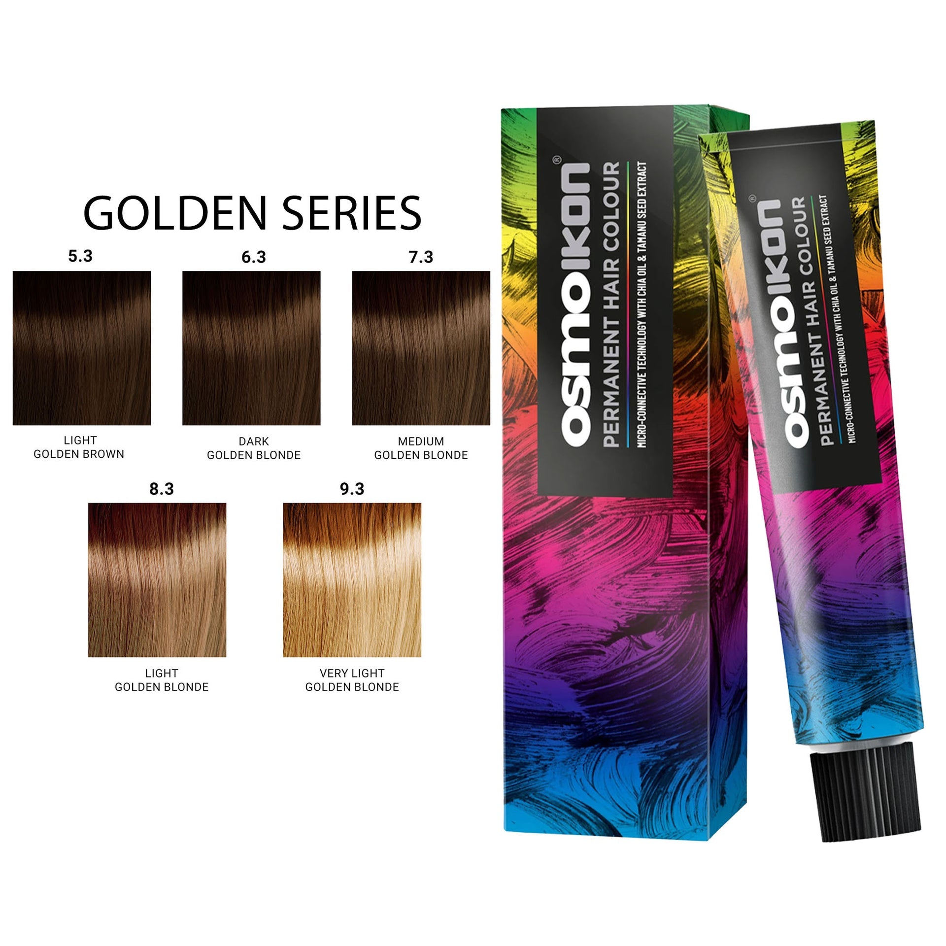 The Osmo Ikon Permanent Hair Colour 100ml from the Golden Series is expertly formulated to deliver rich, radiant golden tones with long-lasting, multidimensional shine. Its advanced Micro-Connective Technology ensures even, consistent coverage throughout the hair, allowing for professional-quality results. Infused with Chia Oil and Tamanu Seed Extract, this colour nourishes the hair while providing beautiful, vibrant results. The low ammonia content helps to minimise damage during the colouring process, making it a gentler option without compromising on performance. Completely cruelty-free and 100% vegan, the Osmo Ikon Permanent Hair Colour is perfect for those who prioritise ethical beauty in their choices. The warm golden tones create a luxurious, sun-kissed finish that is both sophisticated and natural.