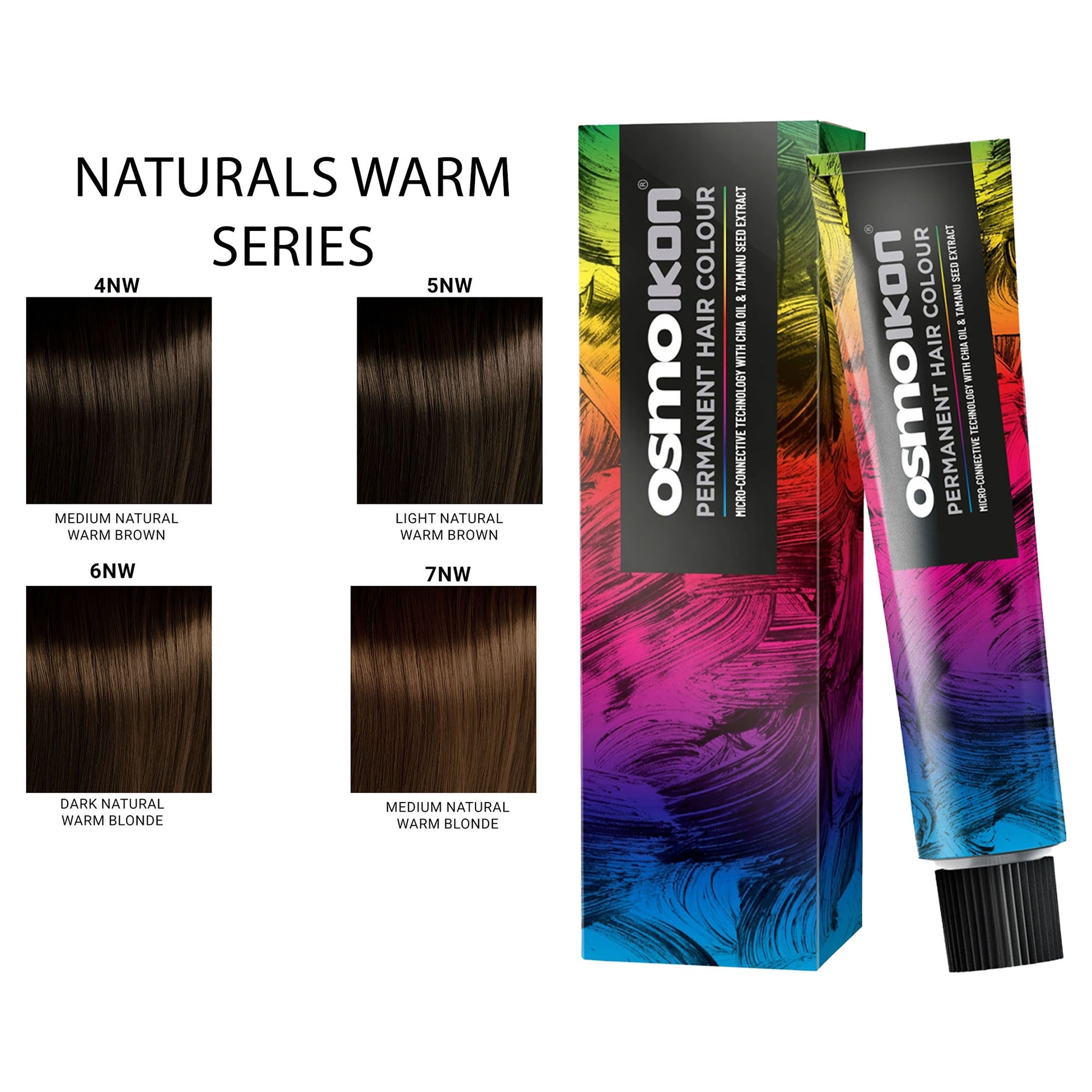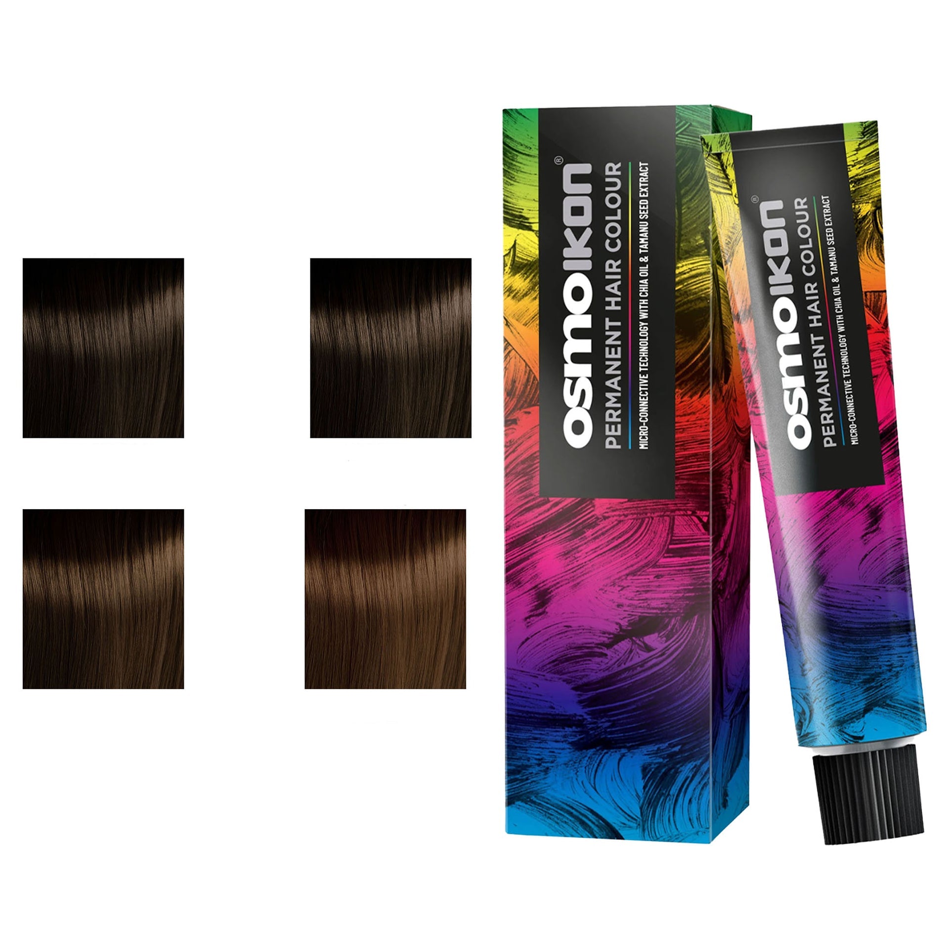 The Osmo Ikon Permanent Hair Colour 100ml from the Naturals Warm Series is expertly crafted to deliver vibrant, multi-dimensional warmth with professional precision. This permanent hair dye is enriched with Micro-Connective Technology to ensure consistent, even coverage from root to tip, offering a natural, radiant finish. Infused with Chia Oil and Tamanu Seed Extract, the formula nourishes your hair while providing long-lasting, rich colour. With low ammonia content, it provides a gentler colouring experience, making it ideal for maintaining hair health during the dyeing process. Completely cruelty-free and 100% vegan, the Osmo Ikon Permanent Hair Colour is perfect for those who value both ethical beauty choices and professional-quality results. The medium natural warm brown shade is designed to flatter a variety of skin tones, delivering depth and shine that lasts.