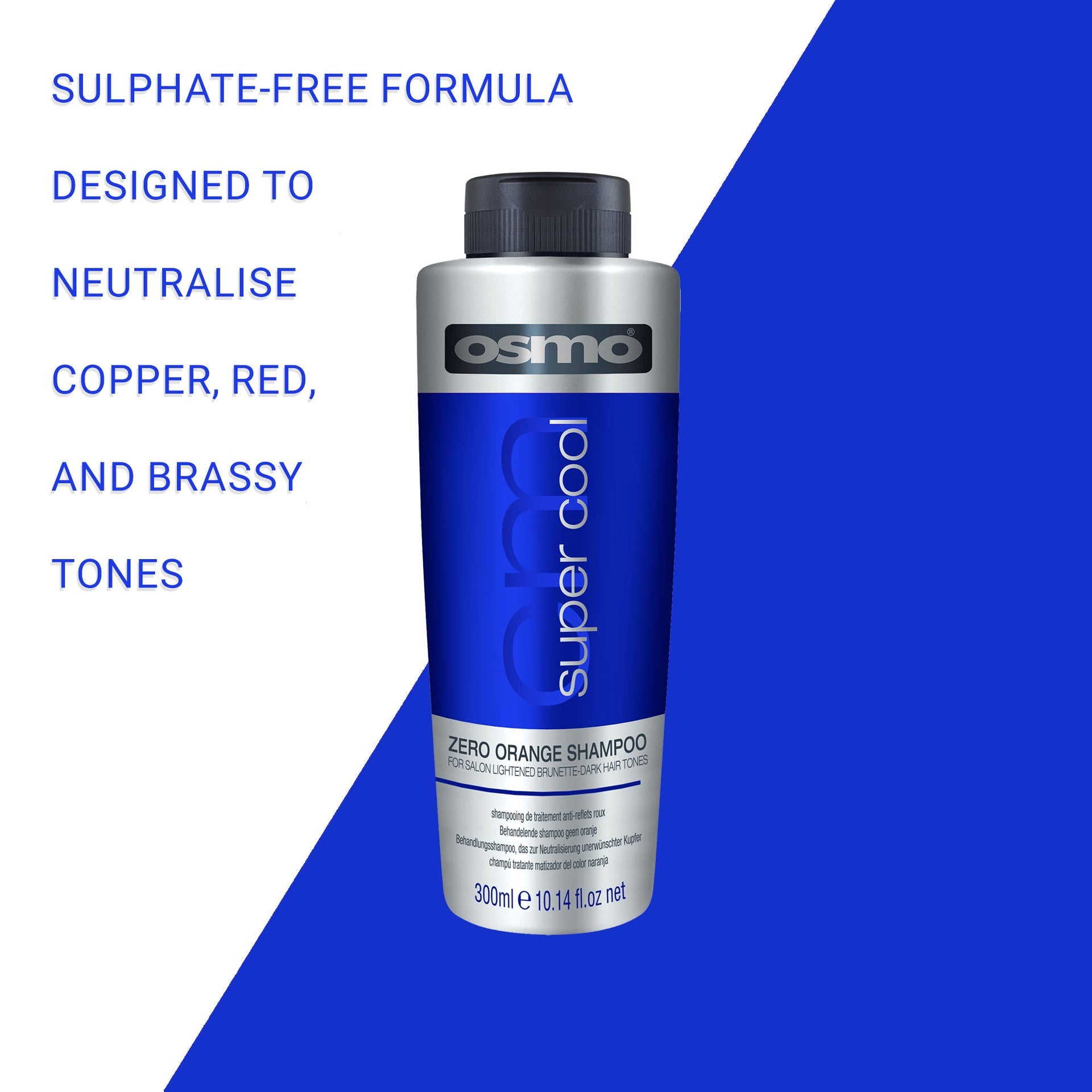 Osmo Super Cool Zero Orange Shampoo is an expertly formulated, sulphate-free treatment shampoo designed to eliminate unwanted copper, red, and brassy tones from salon-lightened brunette and dark hair. Infused with powerful blue pigments, this shampoo works to neutralise warm tones, restoring your hair’s natural radiance and leaving it looking fresh and vibrant. The gentle yet effective formula ensures that your hair remains nourished without compromising on colour vibrancy, making it ideal for maintaining your salon-fresh look. Whether you’re dealing with brassiness or red undertones, this shampoo is a must-have for those with darker hair seeking to cool and refine their colour. Completely cruelty-free, this professional-grade shampoo offers a salon-quality experience in the comfort of your own home. Available in both 300ml and 1000ml sizes, it caters to both personal and salon use, ensuring your hair looks its best at all times.