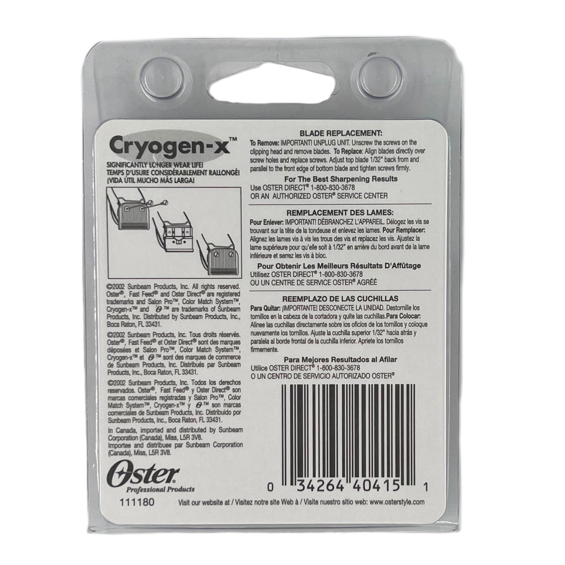 The Oster 76913-506 Cryogen-X Medium Blade is expertly designed to provide precise cutting from 0.25mm (1/100 inch) to 2.4mm (3/32 inch). Featuring a 17-tooth top blade, this medium blade ensures accurate and reliable performance for near to medium length cuts. Using Oster's innovative Cryogen-X technology, the blade is frozen at -150°C, significantly increasing its durability and maintaining sharpness for longer periods of time. This advanced process ensures consistent, high-quality results for all grooming needs.