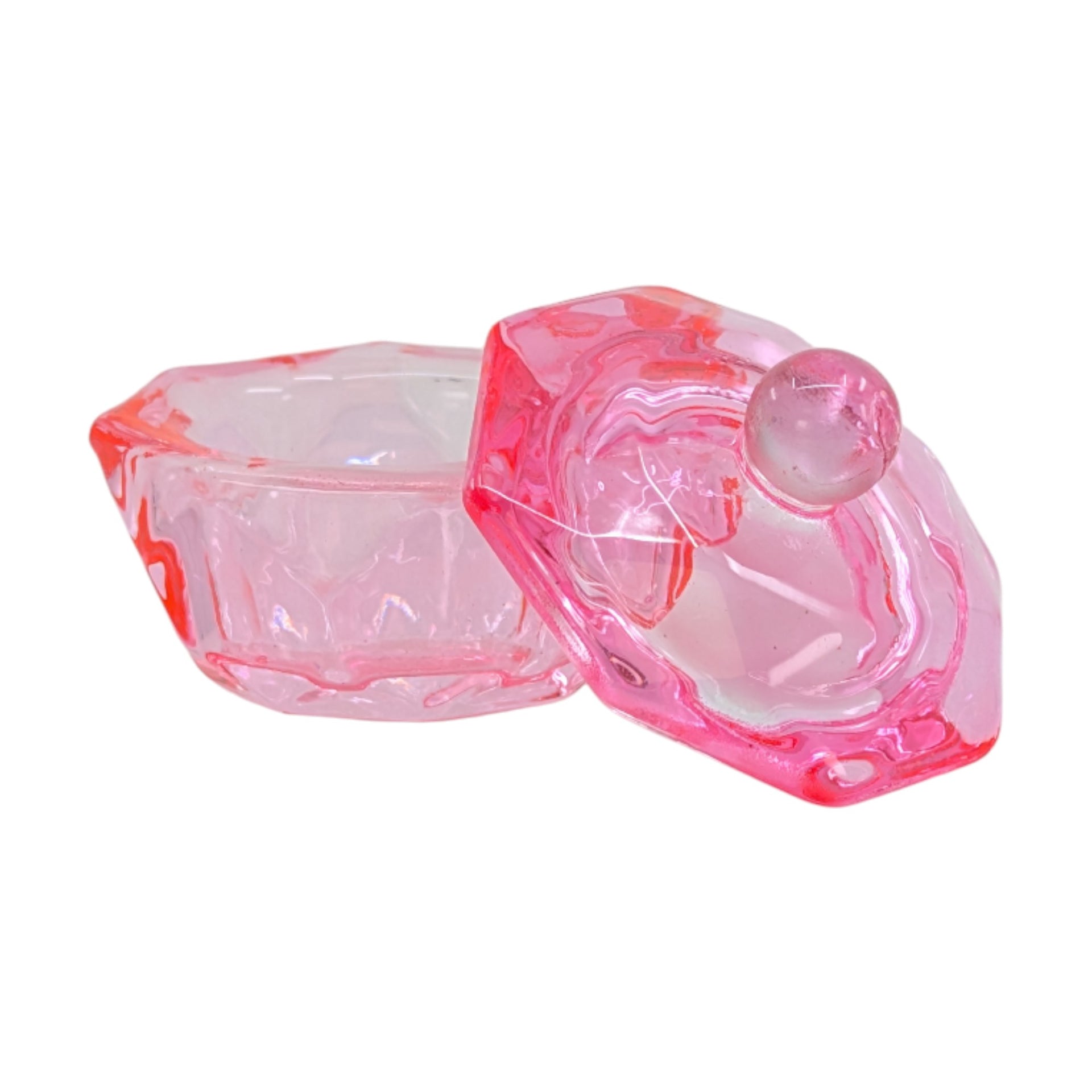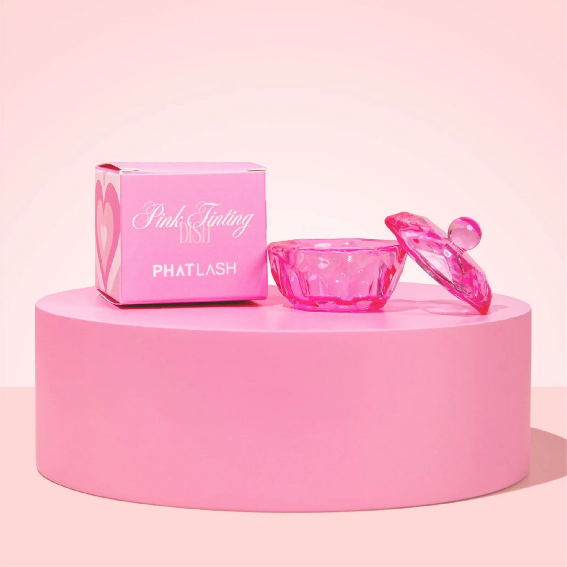Add a splash of colour and elegance to your salon workstation with the **Phat Lash - Pink Eyebrow & Eyelash Tint Dish**. This stunning accessory is not just a pretty face; it is a highly functional tool designed for the professional mixing of eyelash and eyebrow tints, henna, or lifting lotions. Crafted from high-quality pink glass, it features a matching lid which is perfect for keeping your mixtures fresh and preventing liquids from evaporating or becoming contaminated during treatments. *Elevate your setup with a tool that combines practicality with a cute, feminine aesthetic.* The faceted design catches the light beautifully, making it a delightful addition to any lash or nail trolley.