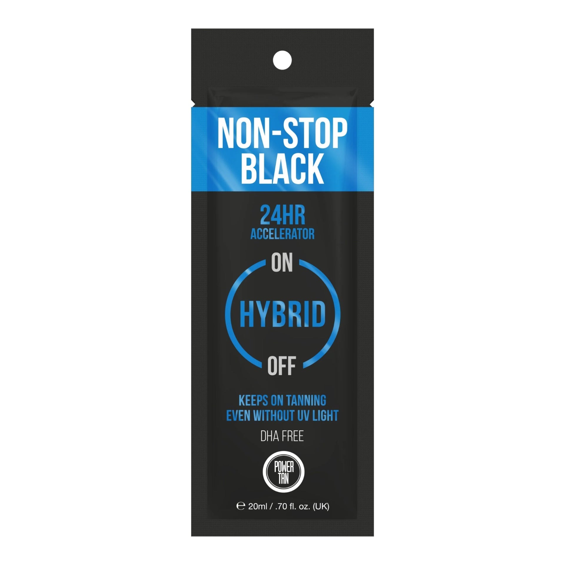 Experience the future of tanning with Pro Tan - Power Tan Non-Stop Black Hybrid Accelerator 20ml. This revolutionary formula utilizes a potent blend of active 24-hour tanning ingredients to deliver a rapid and stunningly dark result that keeps developing even after your session ends. At the heart of this innovation is Algotan P®, a unique complex of marine origin that mimics the effects of sunlight exposure. This advanced technology stimulates the skin's natural melanin production, ensuring a deep, long-lasting glow without the need for prolonged UV exposure.