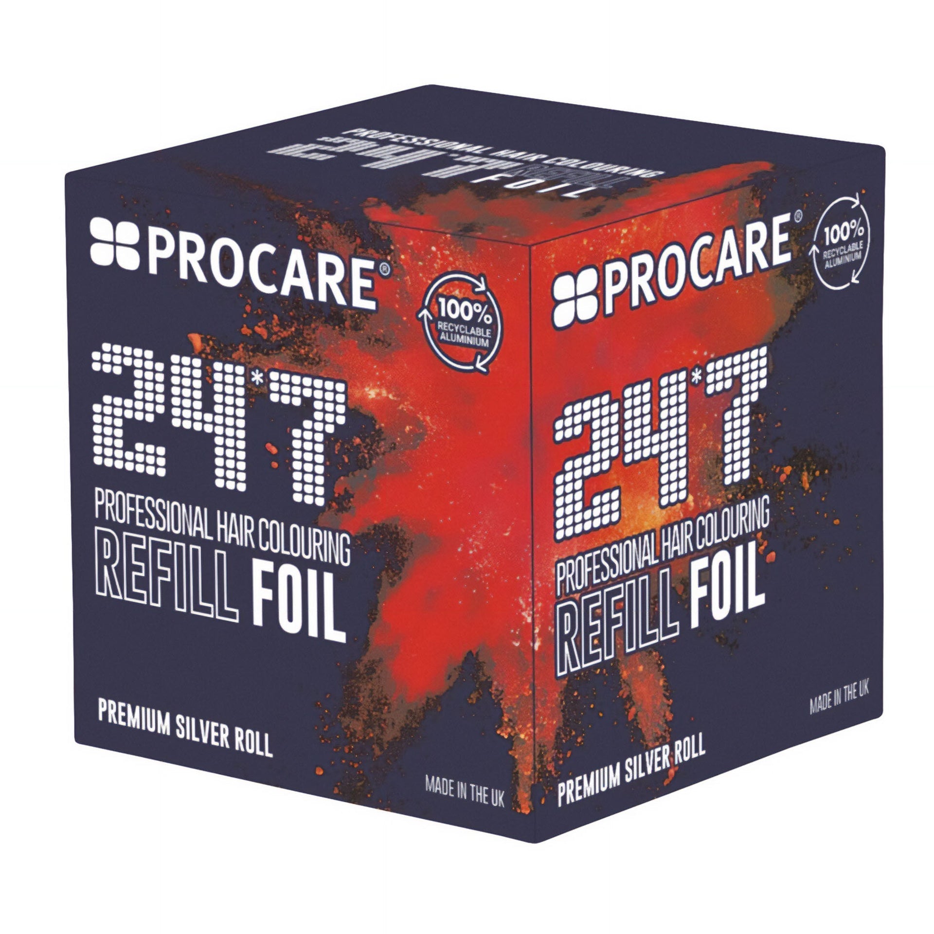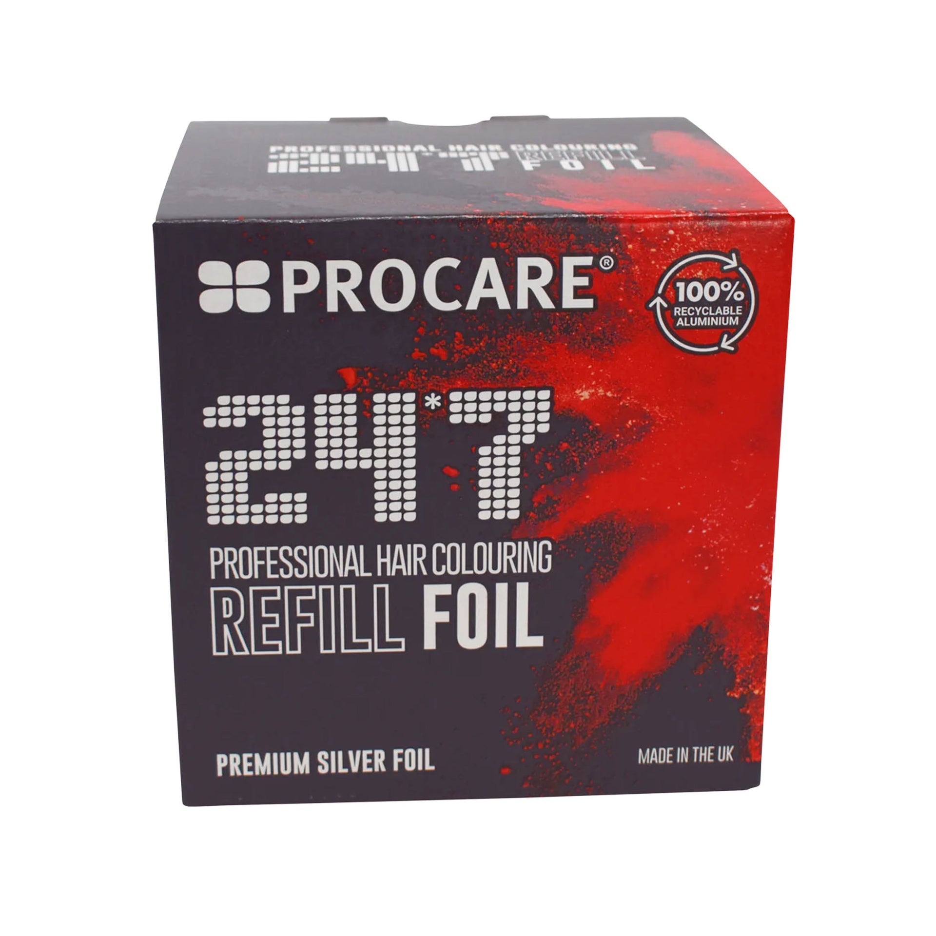 The Procare Premium Silver 24*7 Hair Foil Refill Roll is an essential tool for professional stylists, designed to offer precision and ease in hair colouring. Measuring 100mm x 450m, this premium foil is specifically crafted to fit the Procare 24*7 automatic foil dispenser, ensuring seamless compatibility and efficient reloading. Ideal for all colouring techniques, from highlights to balayage, these silver foils allow for customisable lengths, giving you complete control over the process. With a simple press of a button, the 24*7 dispenser cuts and folds the foil to your desired length, enhancing the speed and accuracy of your work.