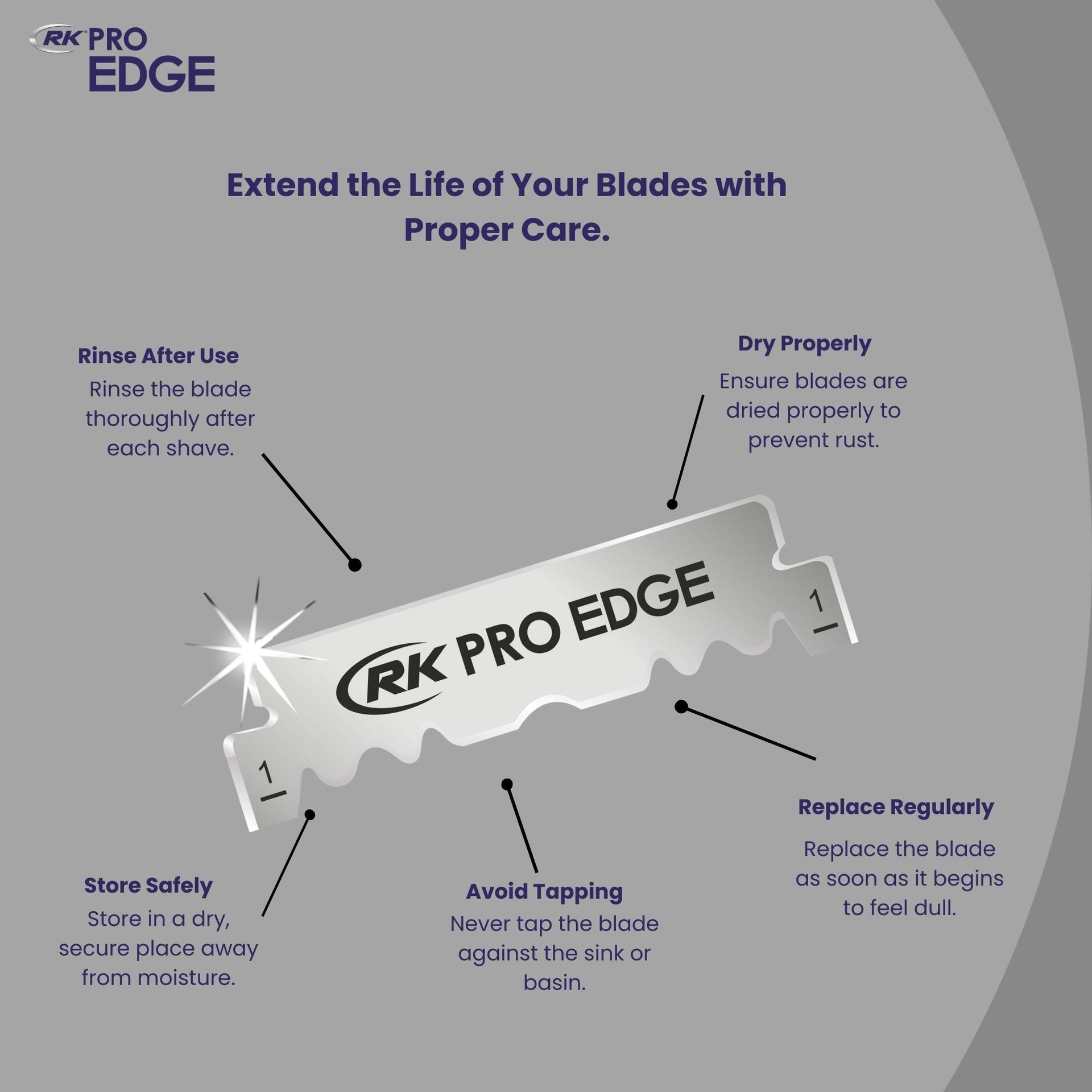 Transform your shaving routine with the RK Pro Edge - Platinum Single Edge Razor Blade (Pack of 100), designed for the discerning professional who demands perfection. These premium quality blades are engineered from high-grade stainless steel with a platinum coating for superior precision, durability, and an ultra-smooth shave. They are designed to deliver a clean and exceptionally close shave with minimal effort, which helps to reduce the risk of skin irritation and increases client satisfaction. This makes them an essential tool in any professional barber's arsenal.