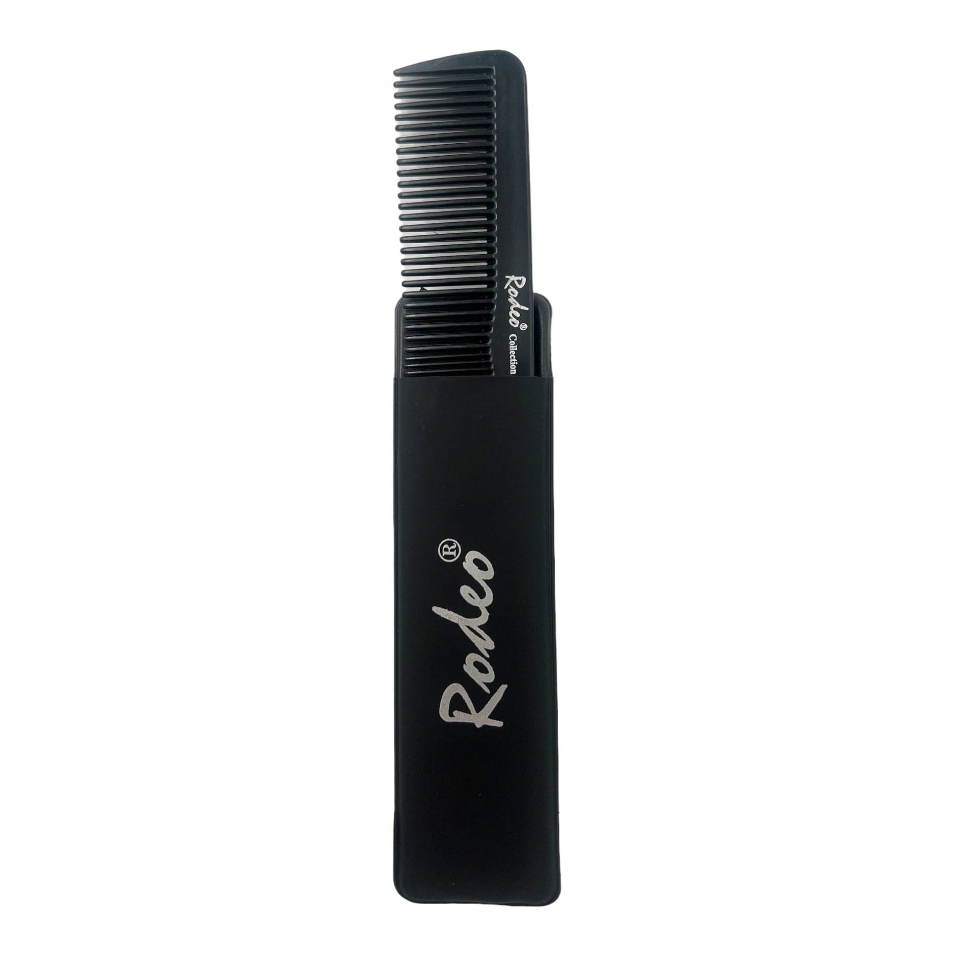 The Rodeo - Moustache & Beard Comb With Case is expertly crafted for the gentleman who takes his grooming seriously, offering precision and durability in a convenient, portable format. Meticulously crafted from high-quality anti-static carbon, this comb is designed to resist heat and breakage, ensuring long-lasting performance. Its fine-tooth structure is ideal for the detailed grooming of both moustaches and beards, gliding through hair for smooth, frizz-free results. The anti-static properties help prevent hair electrification, ensuring a neat and polished appearance at all times.
