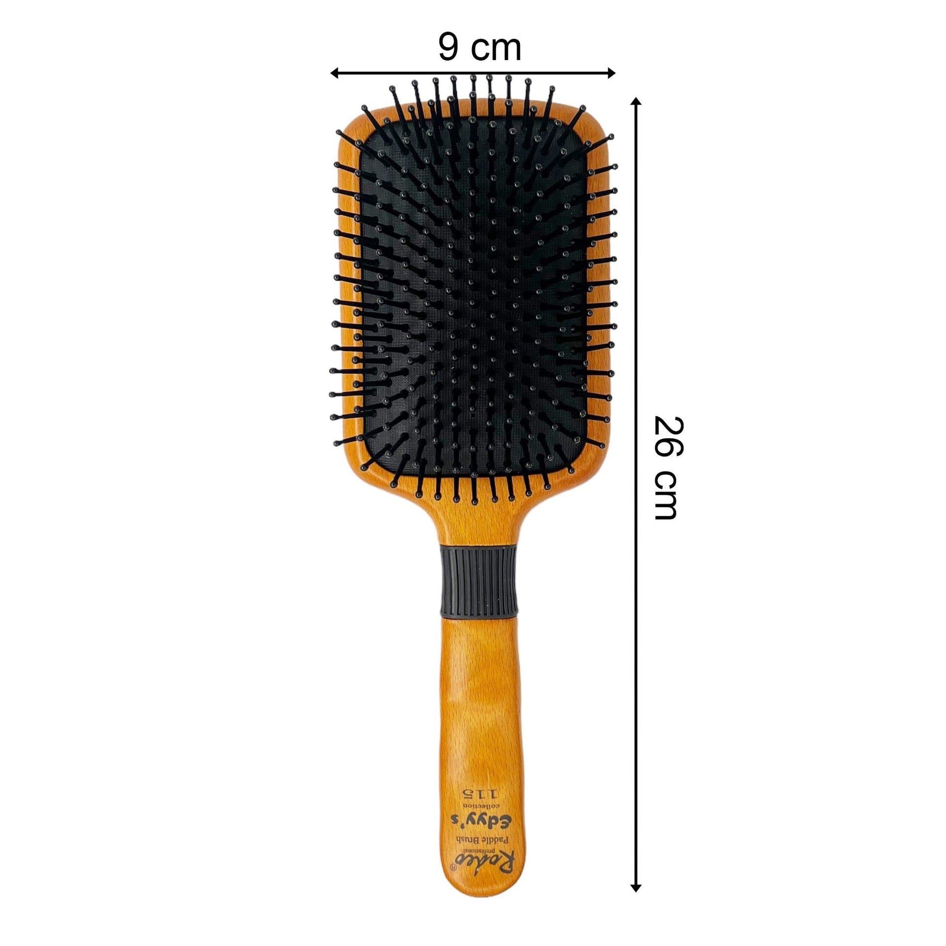 The Rodeo - Paddle Brush No.115 Edyy's Collection 26cm is a professional-grade hairbrush designed to deliver a flawless finish for both salon stylists and home users. Expertly crafted for performance and comfort, it features an ergonomic wooden handle with a rubberised grip for superior, non-slip control during styling. The large, air-cushioned paddle is populated with gentle, ball-ended pins which glide through the hair effortlessly. This ensures a comfortable and effective detangling experience that is kind to both the hair and the scalp.
