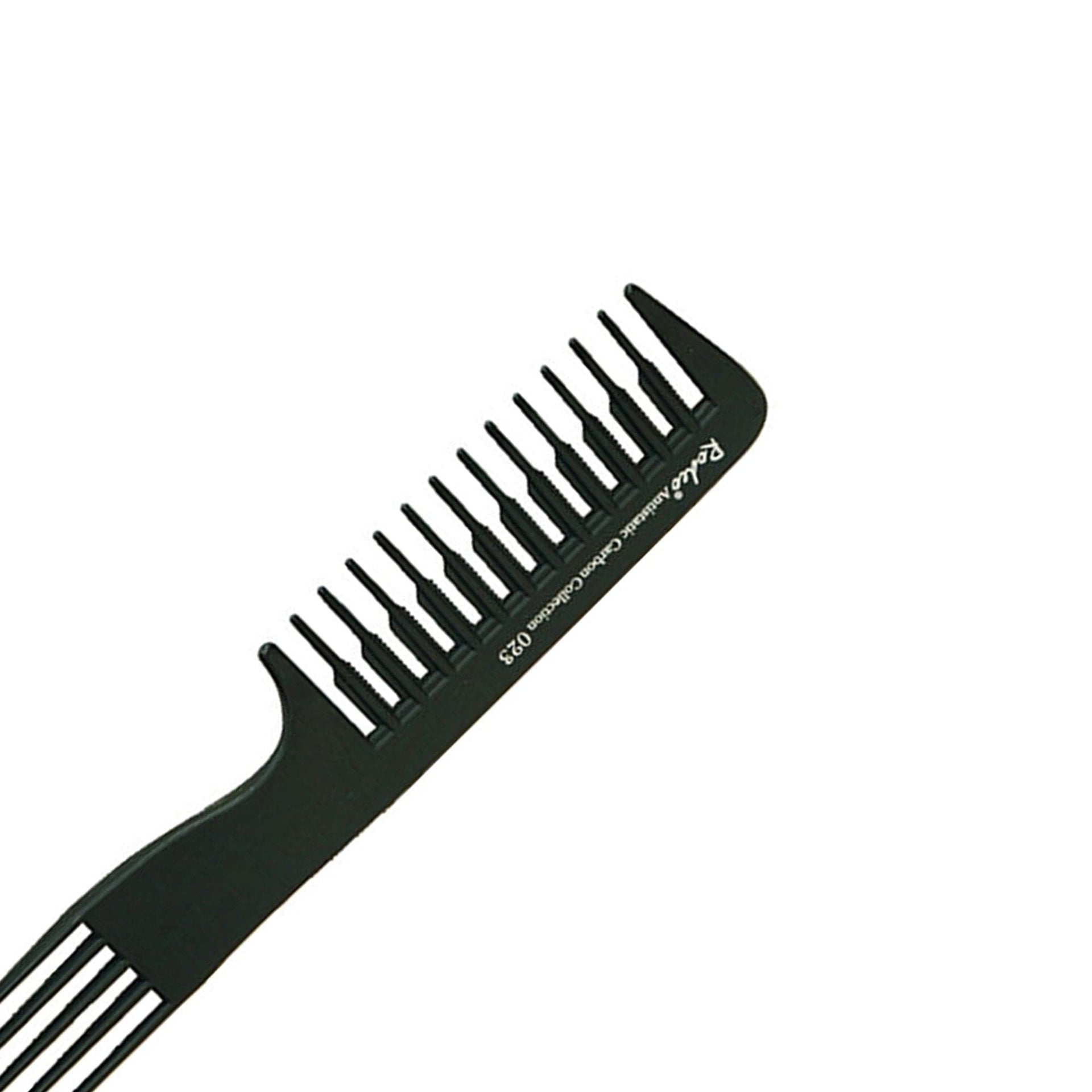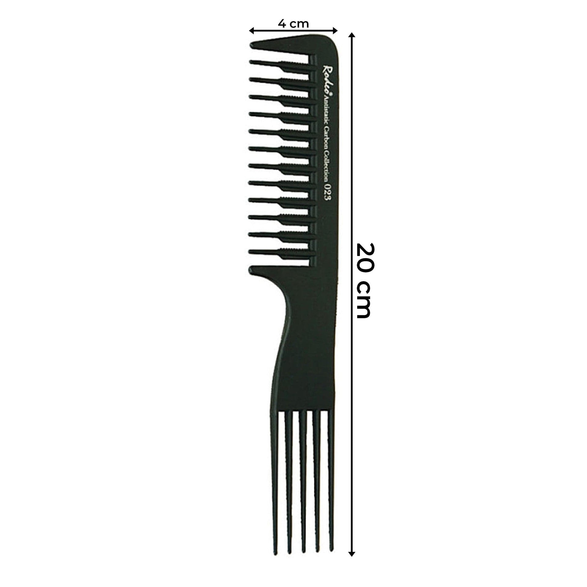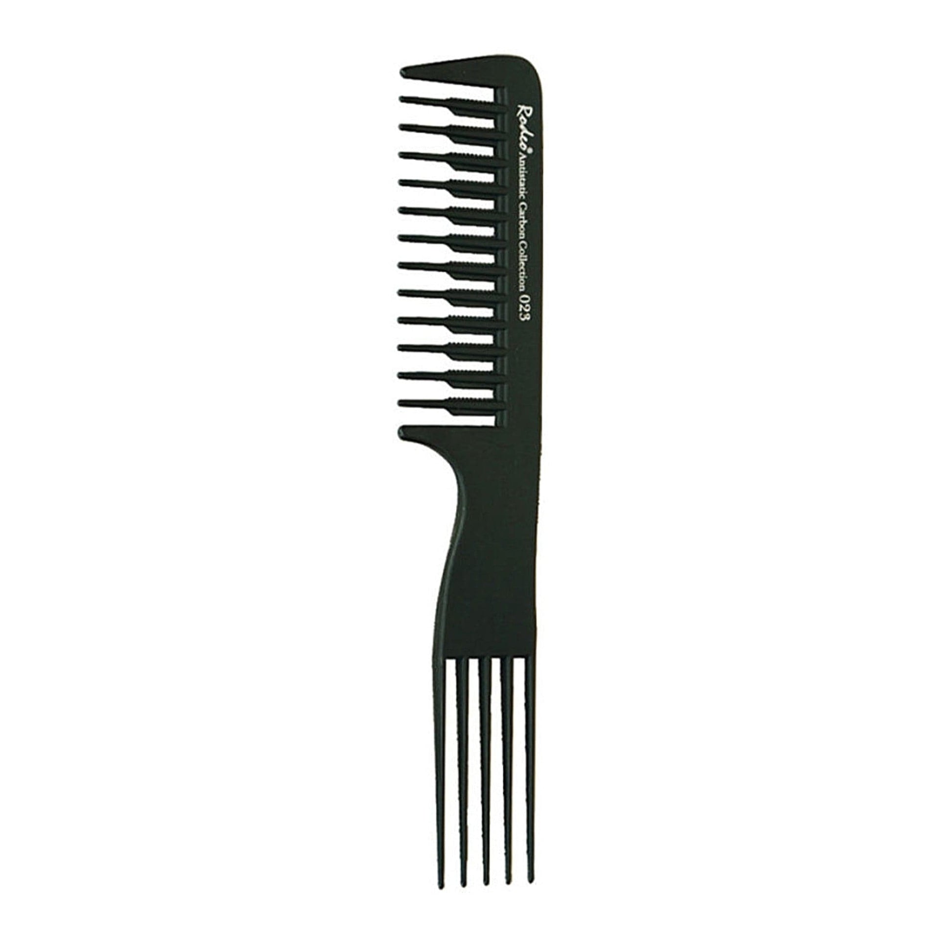 The Rodeo - Styling Comb 2in1 Detangling Wide Tooth & Pin Lift No.23 20cm is an expertly crafted and uniquely versatile tool for the modern stylist and barber. Meticulously made from a high-quality anti-static carbon material, this comb is designed to resist heat, chemicals, and breakage, ensuring long-lasting durability in a professional environment. Its anti-static properties are a key feature, helping to prevent hair electrification for smooth, frizz-free results. The flexible yet strong structure offers superior performance for all your styling needs.