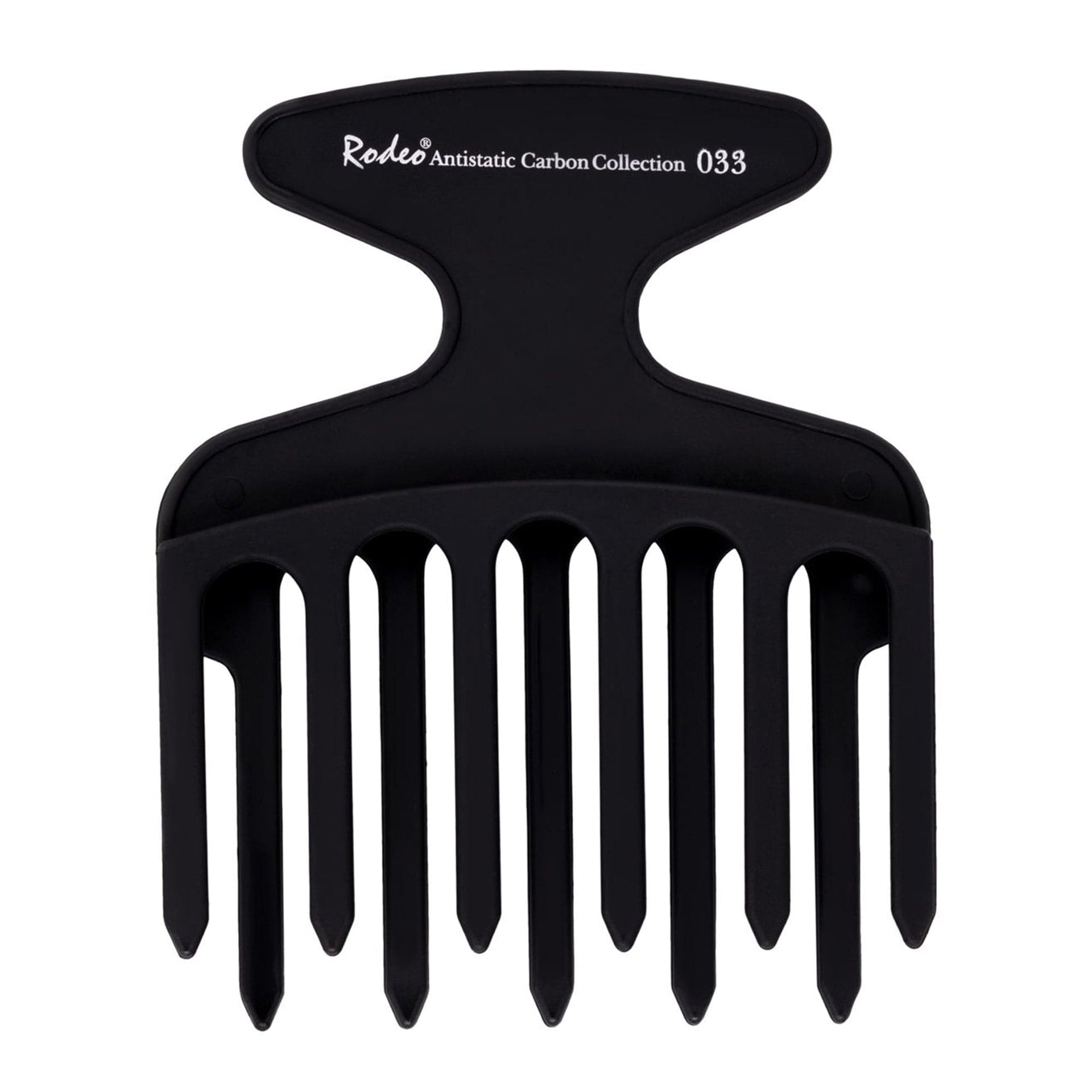 The Rodeo - Styling Comb Wide Tooth collection is meticulously crafted from high-quality anti-static carbon, designed to deliver professional results for all hair types. This premium material ensures each comb is both heat-resistant and exceptionally durable, making them reliable tools for use in a busy salon environment. The wide-tooth design is perfect for gently detangling, lifting, and grooming without causing breakage or snagging. The comb's inherent anti-static properties are essential for professional styling, helping to prevent frizz and flyaways for a smooth, polished look.