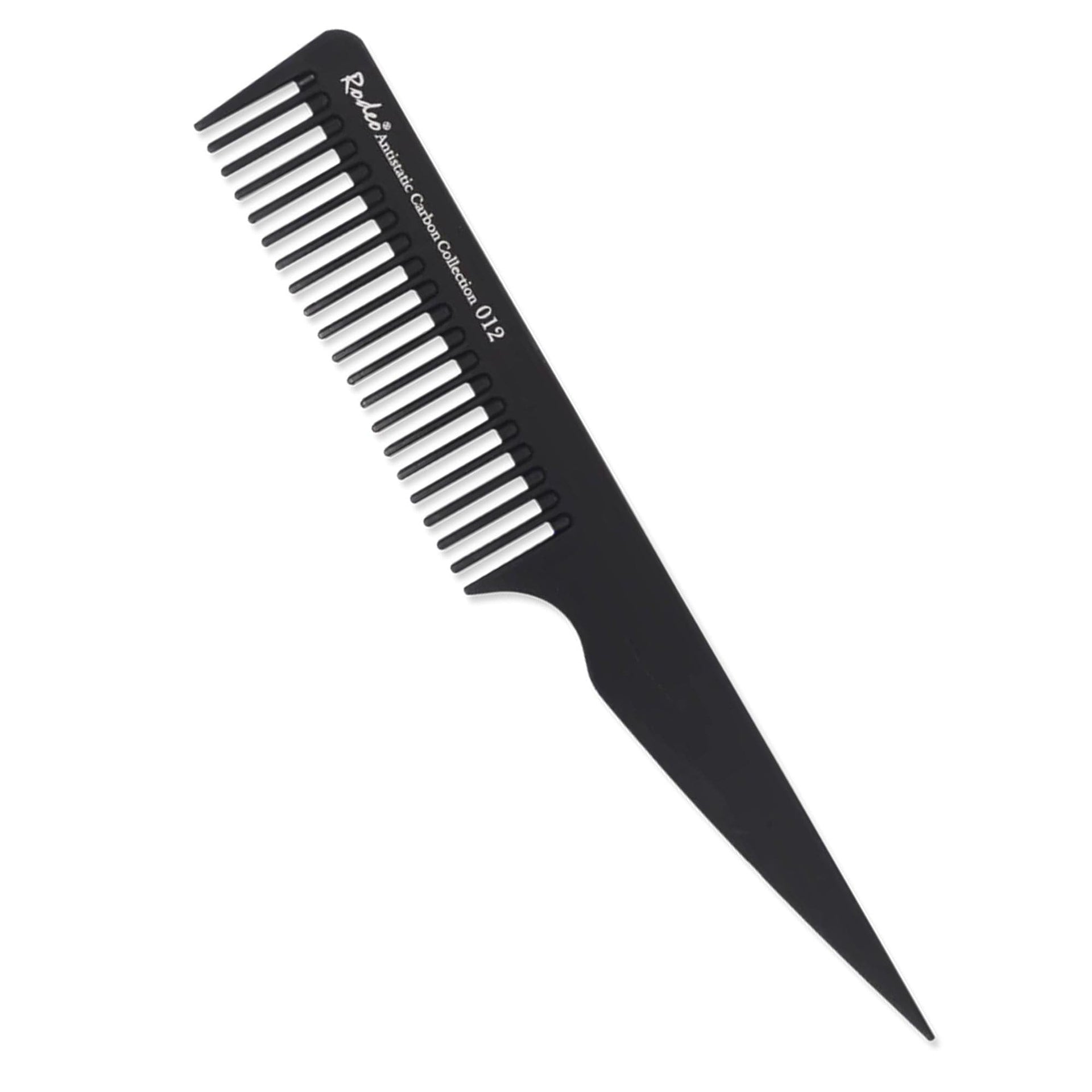The Rodeo - Tail Comb Wide Tooth No.012 22cm is a versatile professional comb, meticulously crafted from high-quality anti-static carbon to resist both heat and breakage. Its durable yet flexible construction ensures it can withstand the daily demands of a busy salon environment, including frequent use with heat styling appliances. The comb's wide-tooth design makes it ideal for gently detangling all hair types, from fine to thick and curly, without causing snagging or damage. Its anti-static properties are essential for professional work, helping to prevent frizz and flyaways for smooth, polished results.