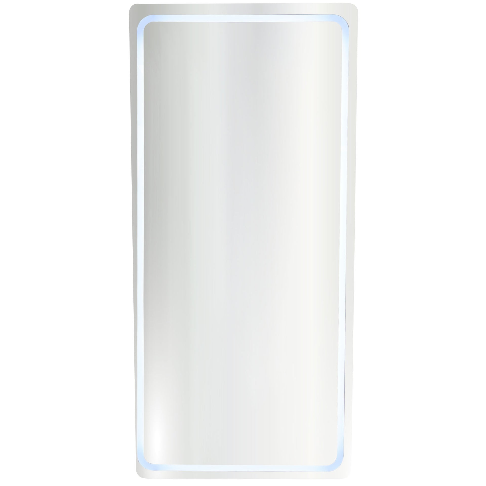 Mount securely to the wall at the desired height. Tap the touch sensor icon on the mirror face to activate or deactivate the LED lighting.