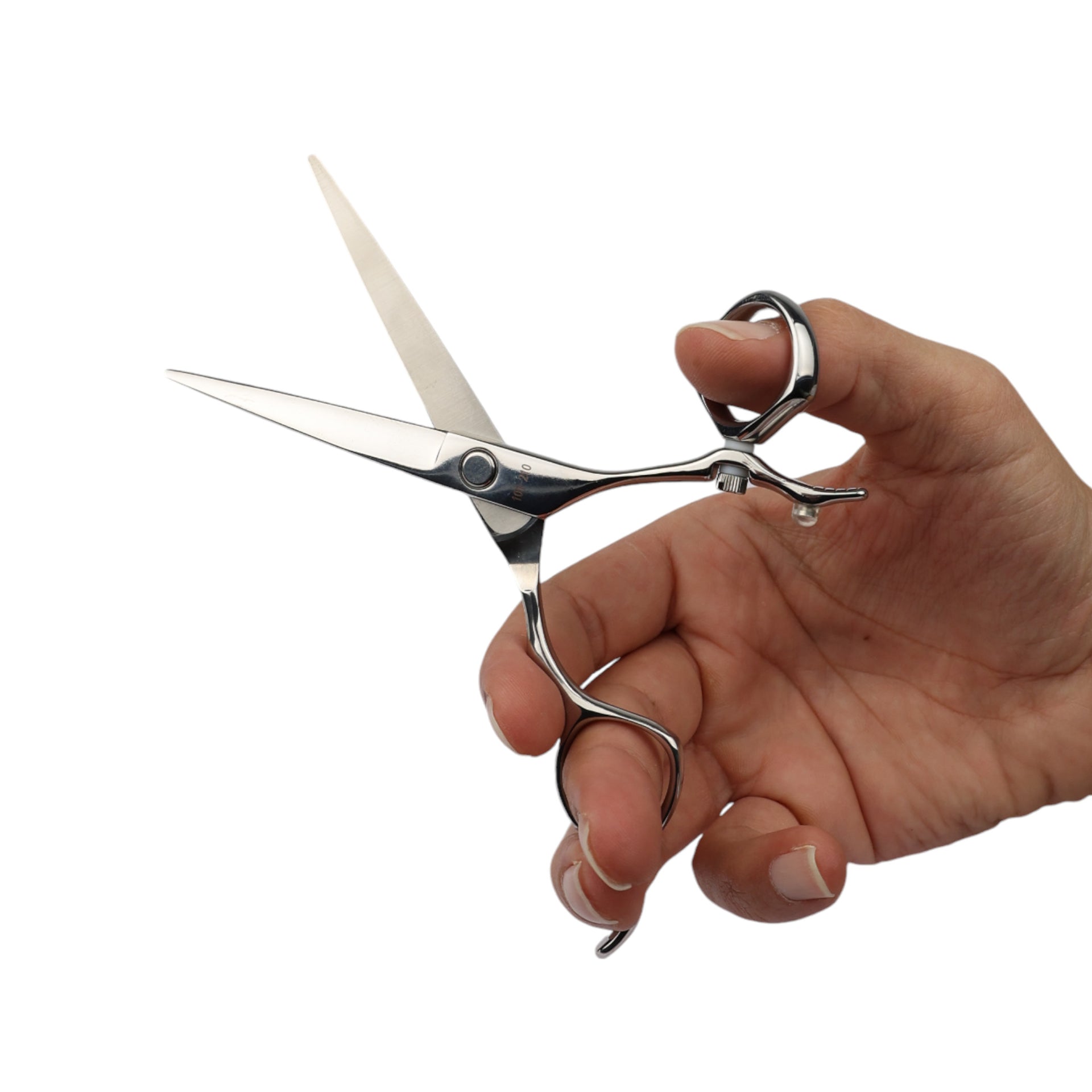 Use the Samurai Swivel Scissors for precise cutting on wet or dry hair. Adjust the swivel thumb ring for personalised comfort.