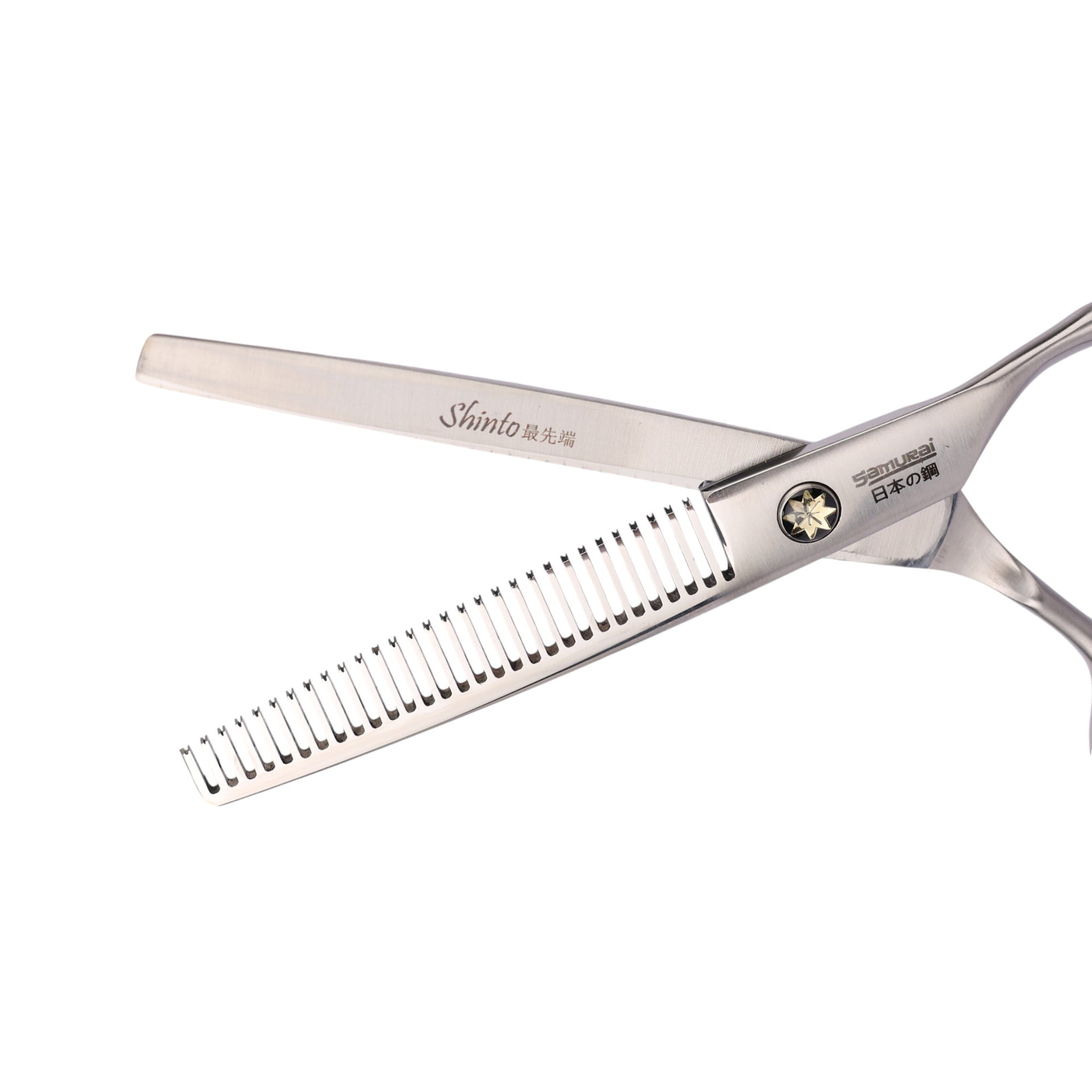 Use the Samurai Shinto Thinning Scissors to remove bulk and create a natural, flowing texture. Clean and oil regularly to maintain optimal performance.
