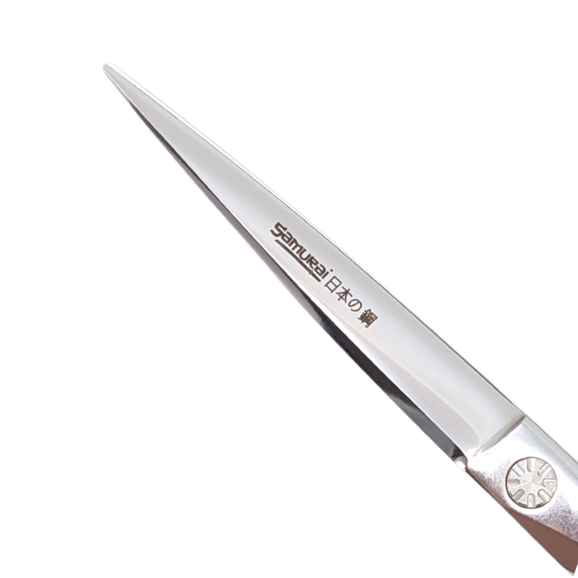 The Samurai - 7" Premium Japanese Steel Barber Scissors (101-525) are an exceptional tool for the discerning barber, offering a perfect fusion of traditional craftsmanship and modern, ergonomic design. These scissors are handmade from the finest 440c Japanese steel, a material renowned for its incredible hardness, durability, and its ability to hold a razor-sharp edge for longer. The long, 7-inch blades are perfectly suited for classic barbering techniques, providing the reach and stability required for flawless scissor-over-comb work and cutting larger sections with ease.