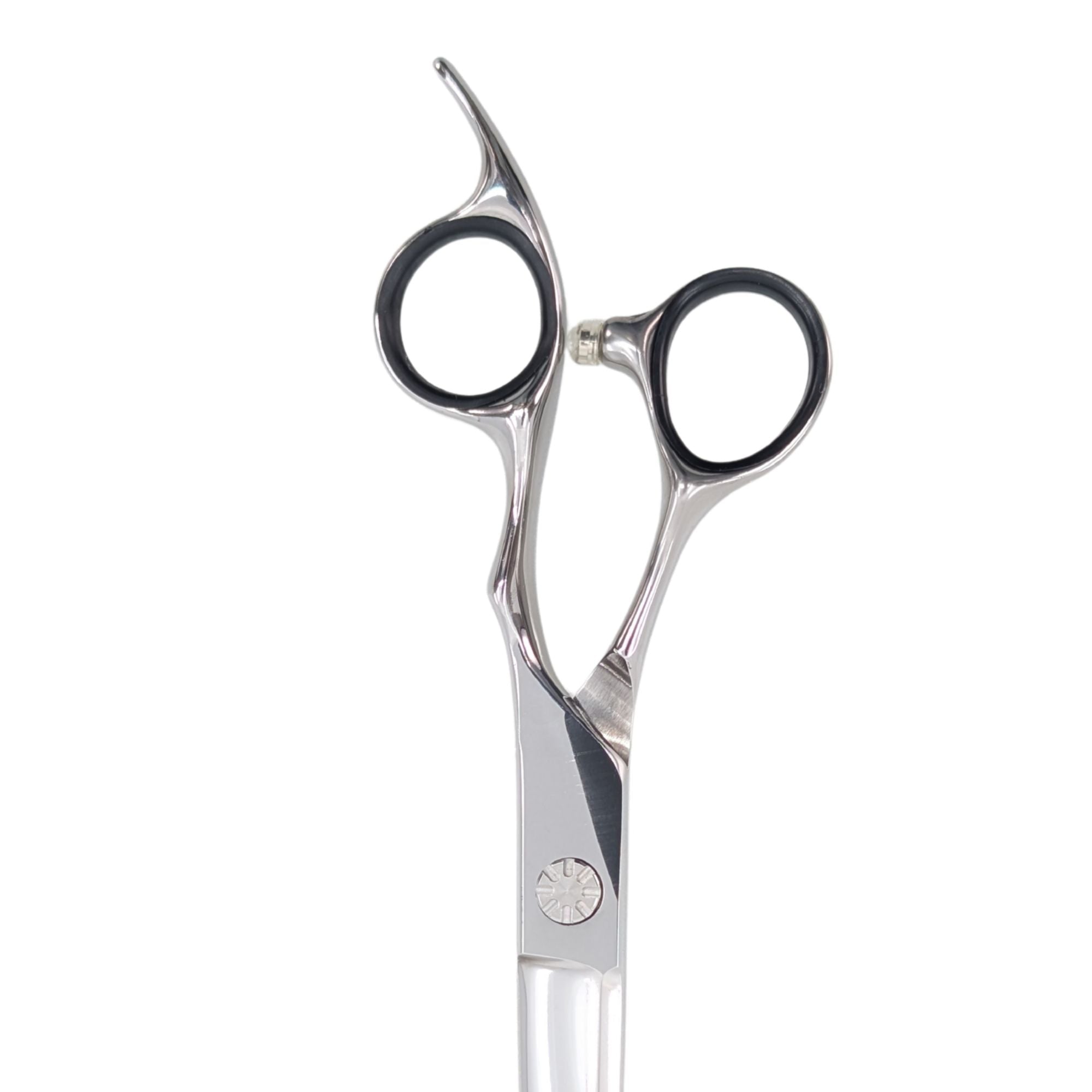 These premium scissors feature expertly honed convex edge blades, which are the gold standard for the cleanest, most precise cutting and for performing advanced slicing techniques on both wet and dry hair. The scissors are ergonomically designed and perfectly balanced to help reduce hand and wrist fatigue during long days in the barbershop. With an easily adjustable tension screw and a removable finger rest, you can customise the feel of the scissors for ultimate comfort and control. They are a true investment in your craft, designed for a lifetime of precision cutting.