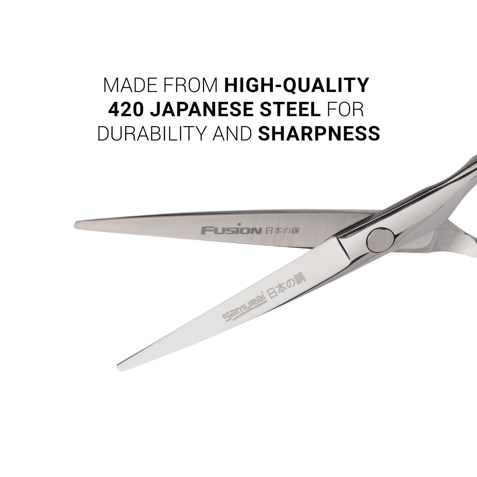 Use the Samurai Fusion Straight Scissors for precise, straight cuts on all hair types. Clean and oil regularly to maintain sharpness.