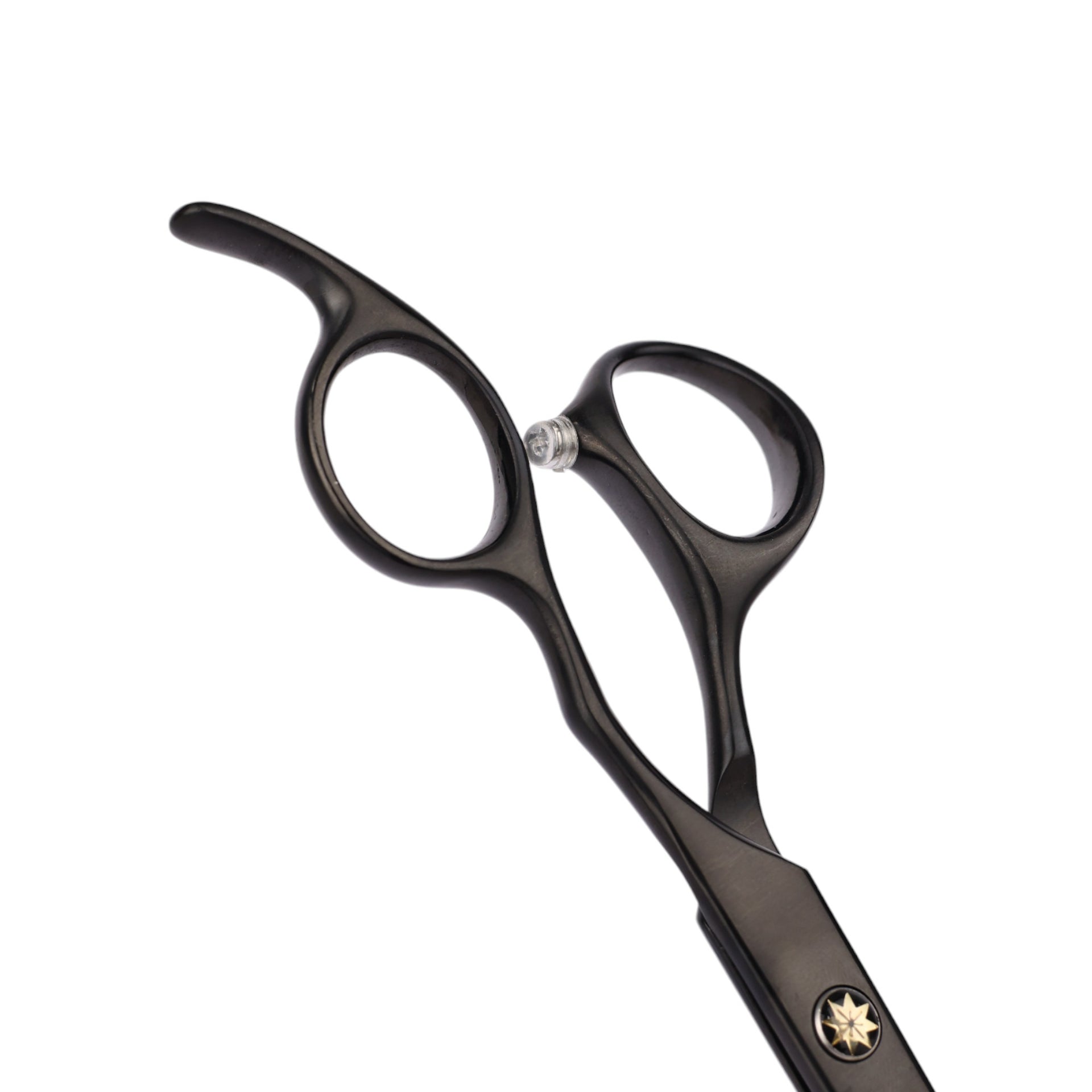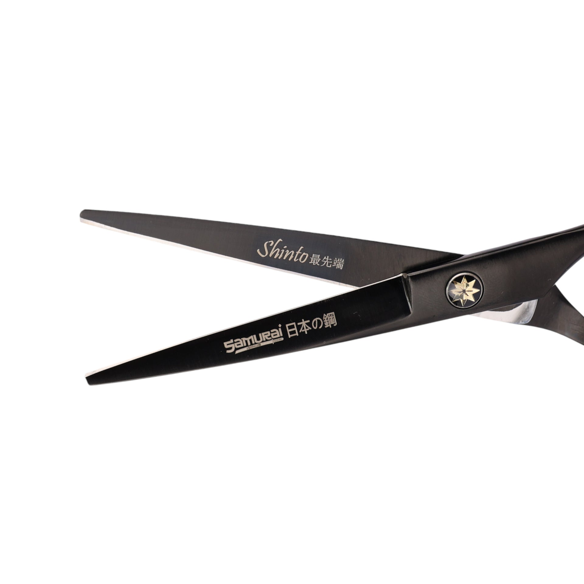 The Samurai Shinto Black Scissors are the perfect blend of style, precision, and durability, designed for professional hairdressers who value high-performance tools. Crafted from premium Japanese steel, these scissors feature convex edge blades that provide smooth and effortless cuts on all hair types, whether wet or dry. Available in both 6-inch (16cm) and 6.5-inch (17cm) sizes, these scissors are versatile enough to handle intricate detailing as well as more substantial cuts. The sleek black design adds a touch of sophistication to your toolkit, while the ergonomic handle ensures comfort during prolonged use.