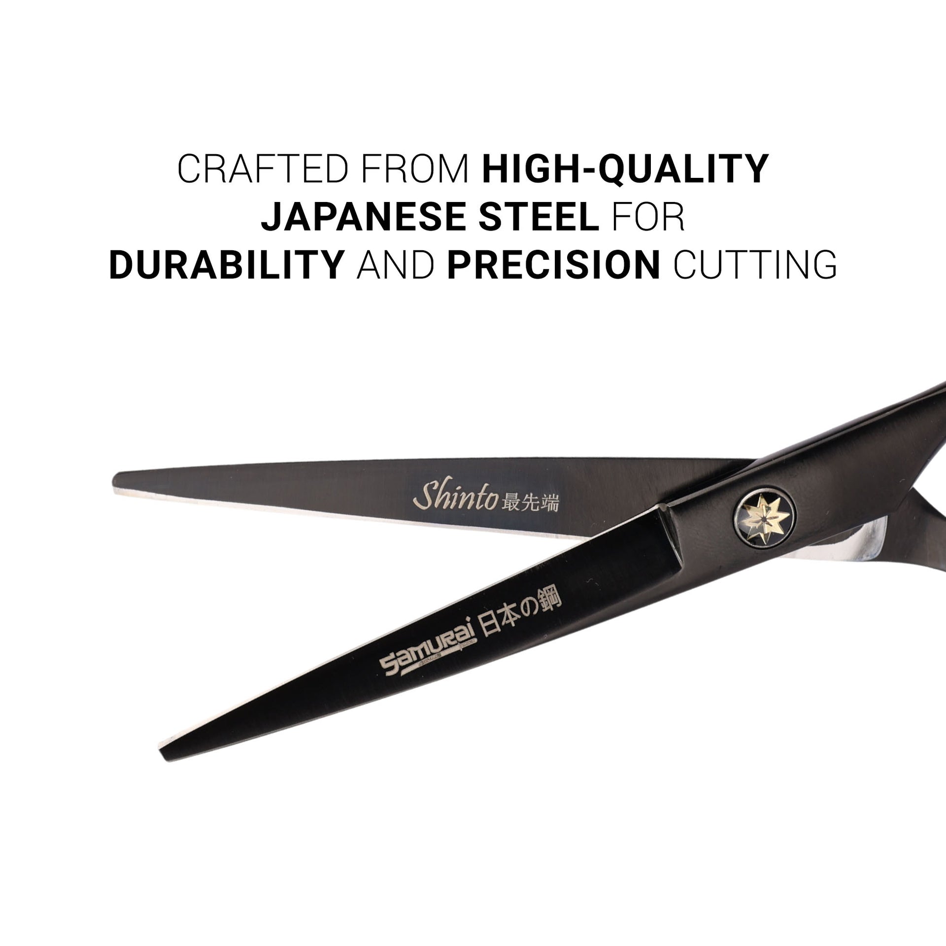 Use the Samurai Shinto Black Scissors for precise, detailed cuts and trims. Clean and oil regularly for optimal performance and sharpness.