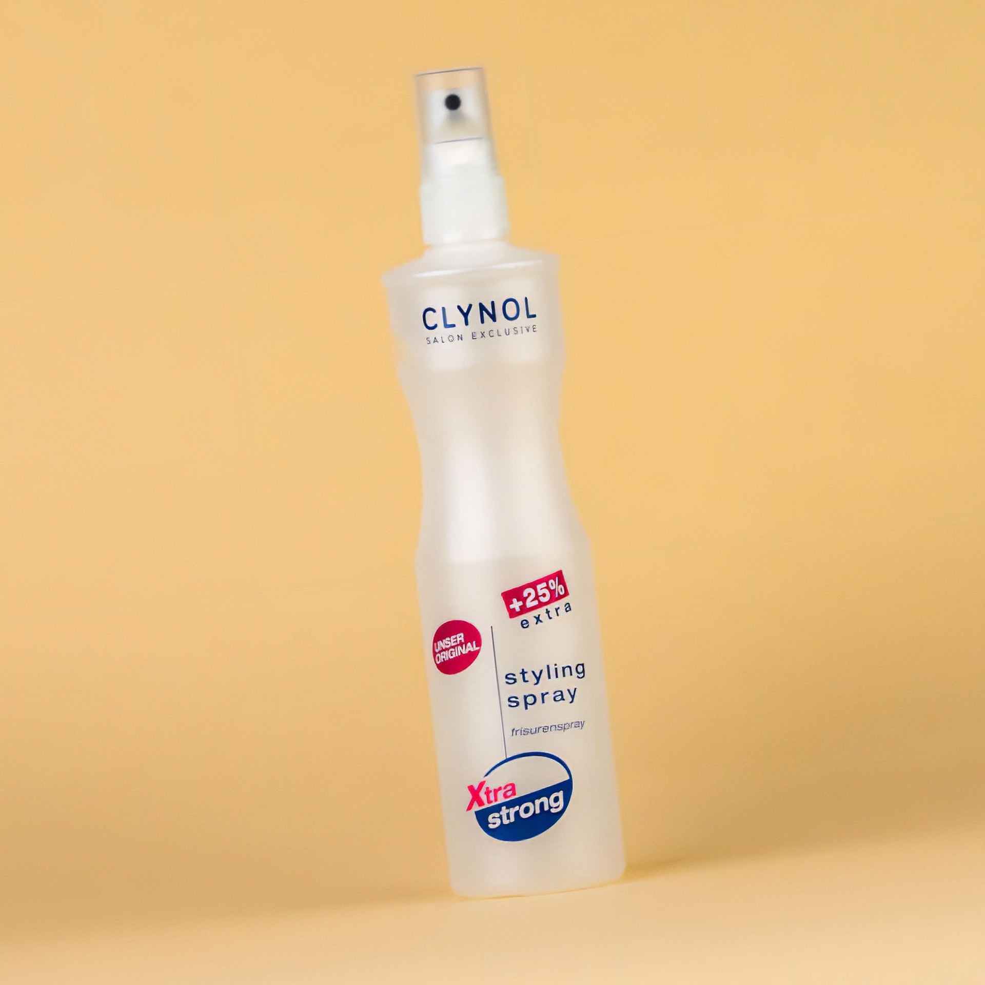 Hold the Schwarzkopf Professional - Clynol Xtra Strong Styling Spray 200ml pump-action bottle approximately 20-30cm (8-12 inches) from your hair. Spray evenly onto wet or dry hair and style as desired for a firm, lasting hold.